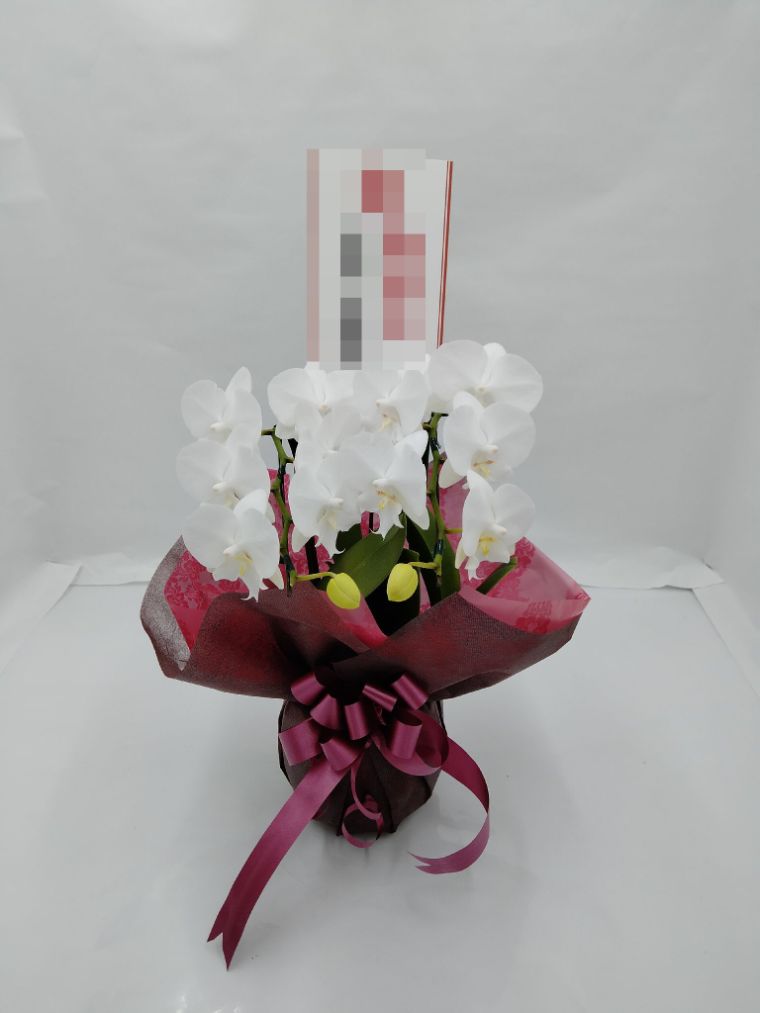 胡蝶蘭の実際にお届けした写真です。花秘書では発送前に写真をメールで送信致しますので安心して大切な顧客や取引様へのギフトにご利用頂けます。