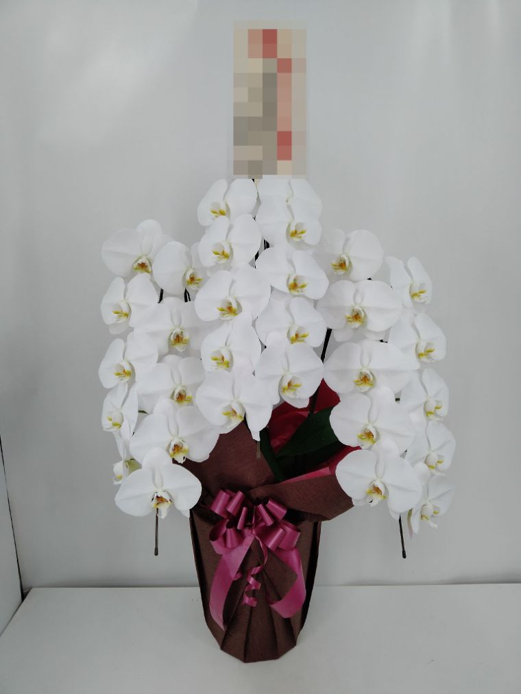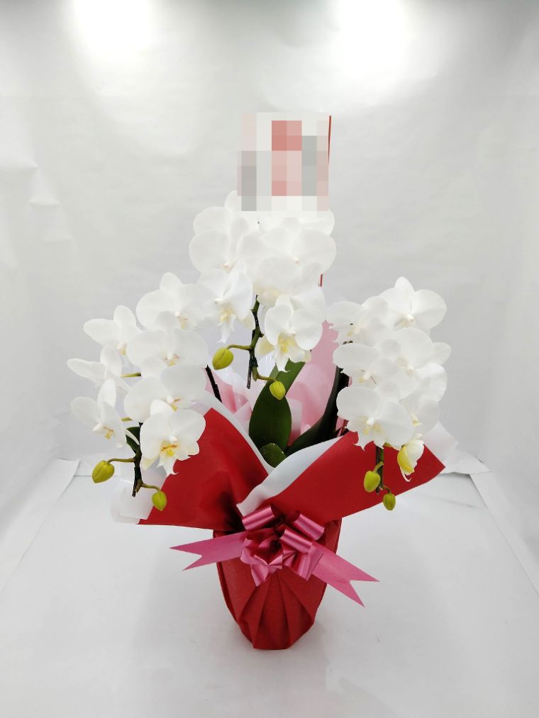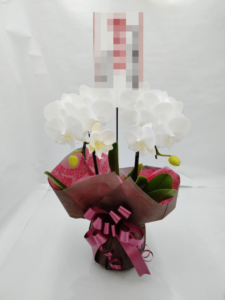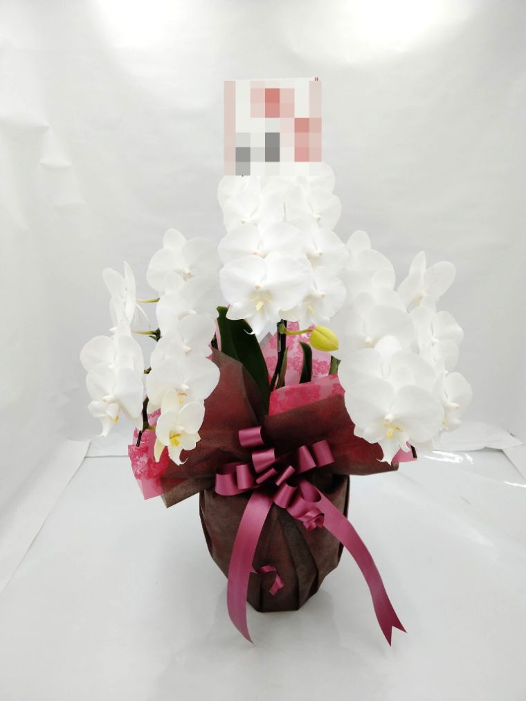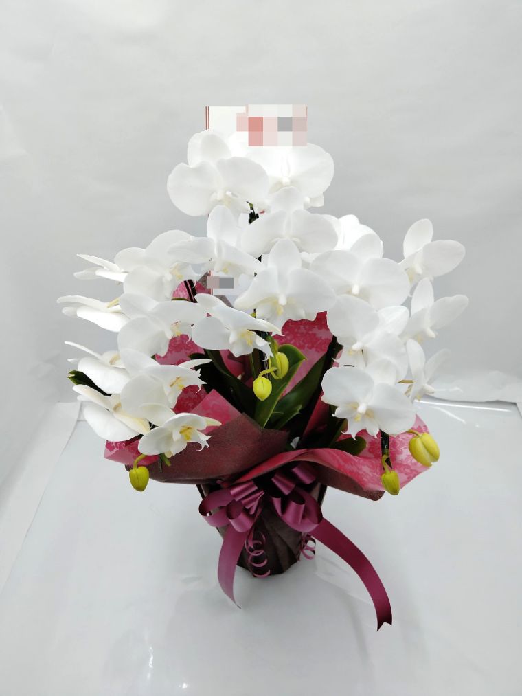 胡蝶蘭の実際にお届けした写真です。花秘書では発送前に写真をメールで送信致しますので安心して大切な顧客や取引様へのギフトにご利用頂けます。