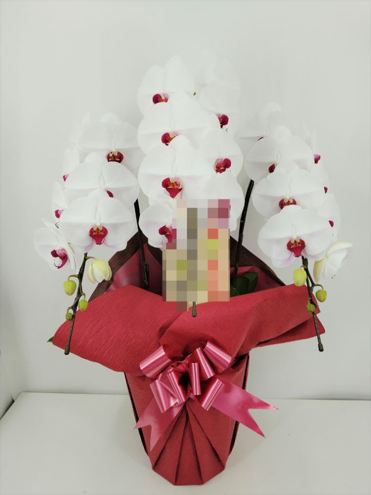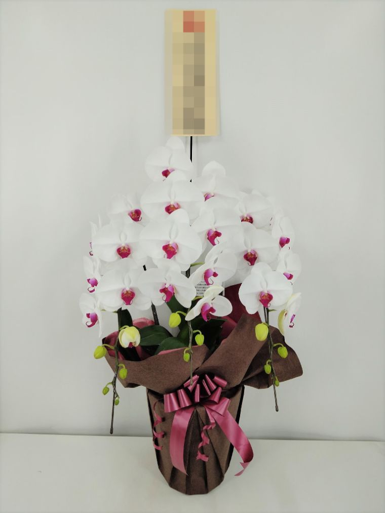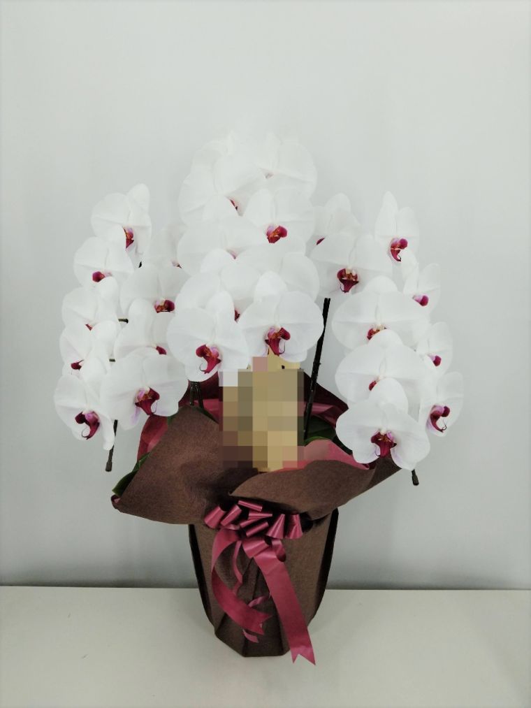 胡蝶蘭の実際にお届けした写真です。花秘書では発送前に写真をメールで送信致しますので安心して大切な顧客や取引様へのギフトにご利用頂けます。