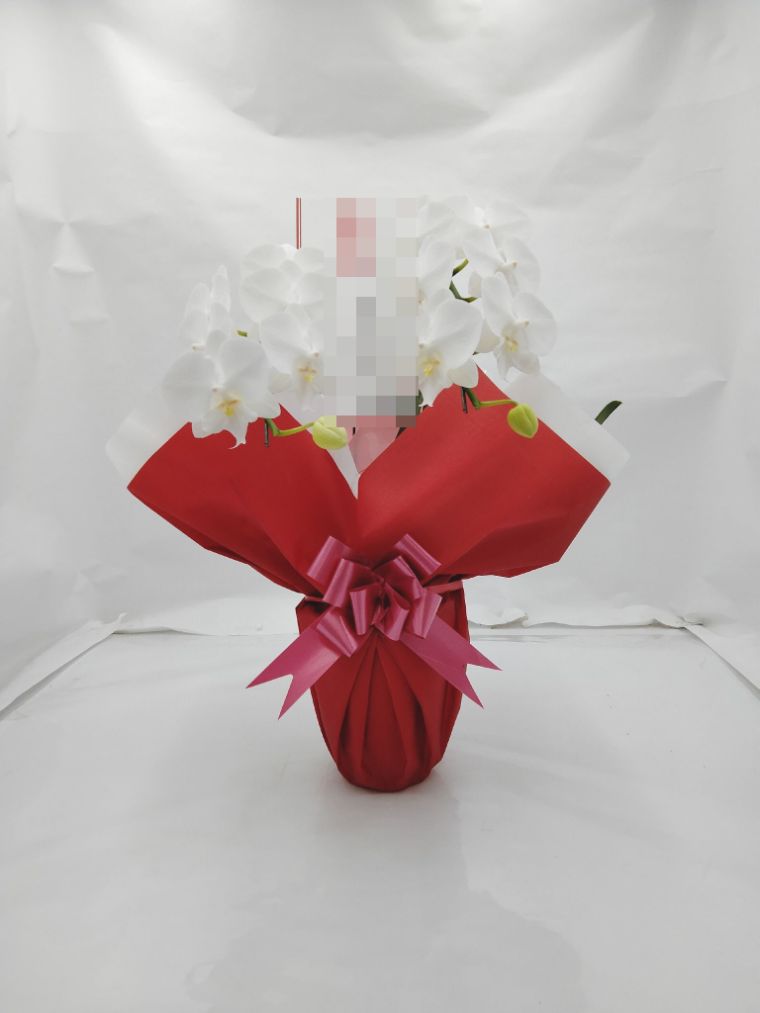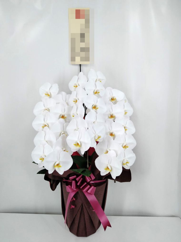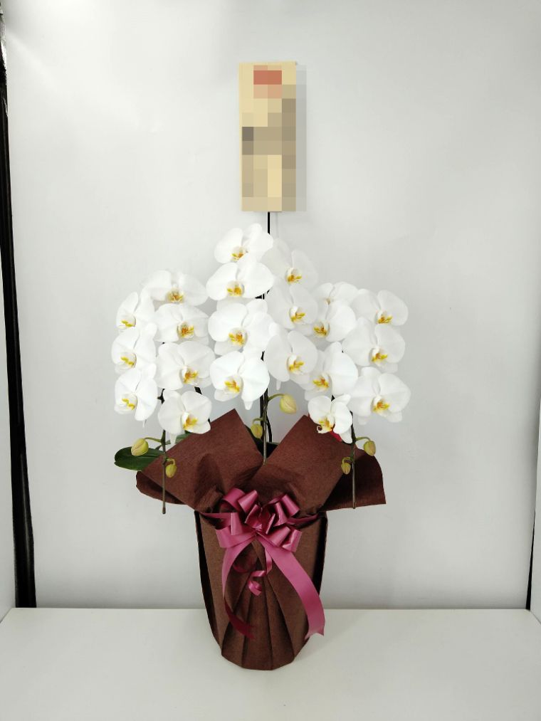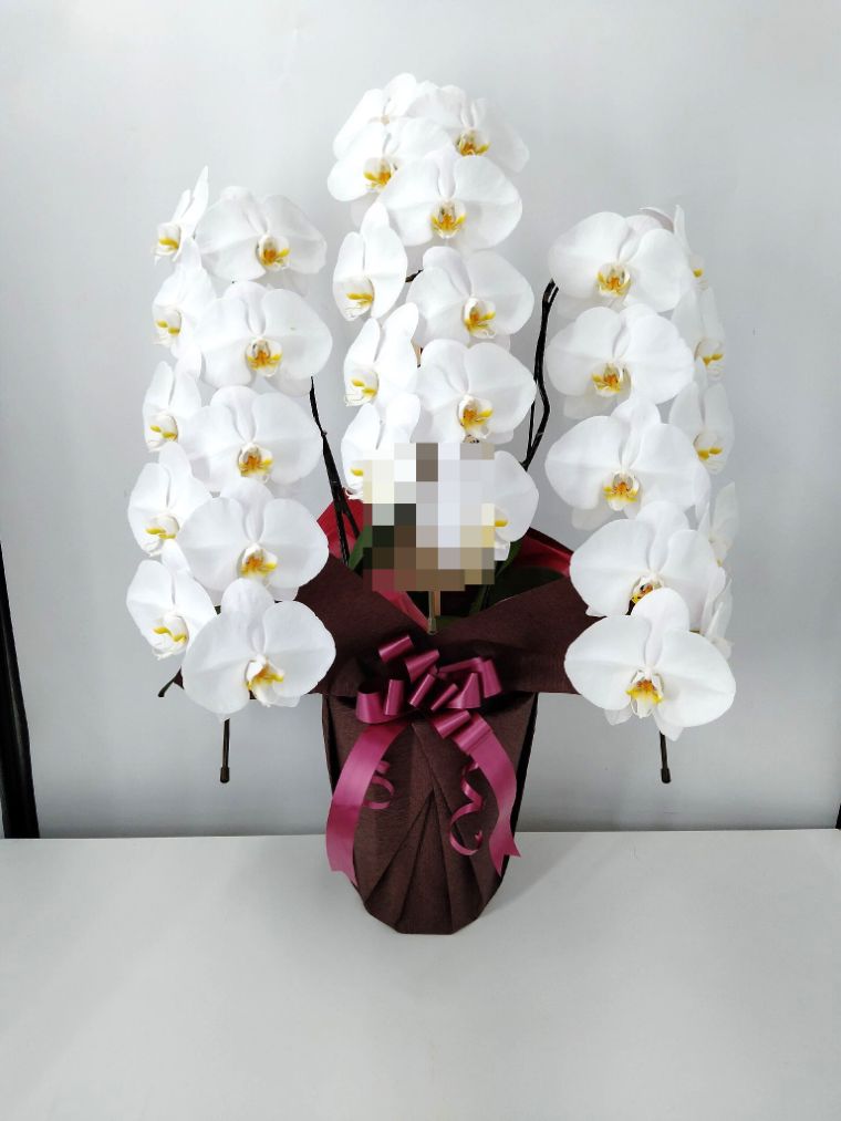 胡蝶蘭の実際にお届けした写真です。花秘書では発送前に写真をメールで送信致しますので安心して大切な顧客や取引様へのギフトにご利用頂けます。