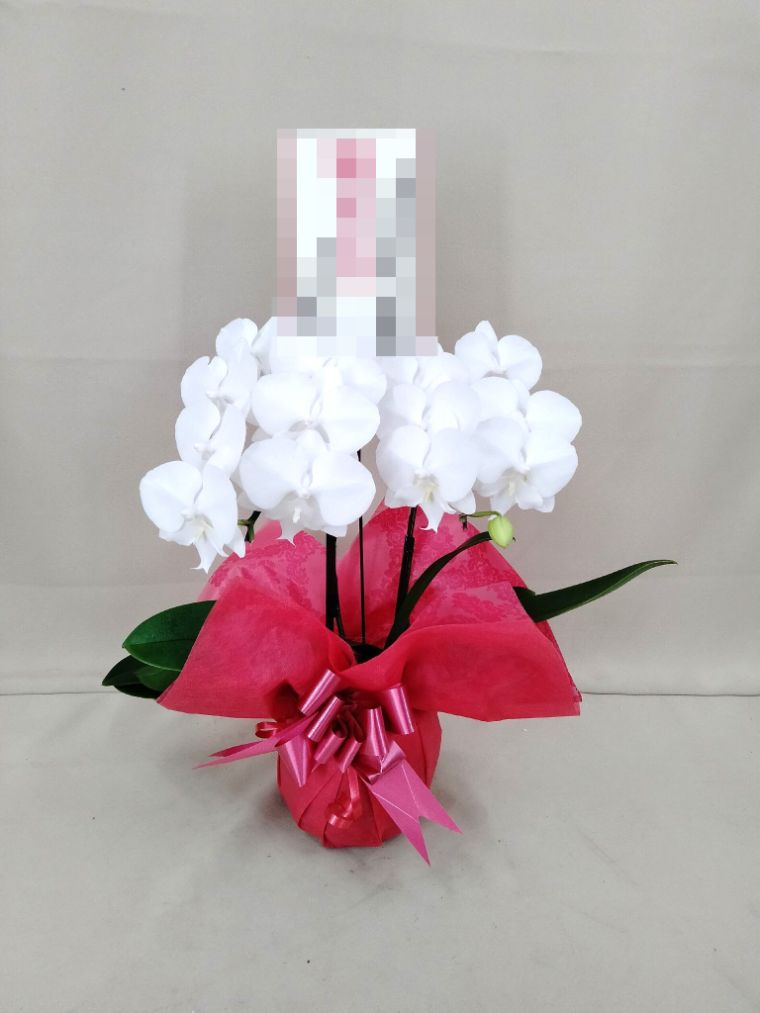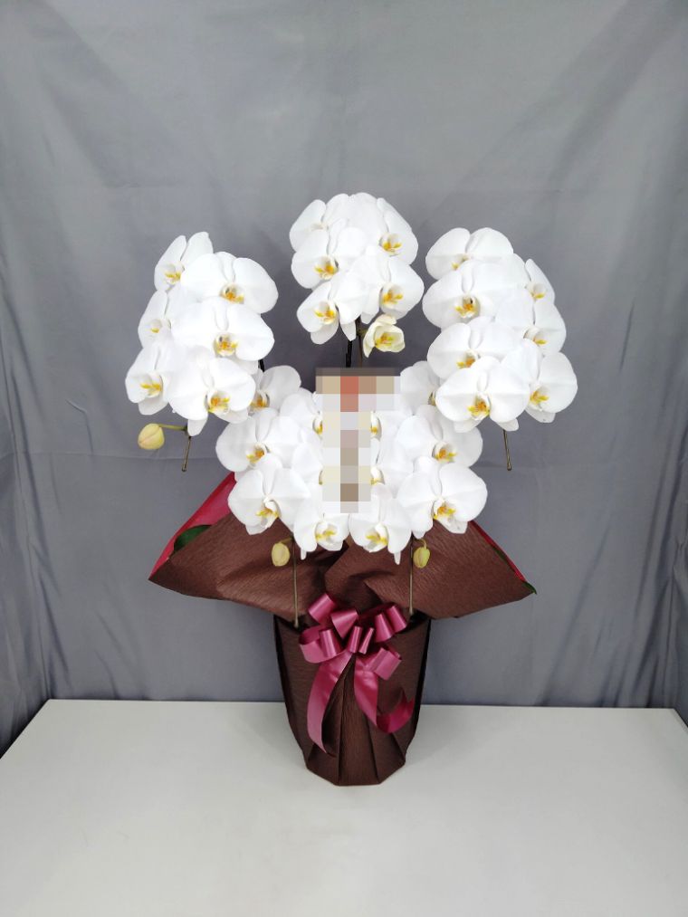 胡蝶蘭の実際にお届けした写真です。花秘書では発送前に写真をメールで送信致しますので安心して大切な顧客や取引様へのギフトにご利用頂けます。