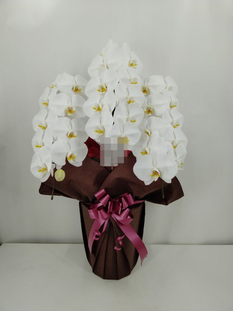 胡蝶蘭の実際にお届けした写真です。花秘書では発送前に写真をメールで送信致しますので安心して大切な顧客や取引様へのギフトにご利用頂けます。