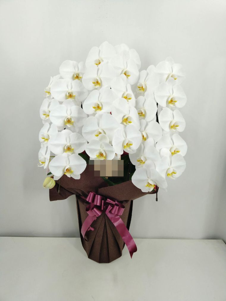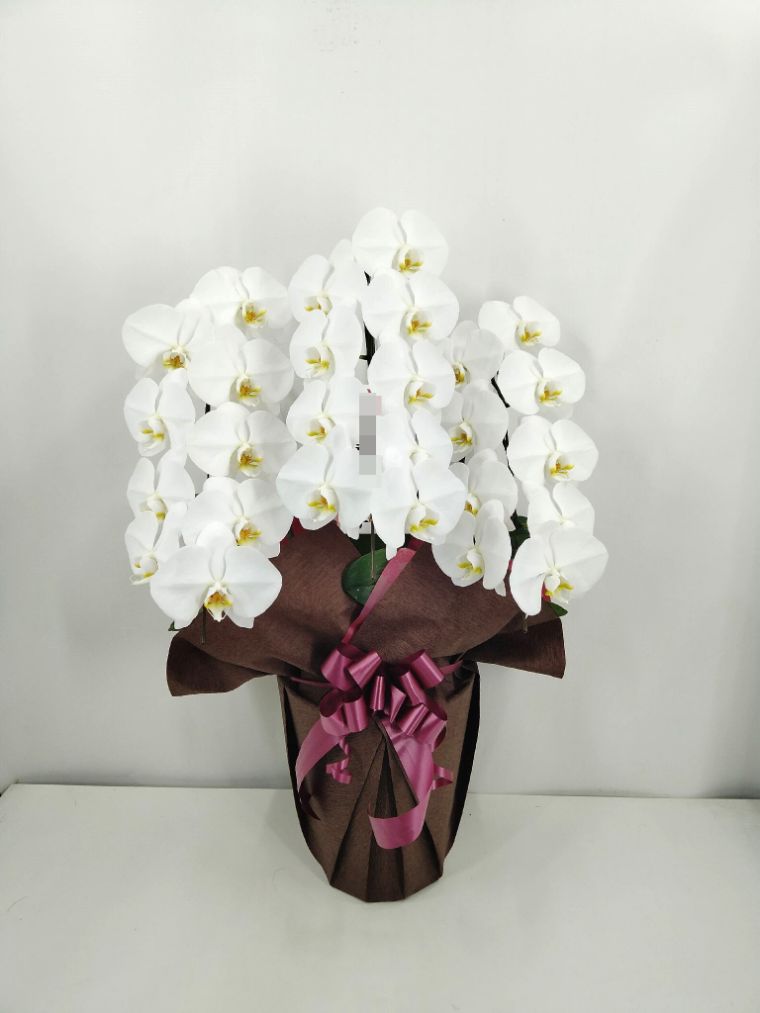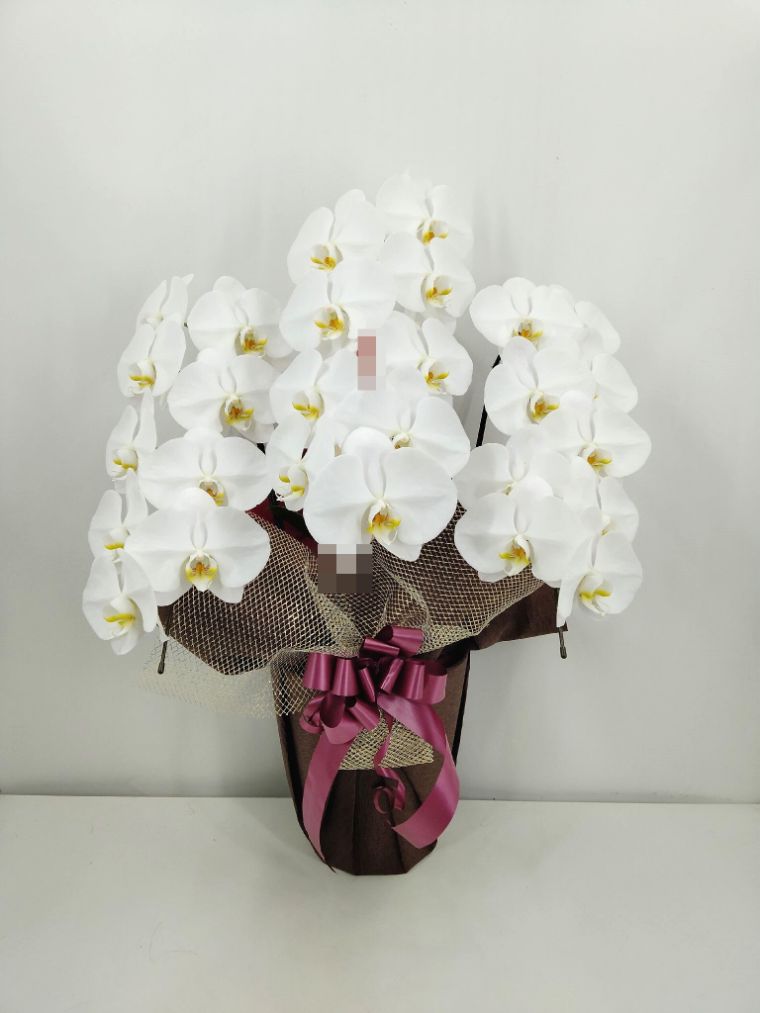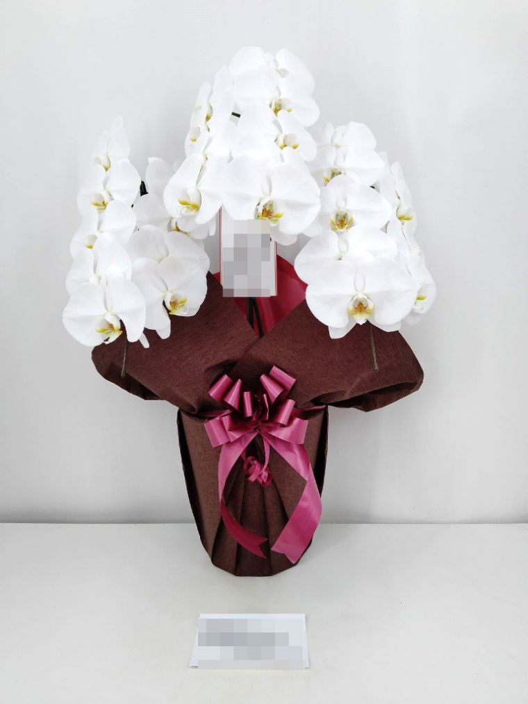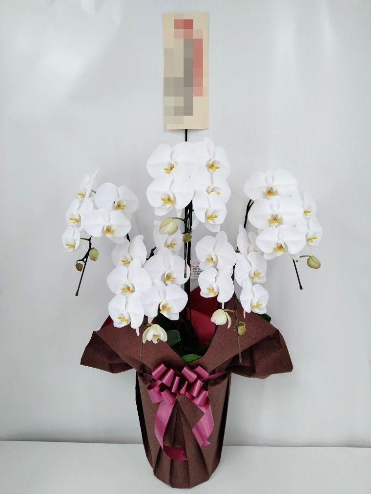 胡蝶蘭の実際にお届けした写真です。花秘書では発送前に写真をメールで送信致しますので安心して大切な顧客や取引様へのギフトにご利用頂けます。