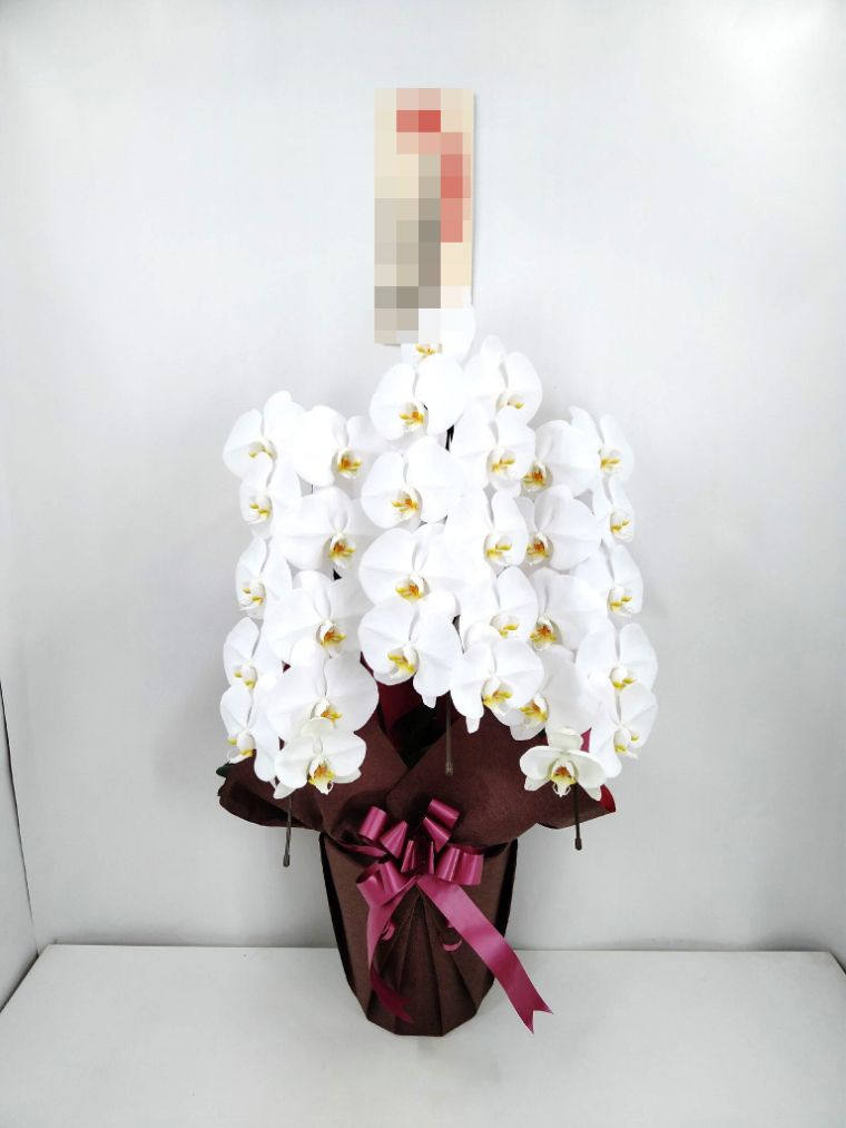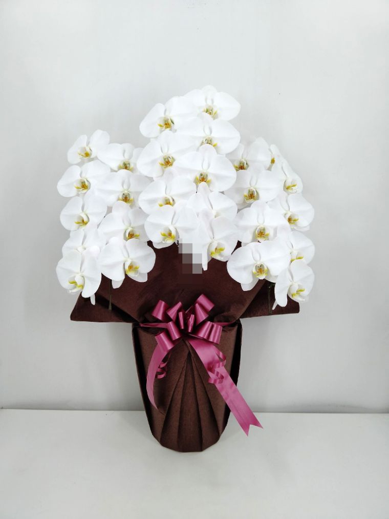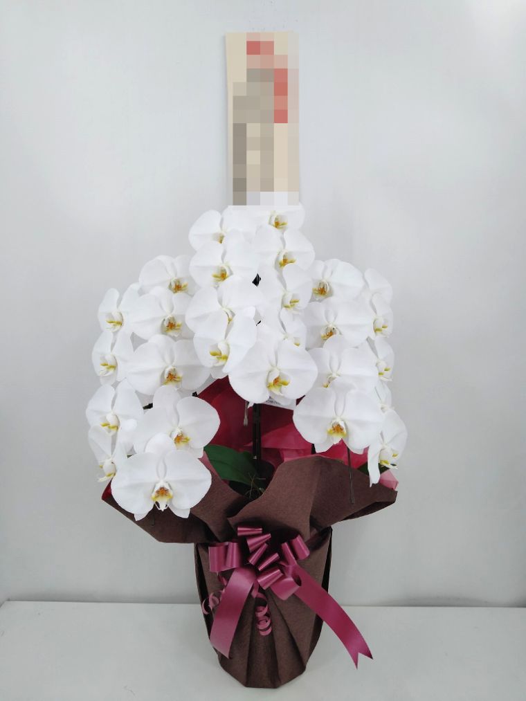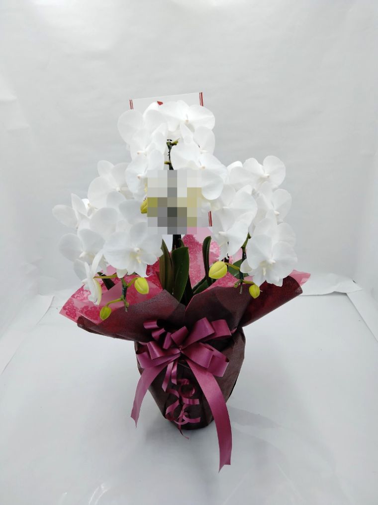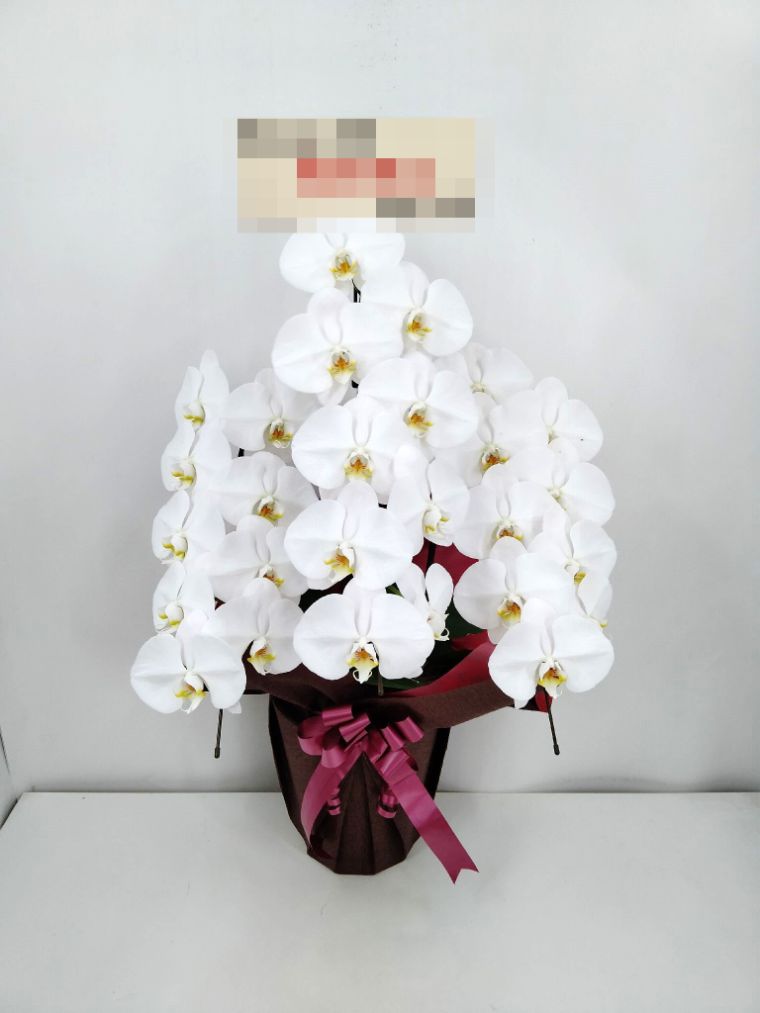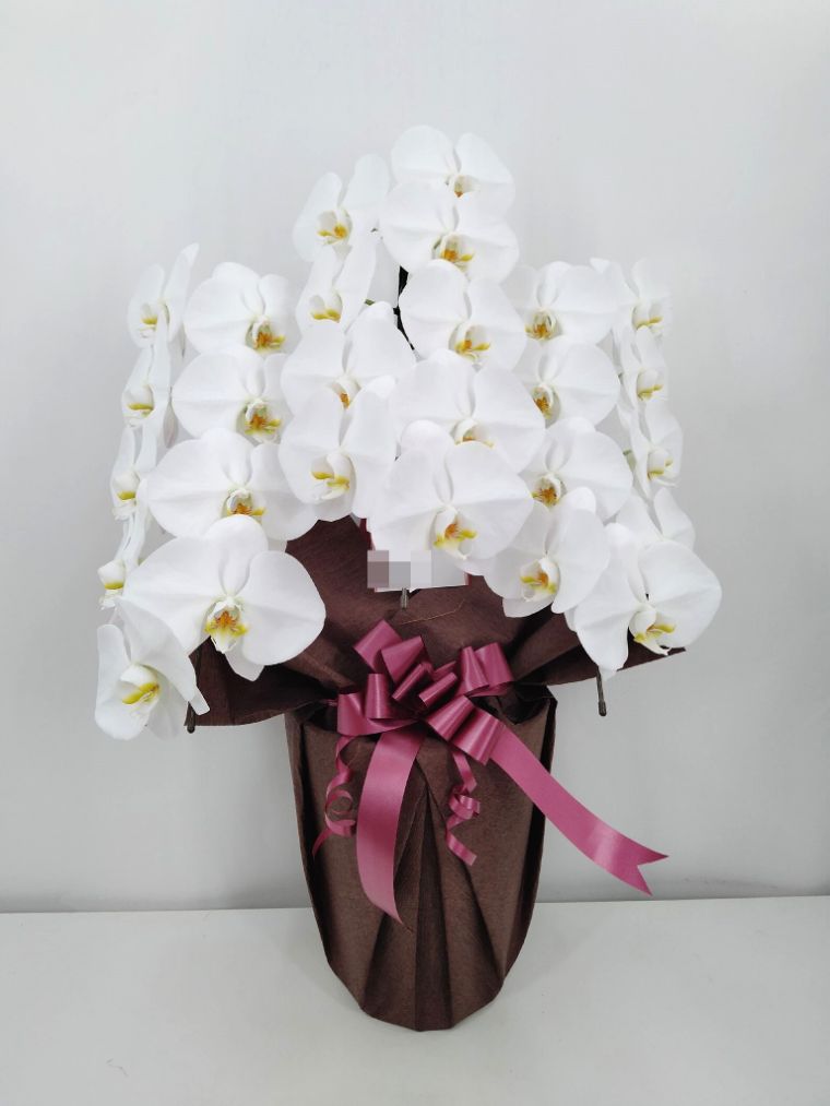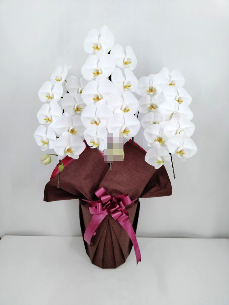 胡蝶蘭の実際にお届けした写真です。花秘書では発送前に写真をメールで送信致しますので安心して大切な顧客や取引様へのギフトにご利用頂けます。