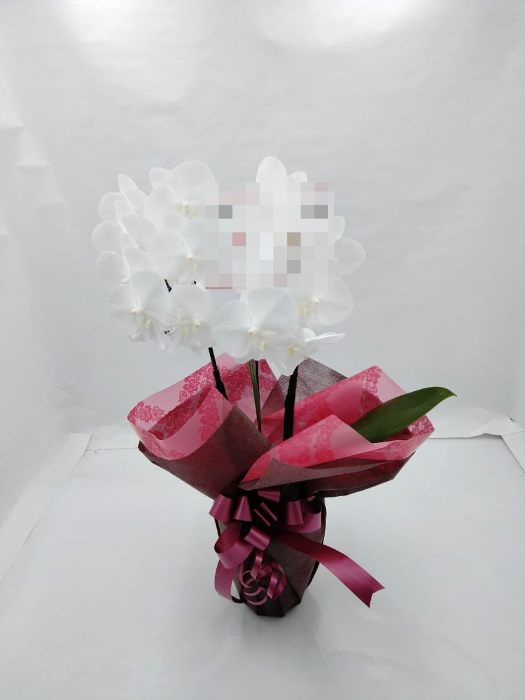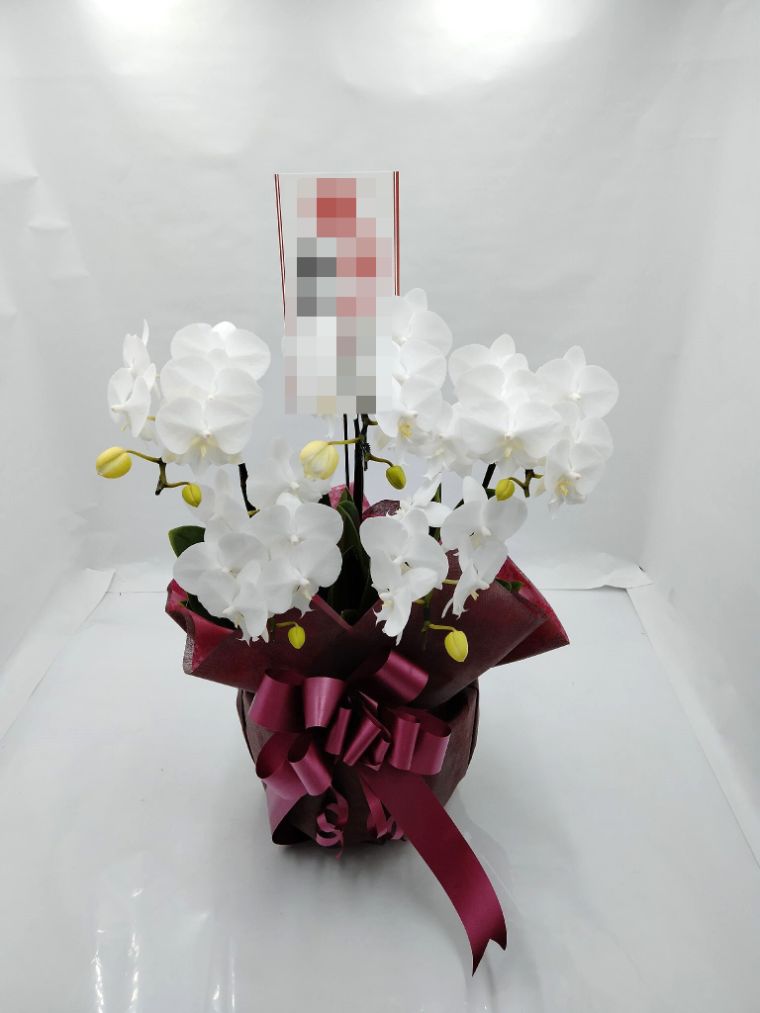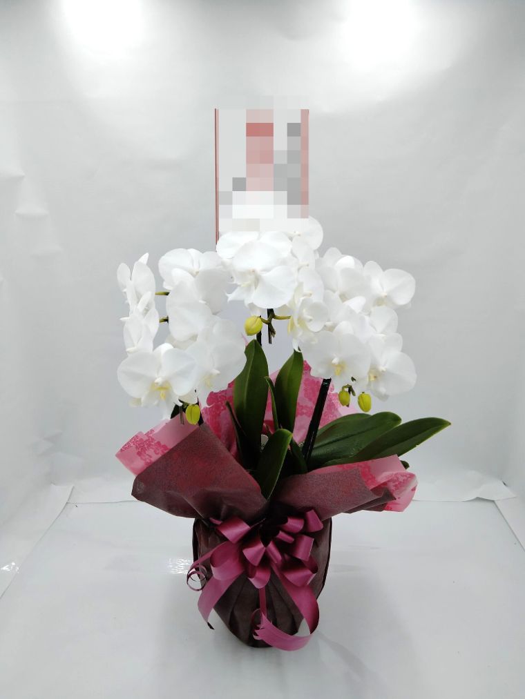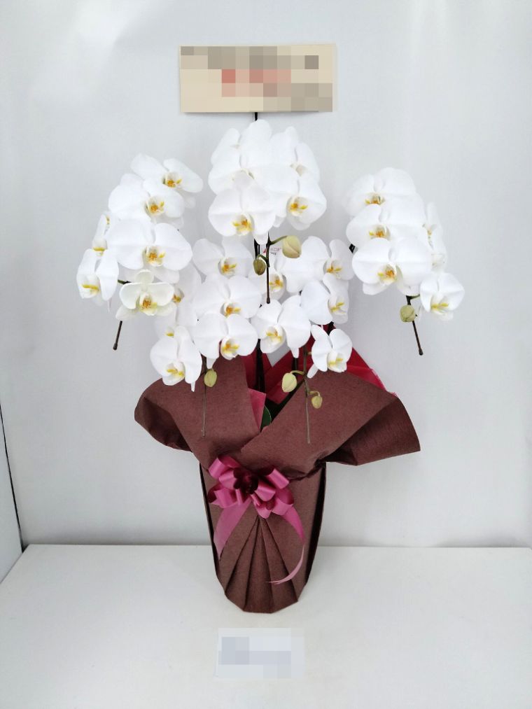 胡蝶蘭の実際にお届けした写真です。花秘書では発送前に写真をメールで送信致しますので安心して大切な顧客や取引様へのギフトにご利用頂けます。
