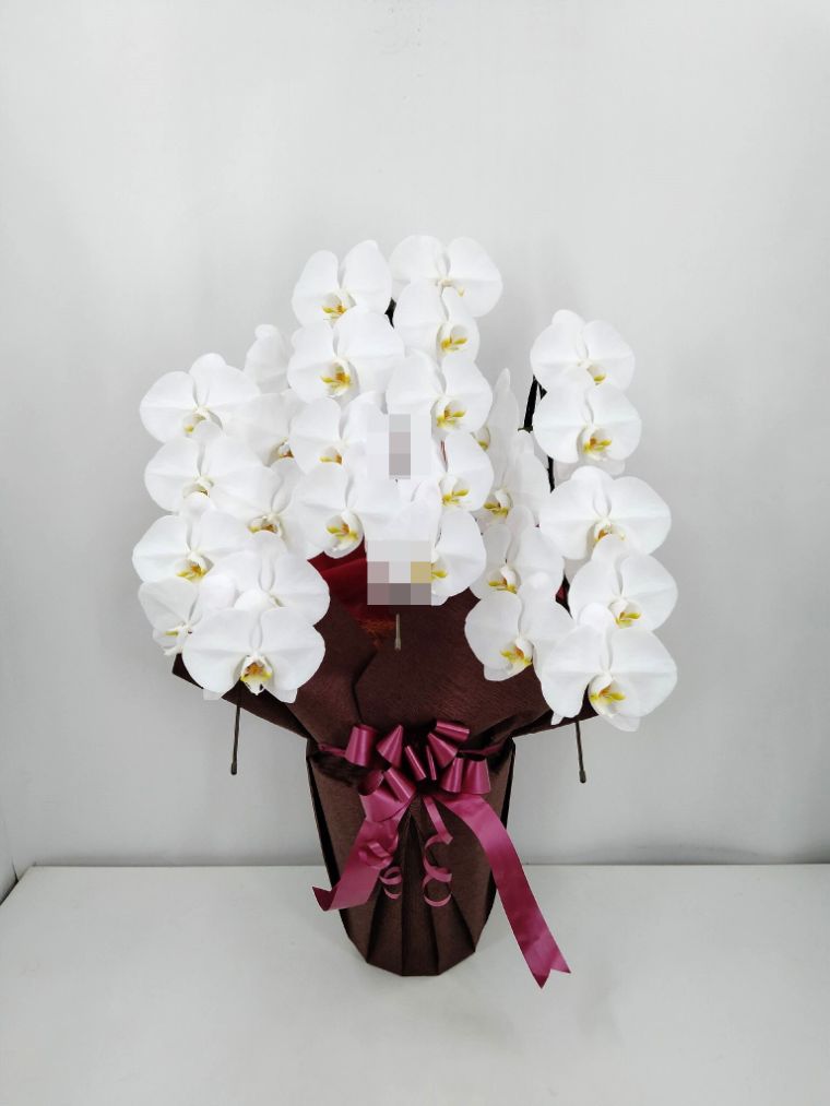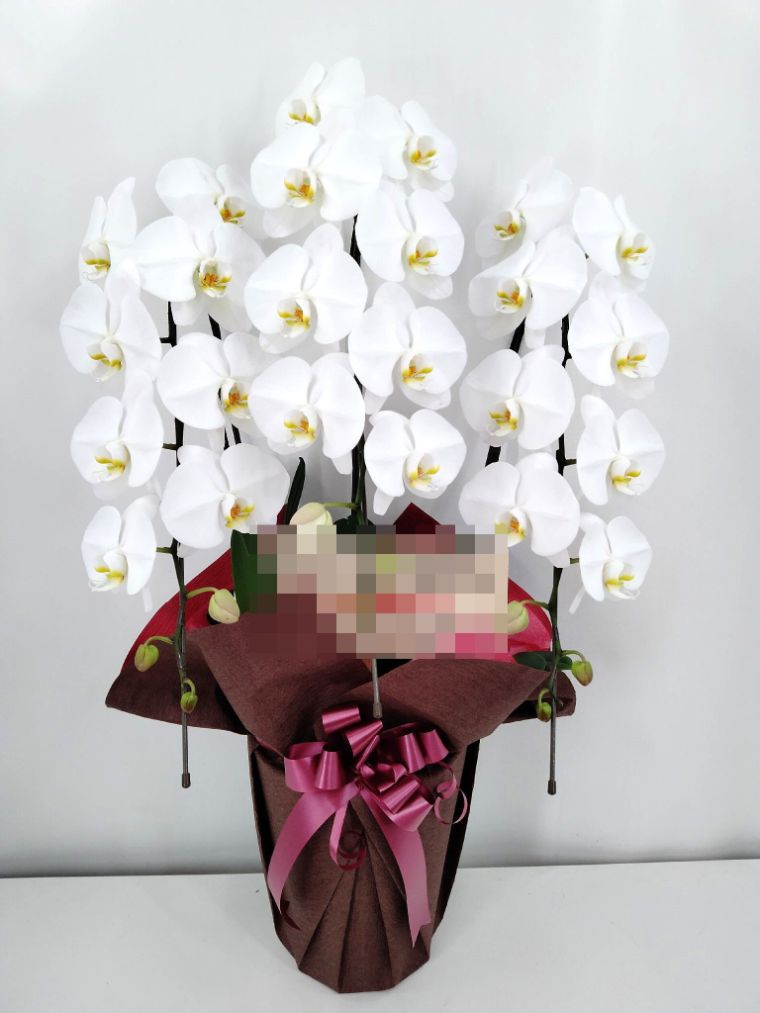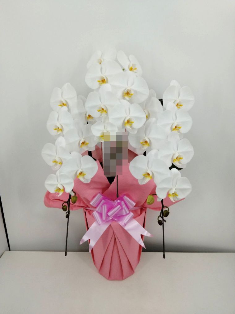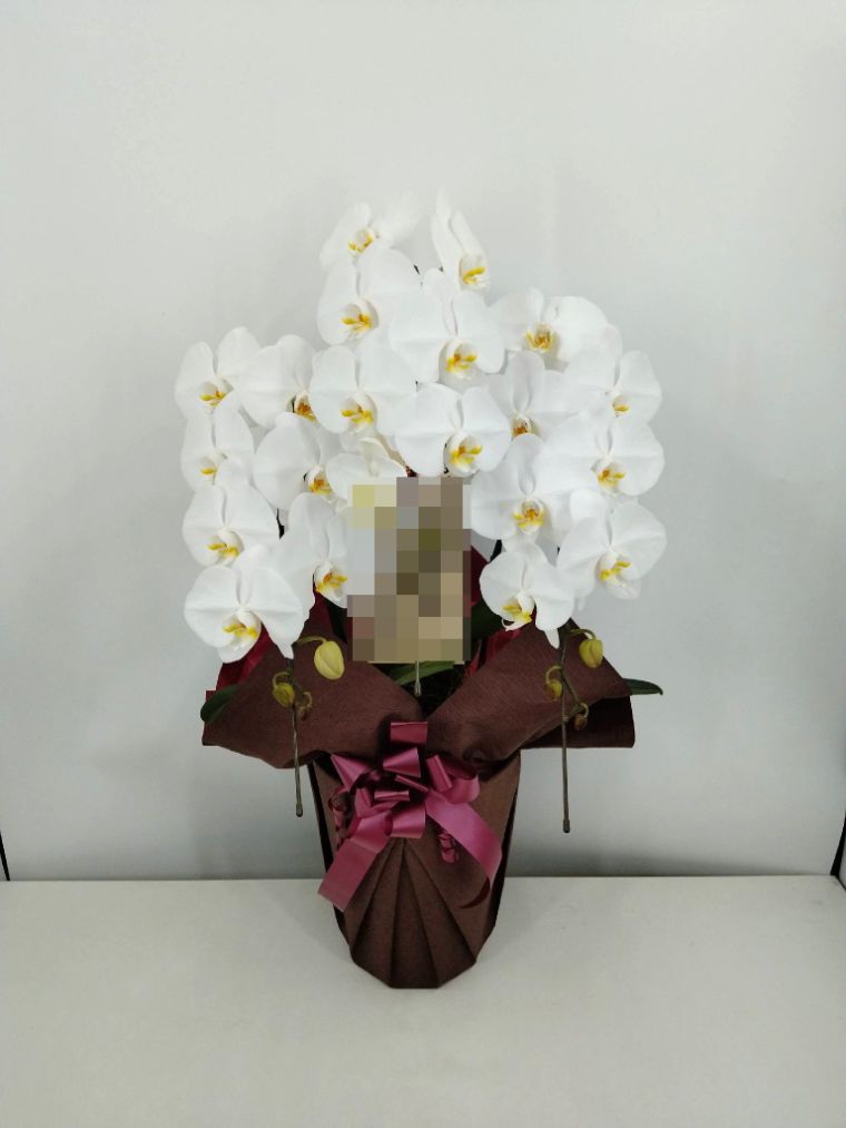 胡蝶蘭の実際にお届けした写真です。花秘書では発送前に写真をメールで送信致しますので安心して大切な顧客や取引様へのギフトにご利用頂けます。
