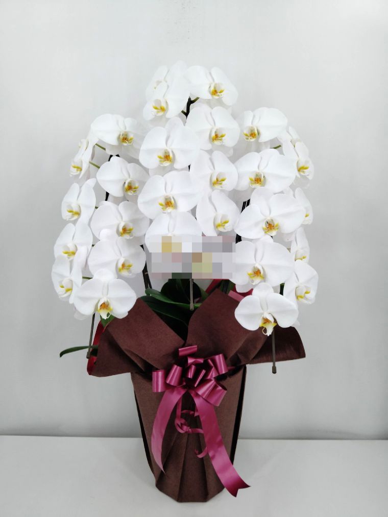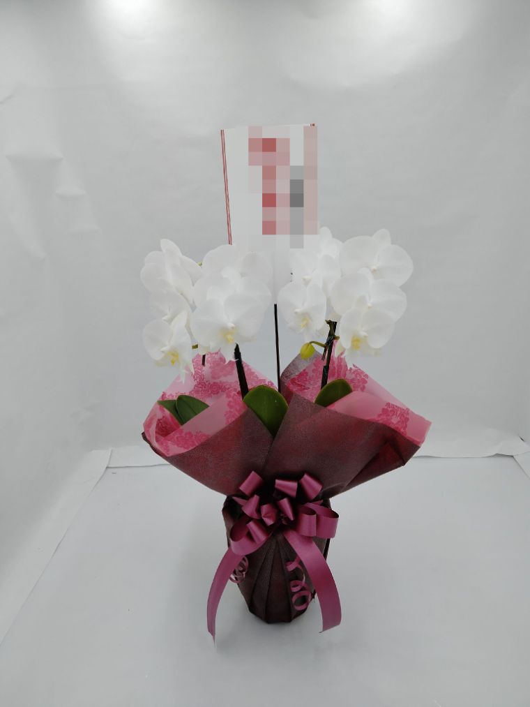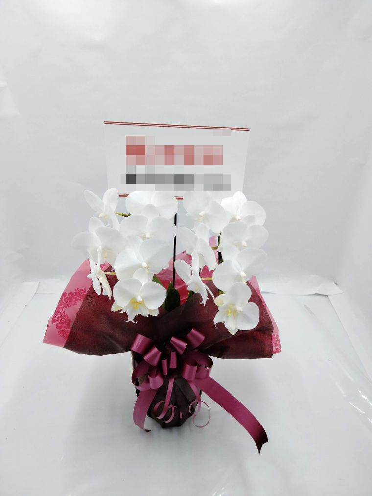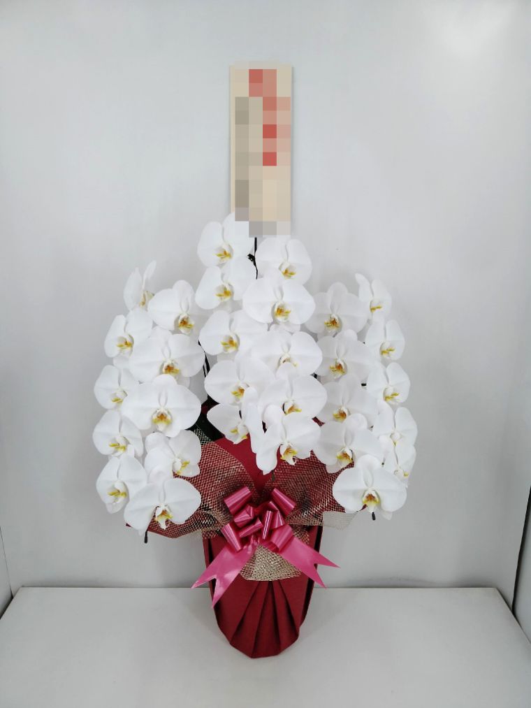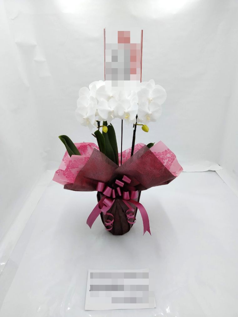 胡蝶蘭の実際にお届けした写真です。花秘書では発送前に写真をメールで送信致しますので安心して大切な顧客や取引様へのギフトにご利用頂けます。