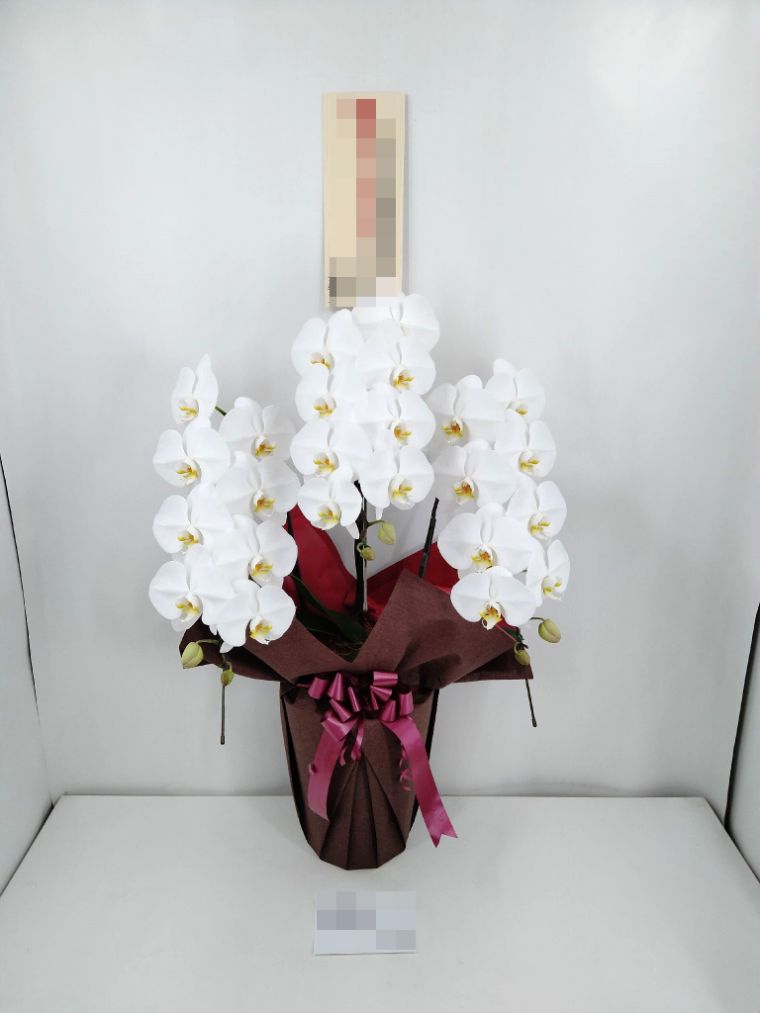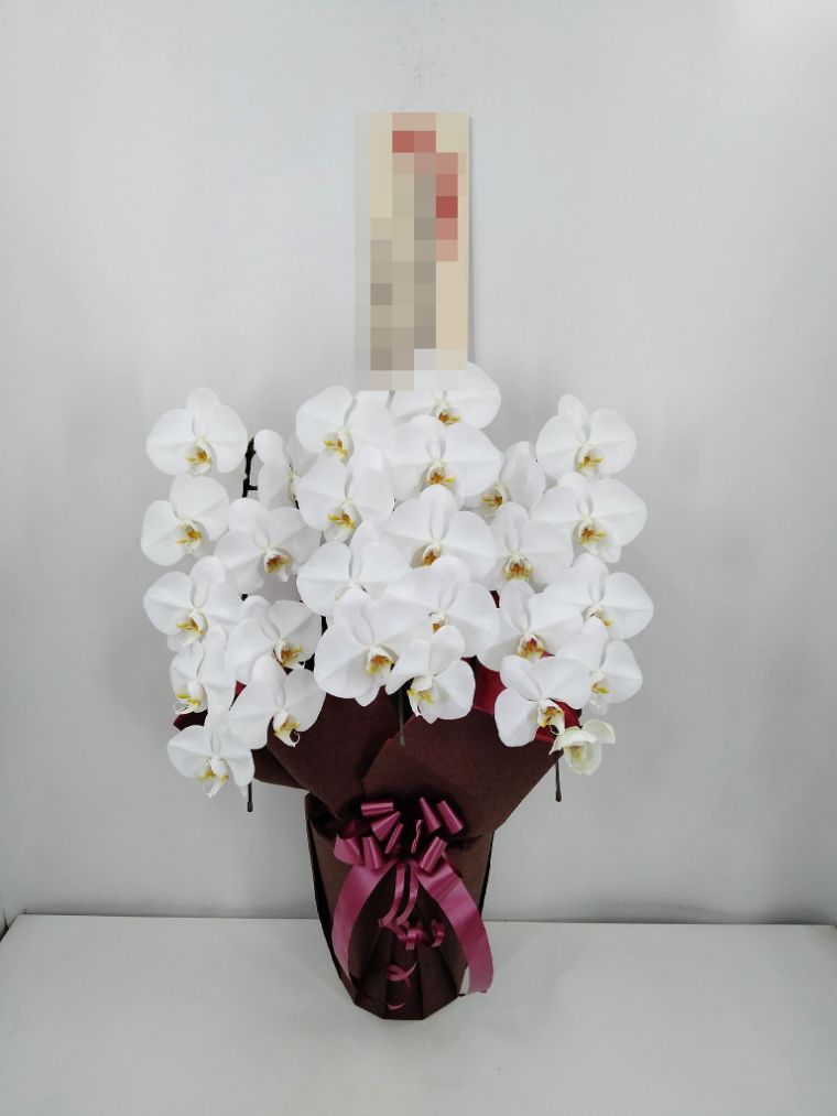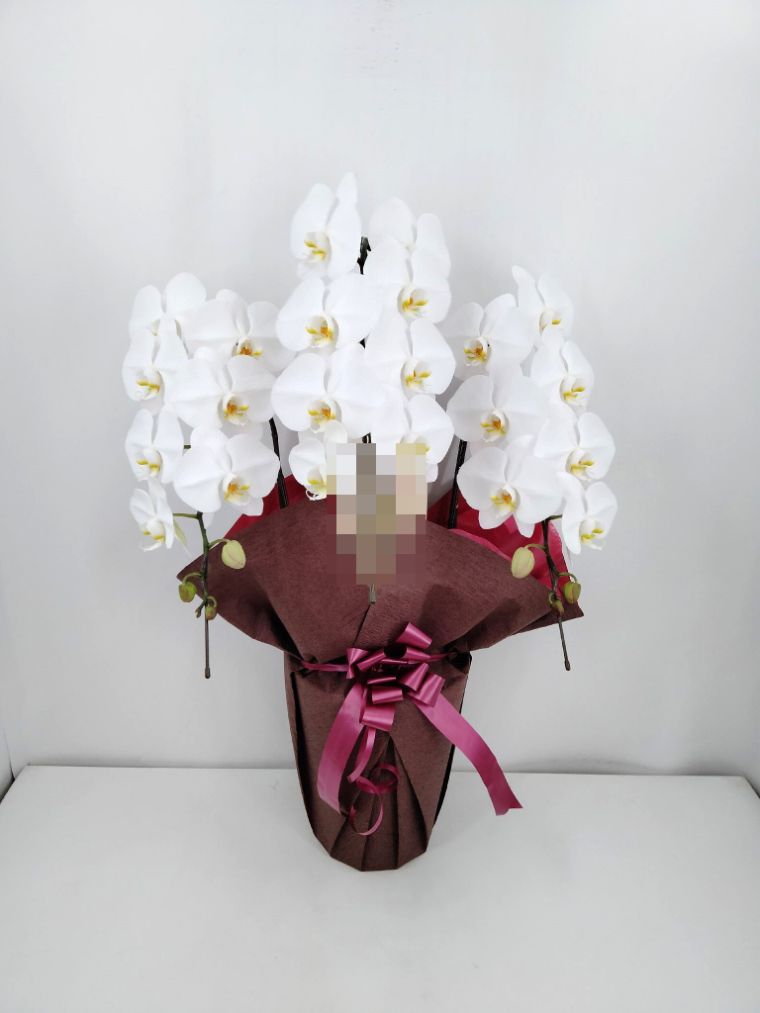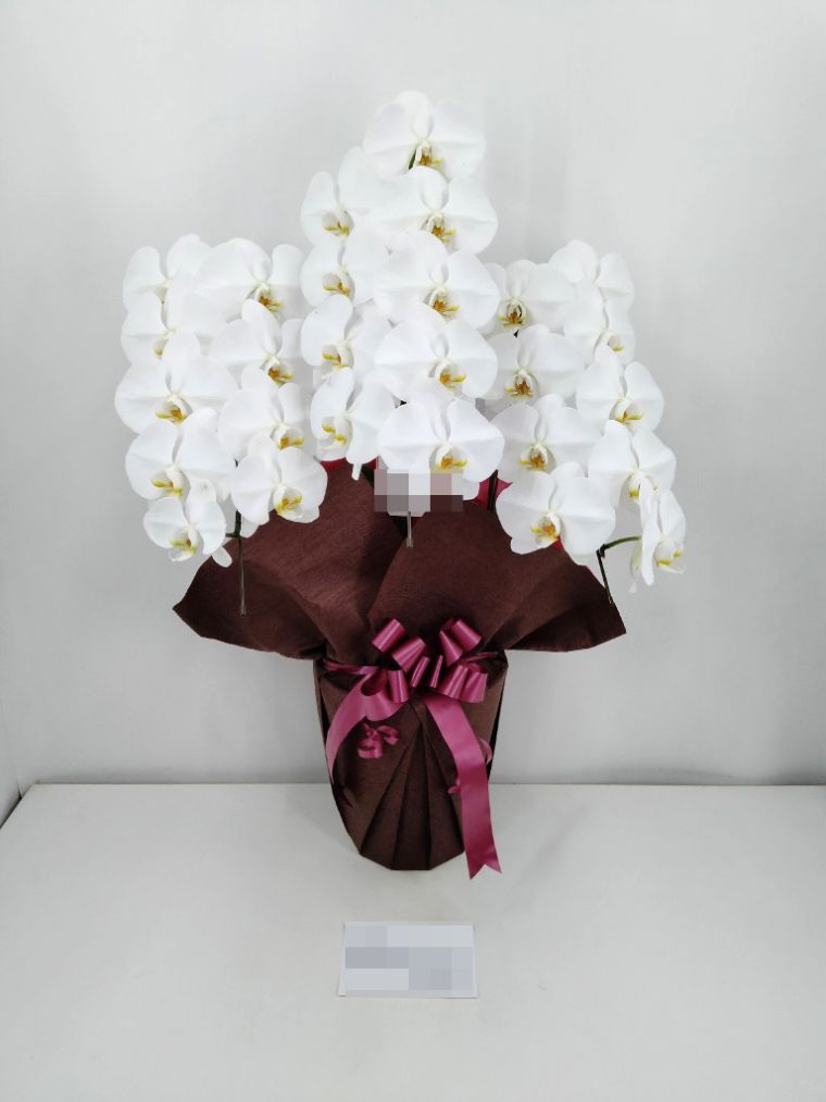 胡蝶蘭の実際にお届けした写真です。花秘書では発送前に写真をメールで送信致しますので安心して大切な顧客や取引様へのギフトにご利用頂けます。