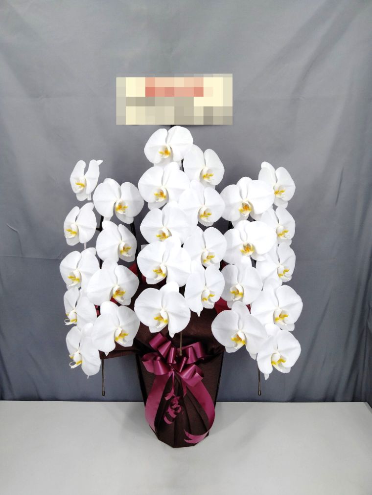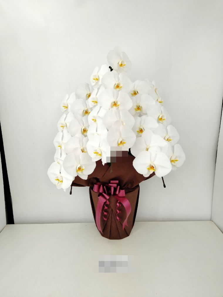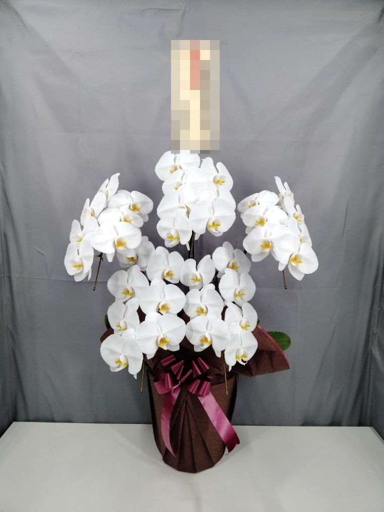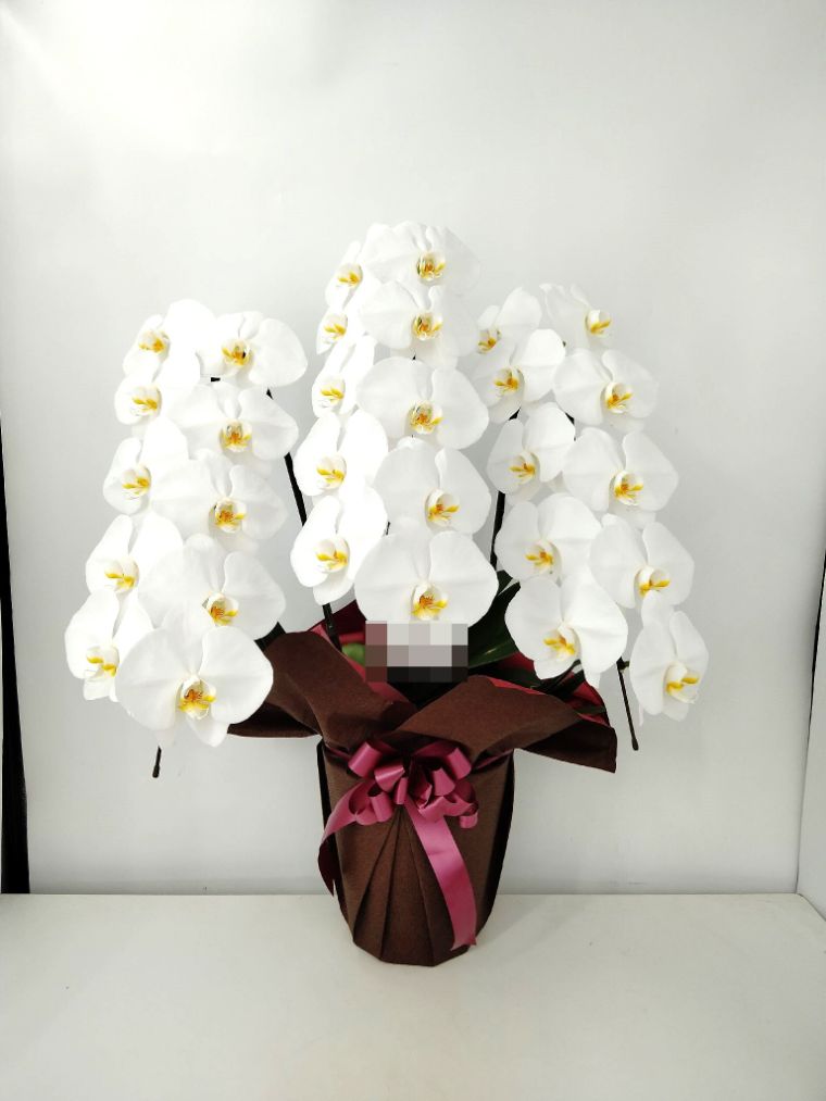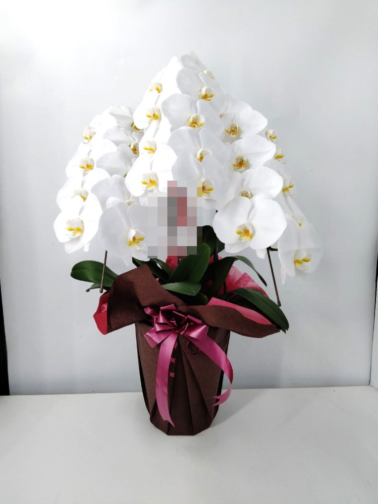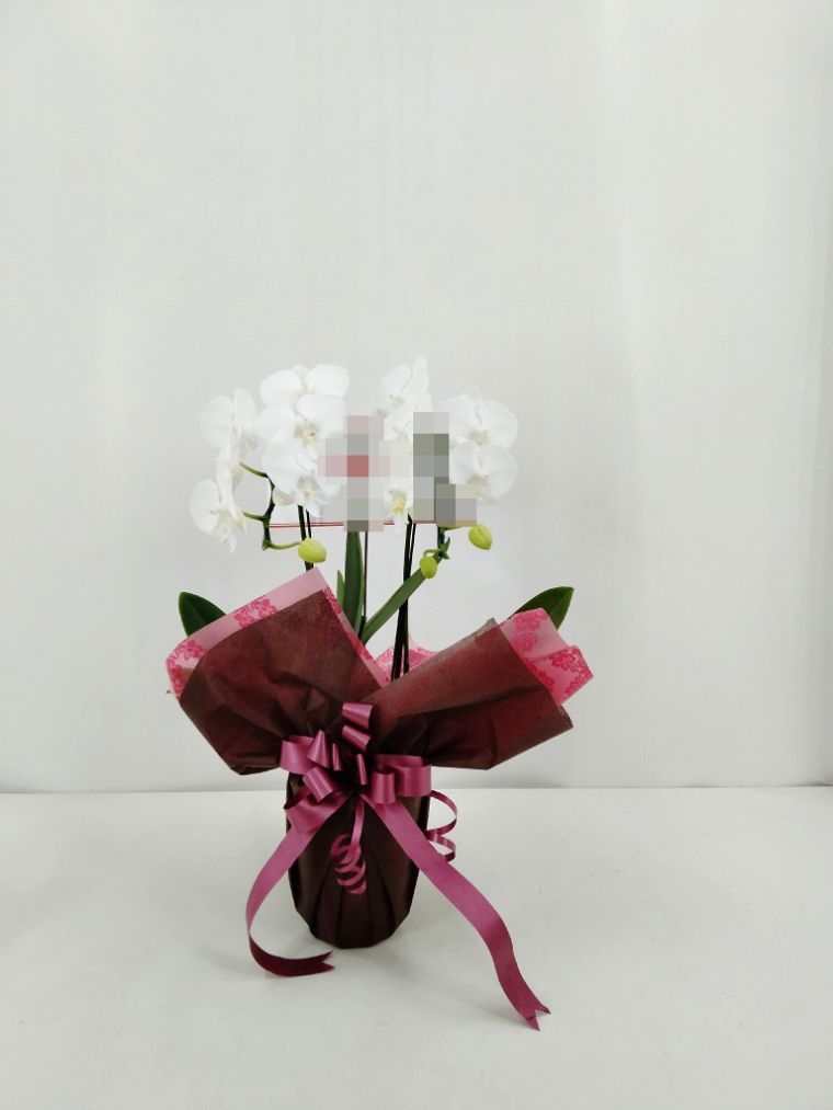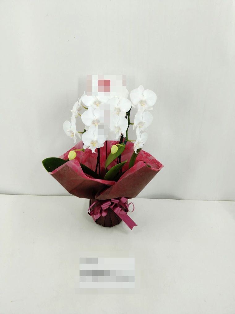 胡蝶蘭の実際にお届けした写真です。花秘書では発送前に写真をメールで送信致しますので安心して大切な顧客や取引様へのギフトにご利用頂けます。