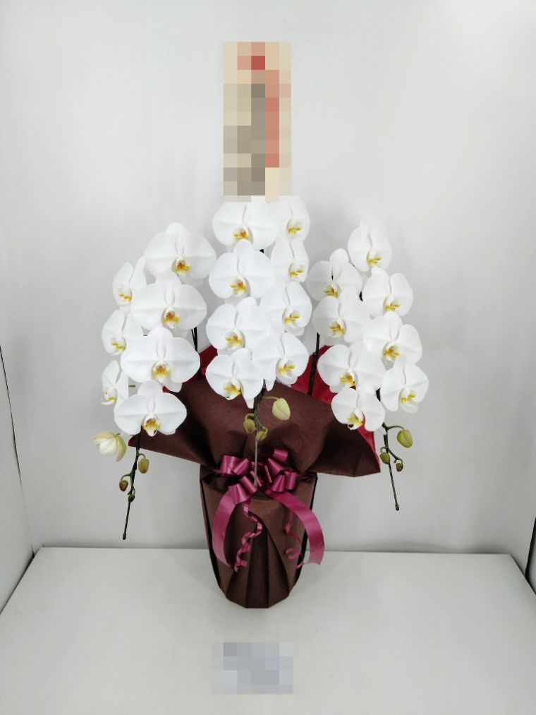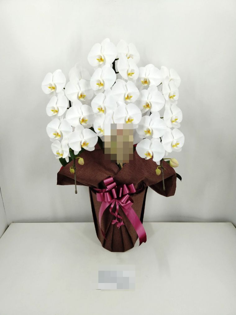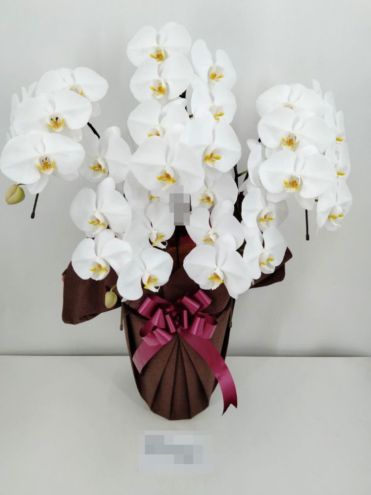 胡蝶蘭の実際にお届けした写真です。花秘書では発送前に写真をメールで送信致しますので安心して大切な顧客や取引様へのギフトにご利用頂けます。