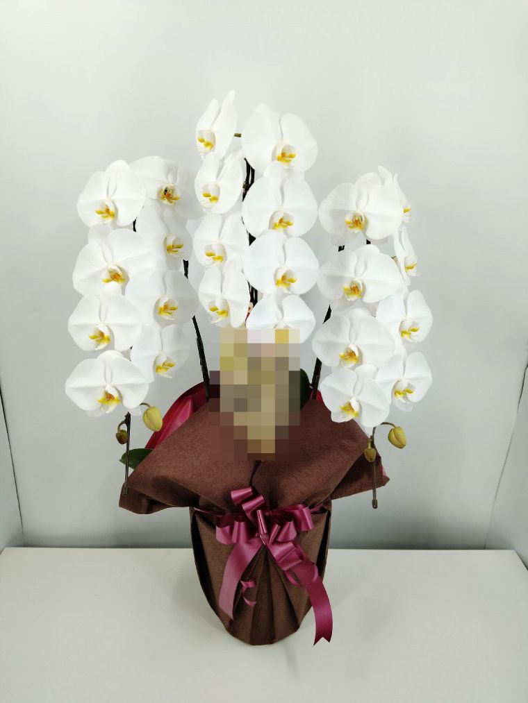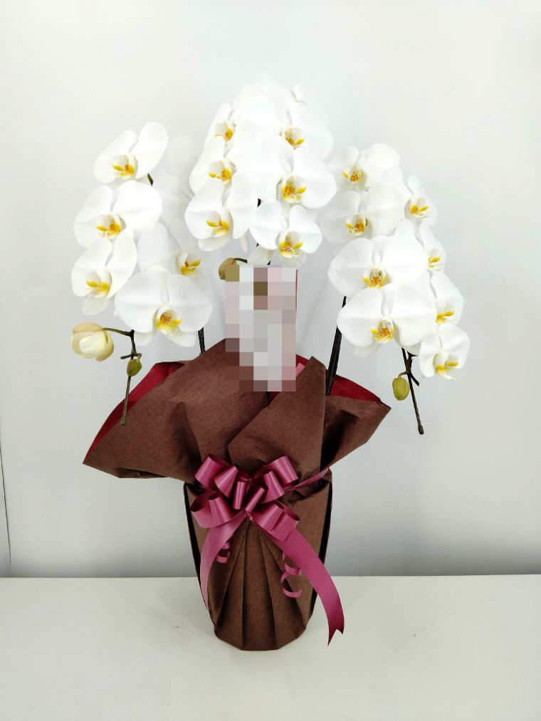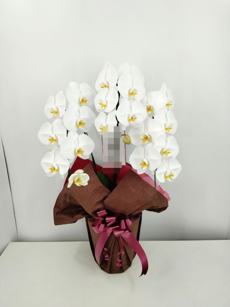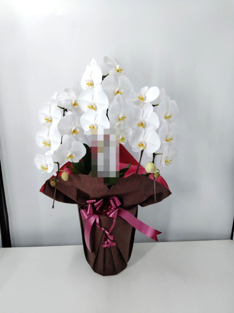 胡蝶蘭の実際にお届けした写真です。花秘書では発送前に写真をメールで送信致しますので安心して大切な顧客や取引様へのギフトにご利用頂けます。