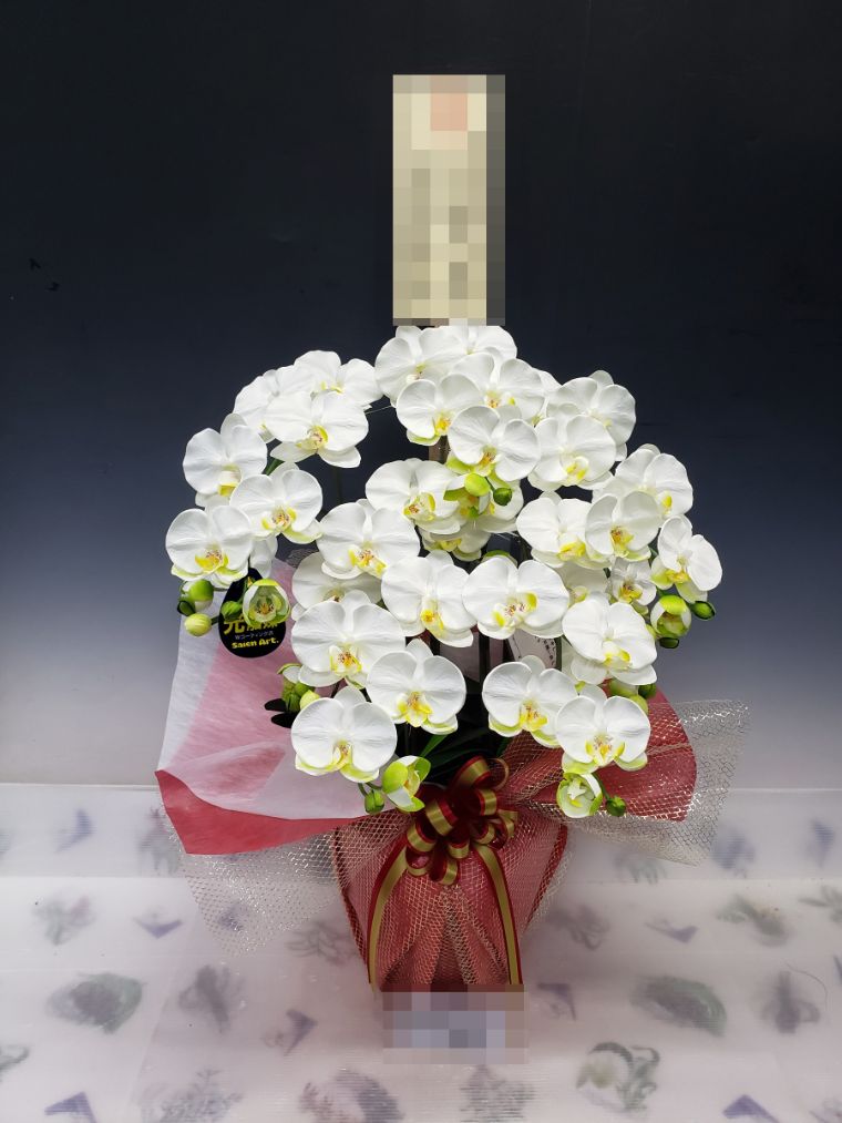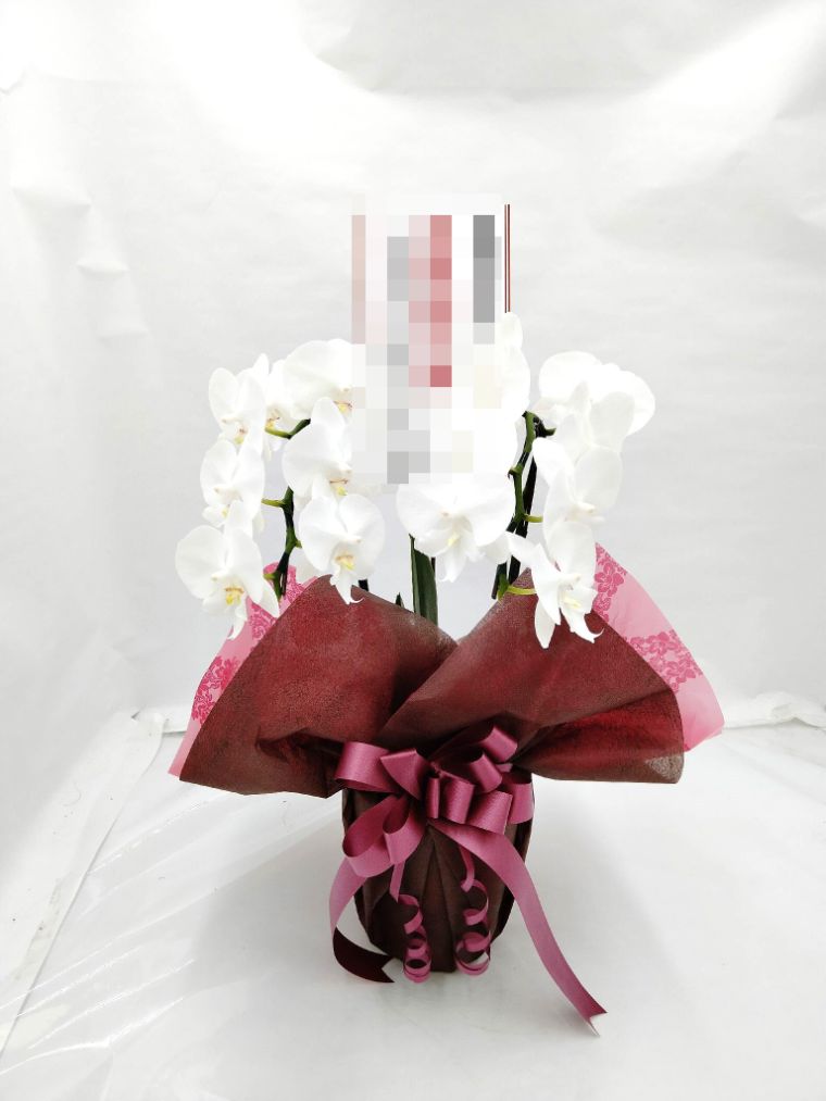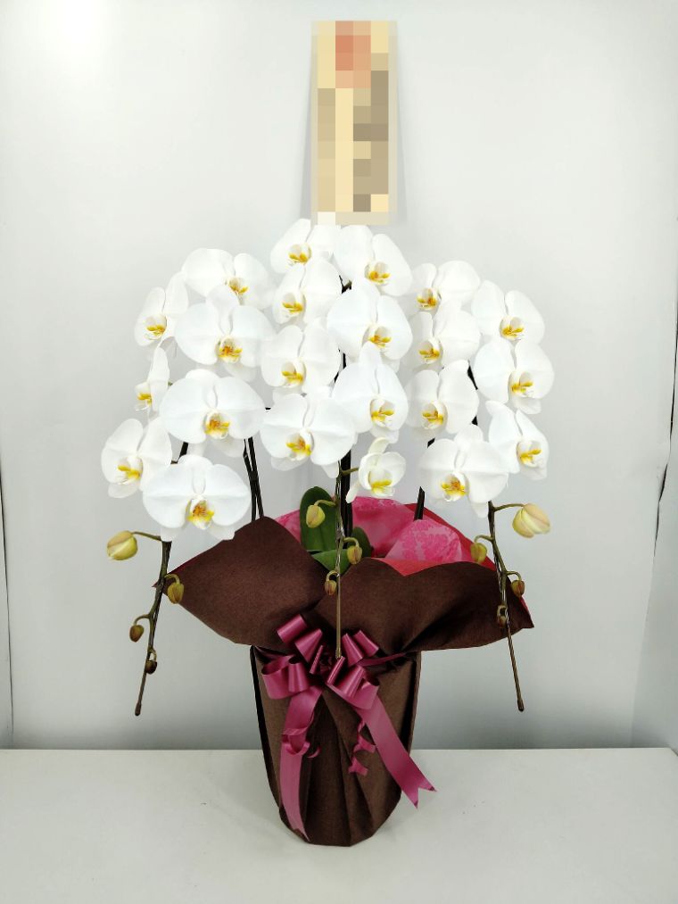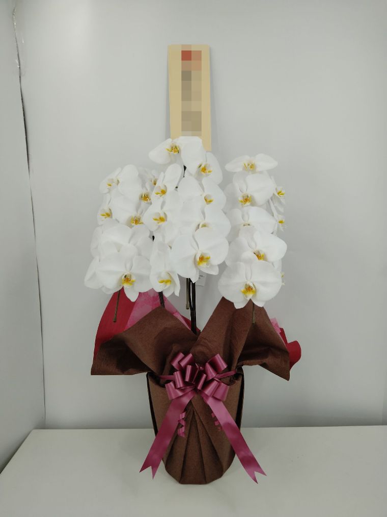 胡蝶蘭の実際にお届けした写真です。花秘書では発送前に写真をメールで送信致しますので安心して大切な顧客や取引様へのギフトにご利用頂けます。