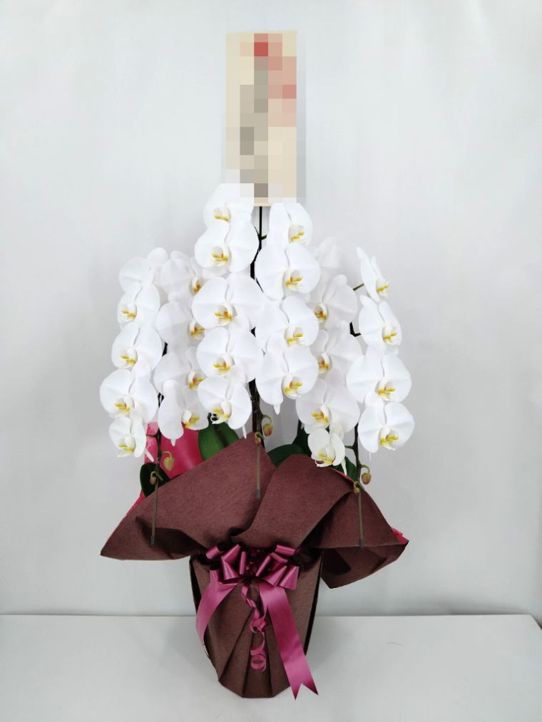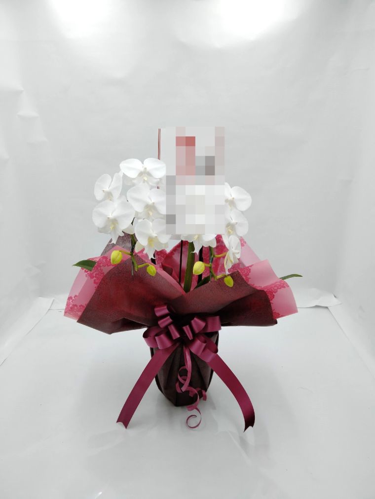 胡蝶蘭の実際にお届けした写真です。花秘書では発送前に写真をメールで送信致しますので安心して大切な顧客や取引様へのギフトにご利用頂けます。