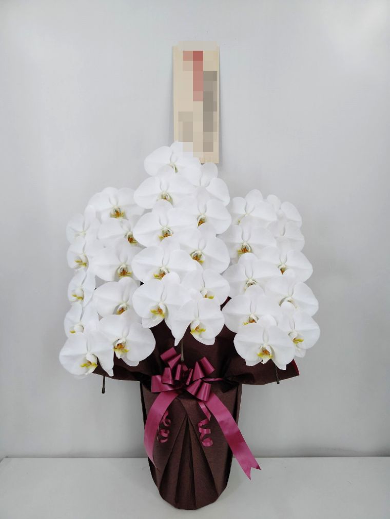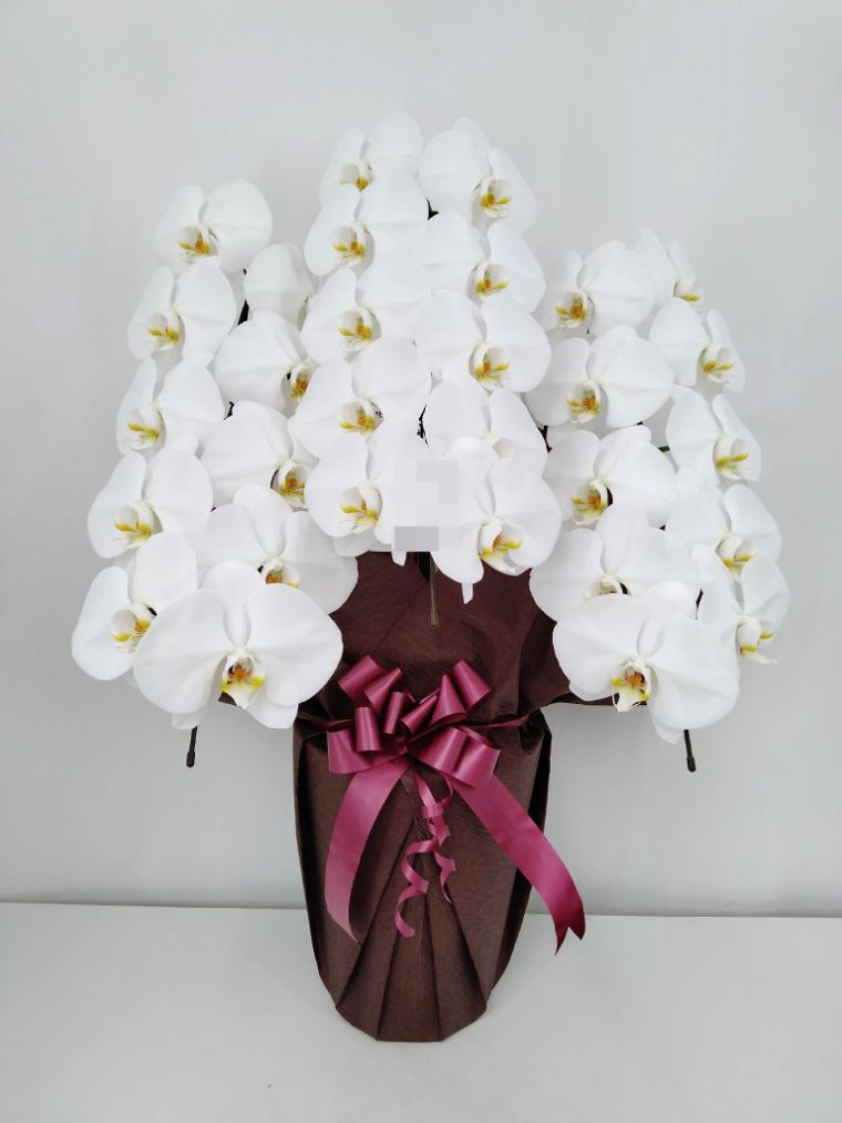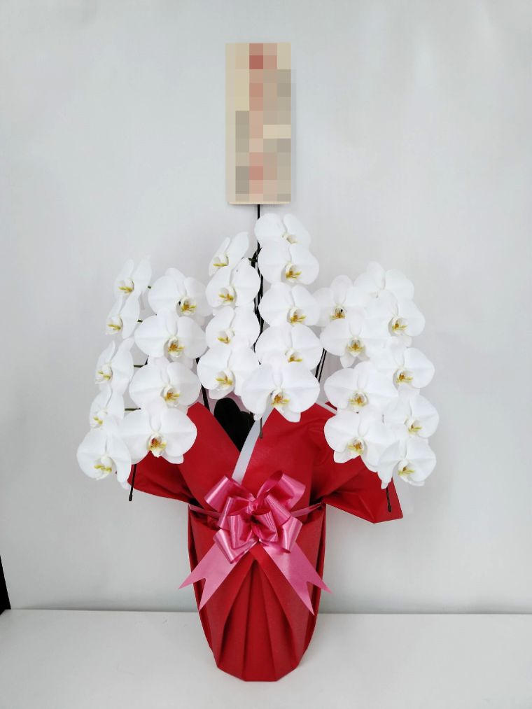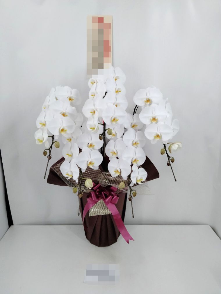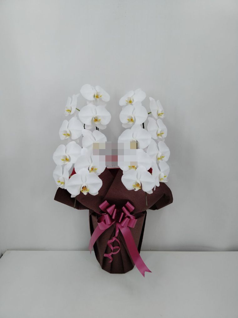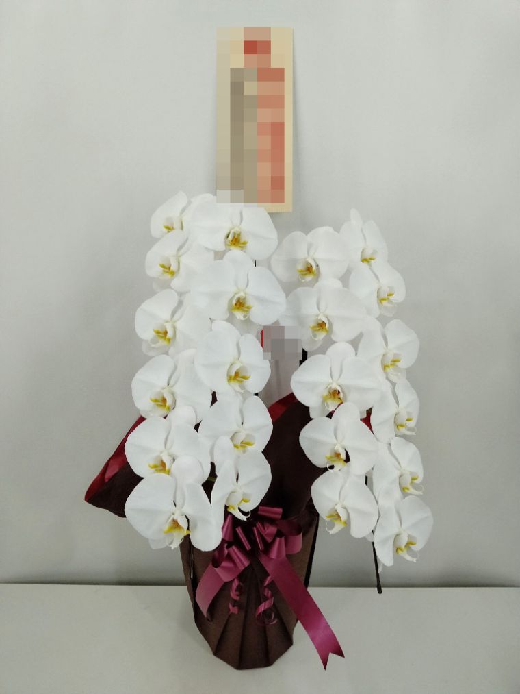 胡蝶蘭の実際にお届けした写真です。花秘書では発送前に写真をメールで送信致しますので安心して大切な顧客や取引様へのギフトにご利用頂けます。