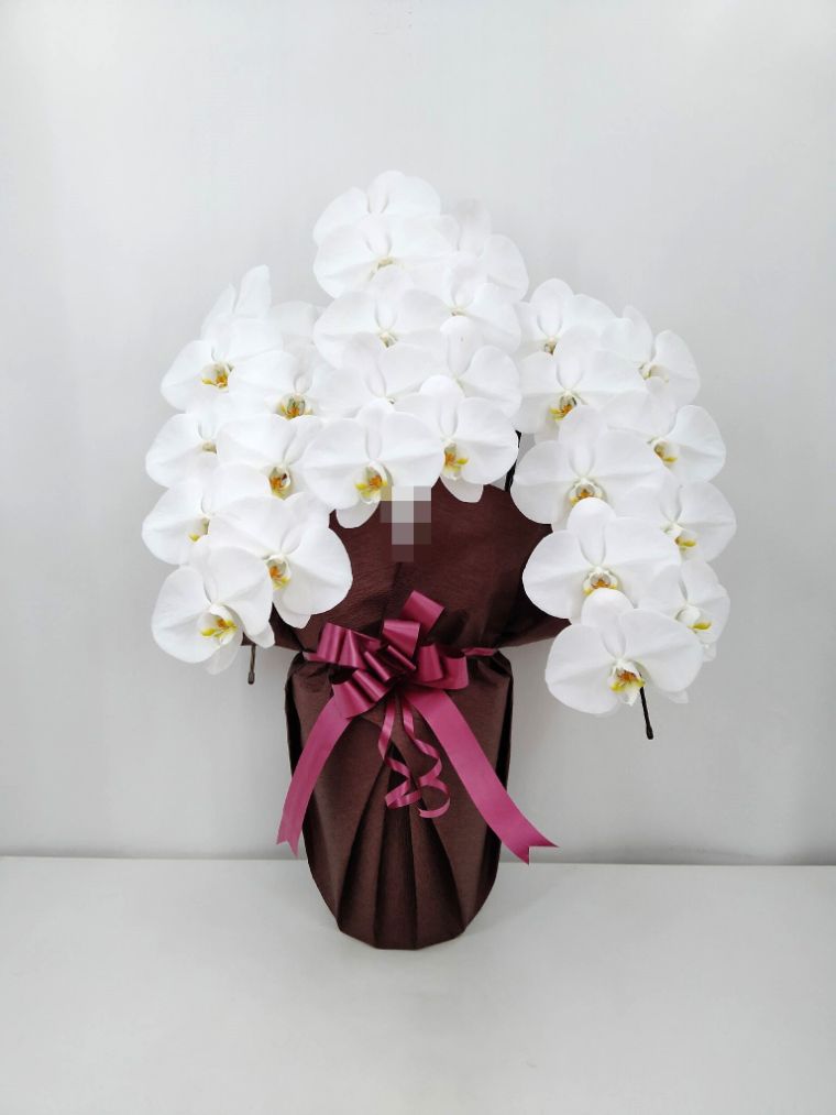 胡蝶蘭の実際にお届けした写真です。花秘書では発送前に写真をメールで送信致しますので安心して大切な顧客や取引様へのギフトにご利用頂けます。