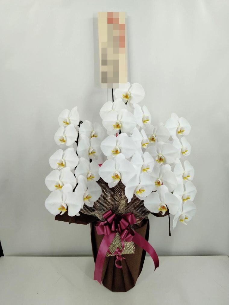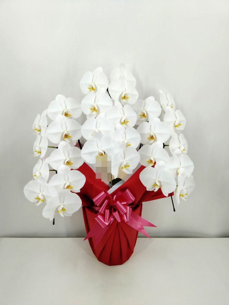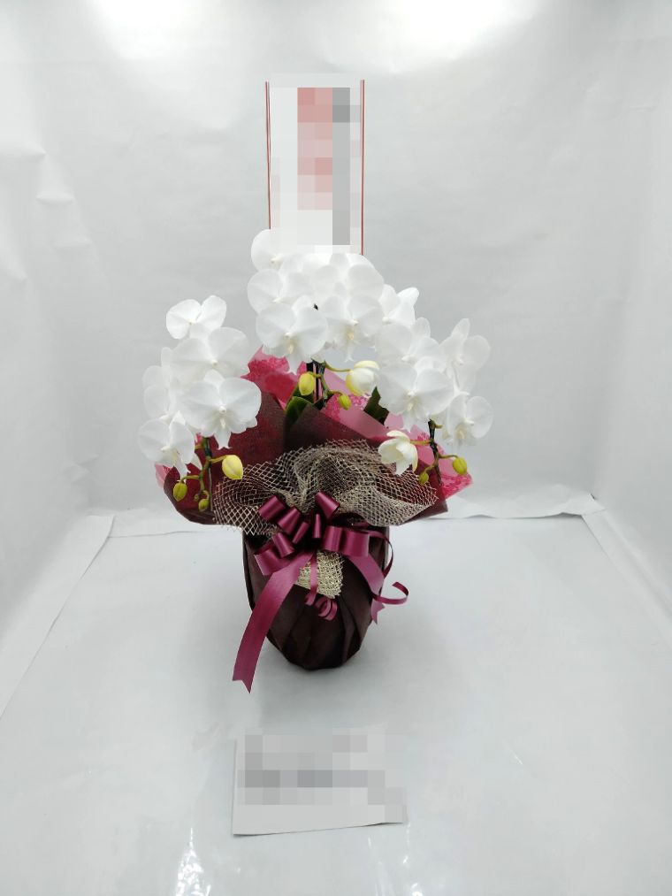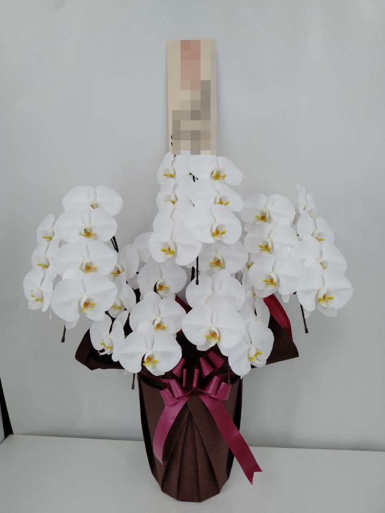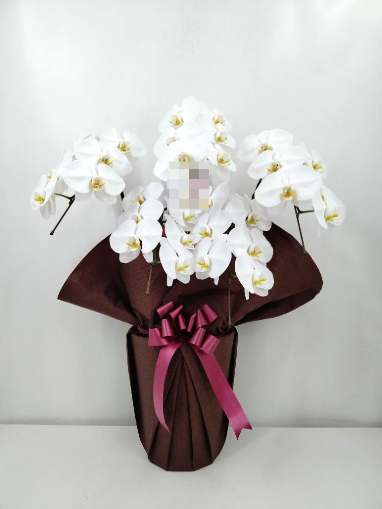 胡蝶蘭の実際にお届けした写真です。花秘書では発送前に写真をメールで送信致しますので安心して大切な顧客や取引様へのギフトにご利用頂けます。