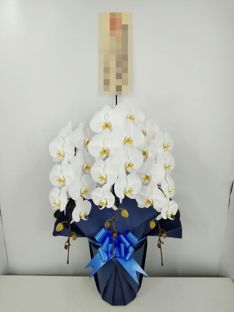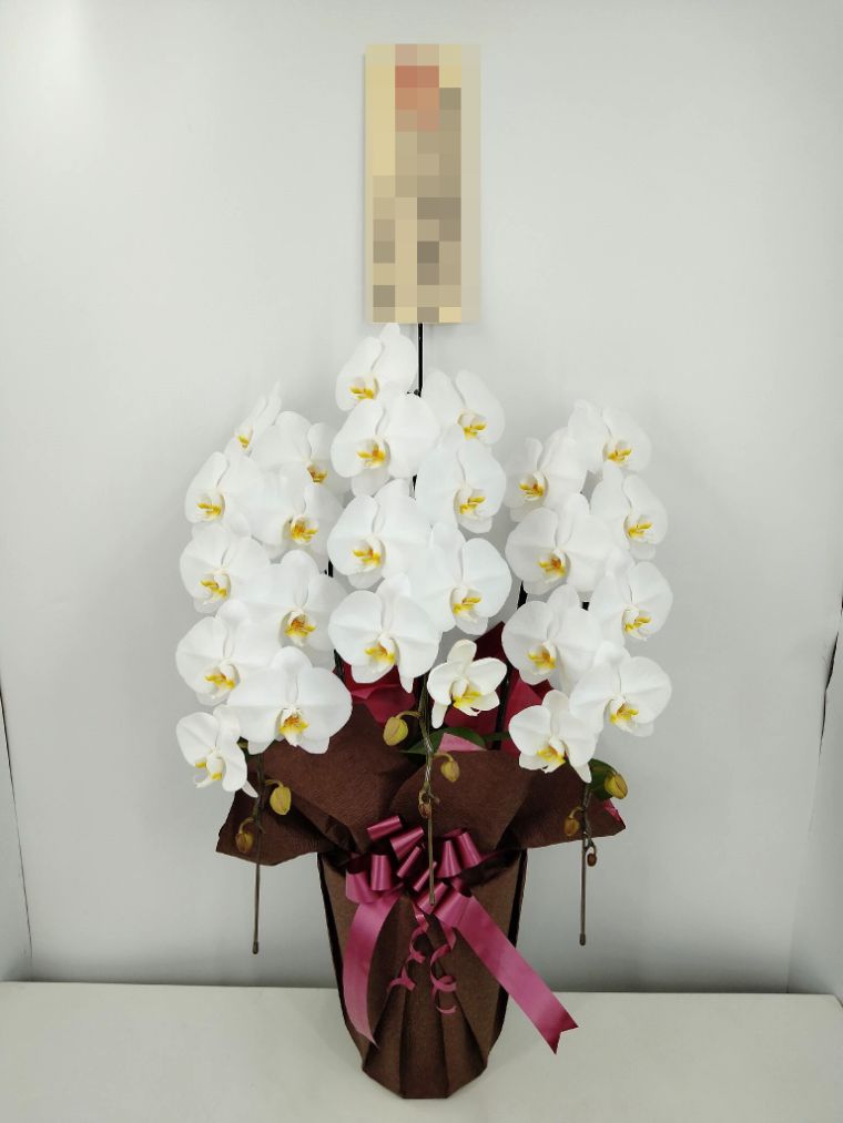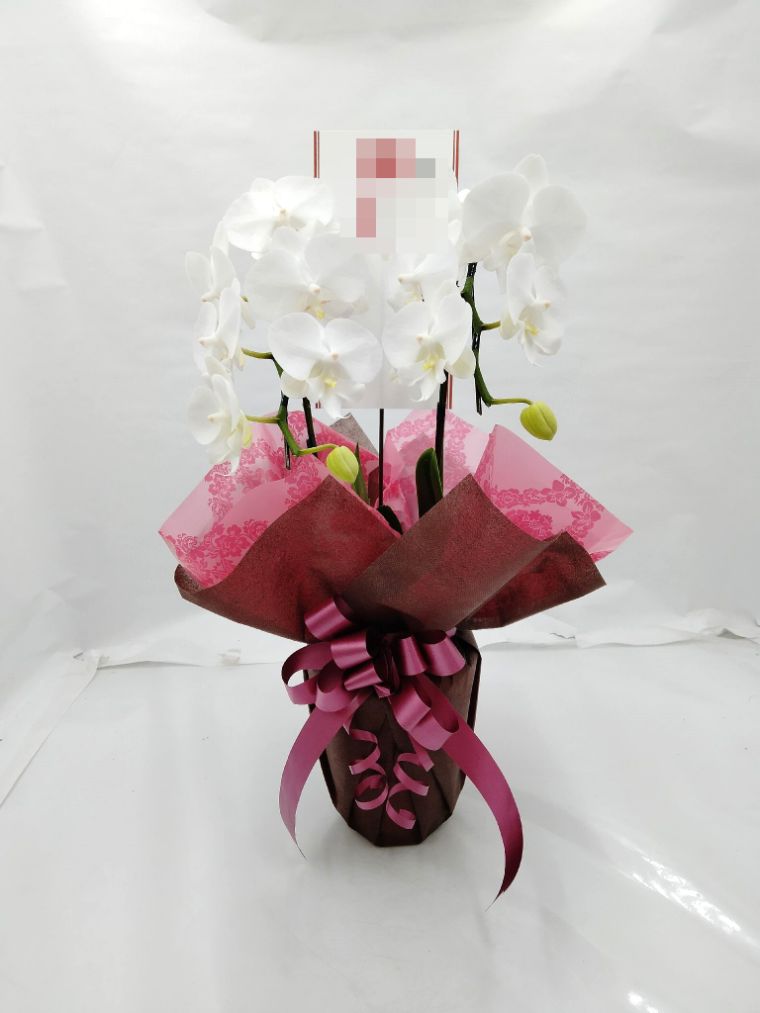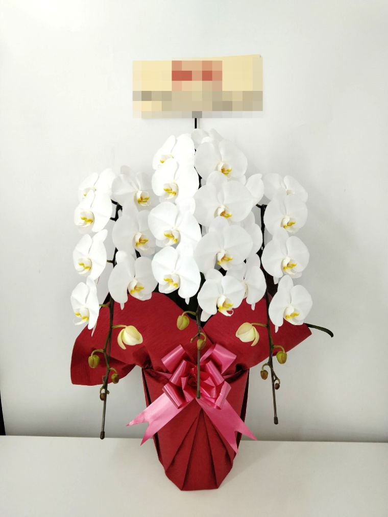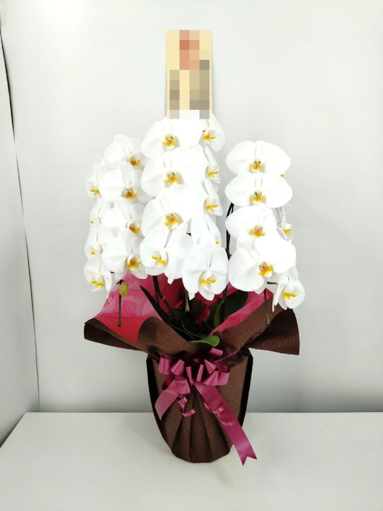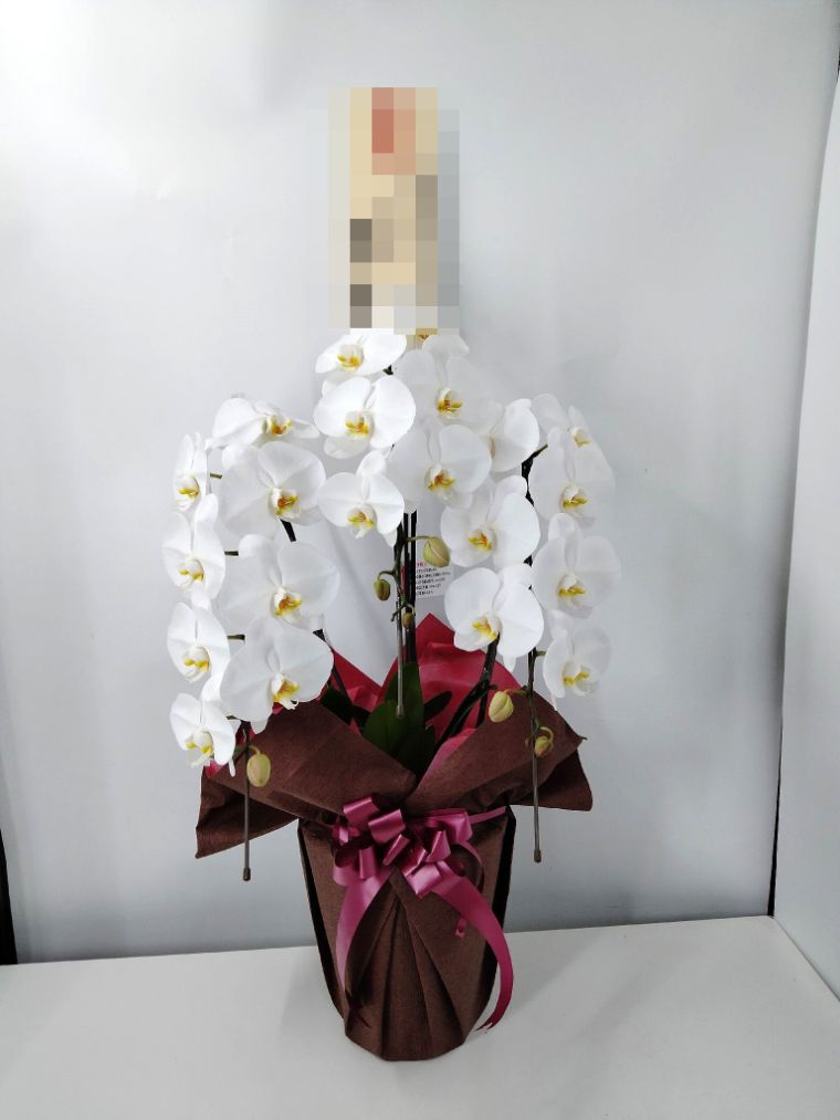 胡蝶蘭の実際にお届けした写真です。花秘書では発送前に写真をメールで送信致しますので安心して大切な顧客や取引様へのギフトにご利用頂けます。