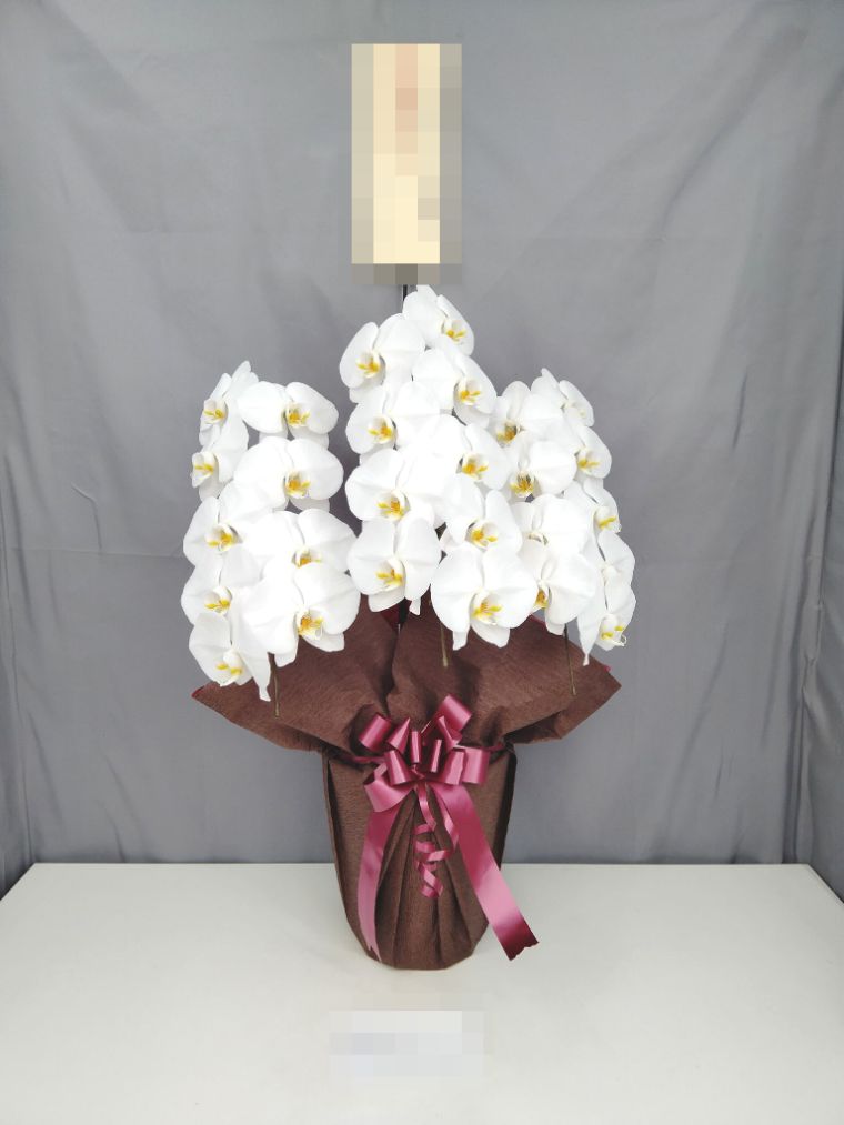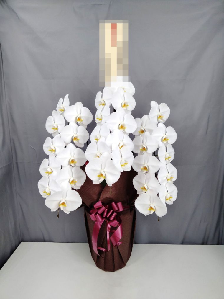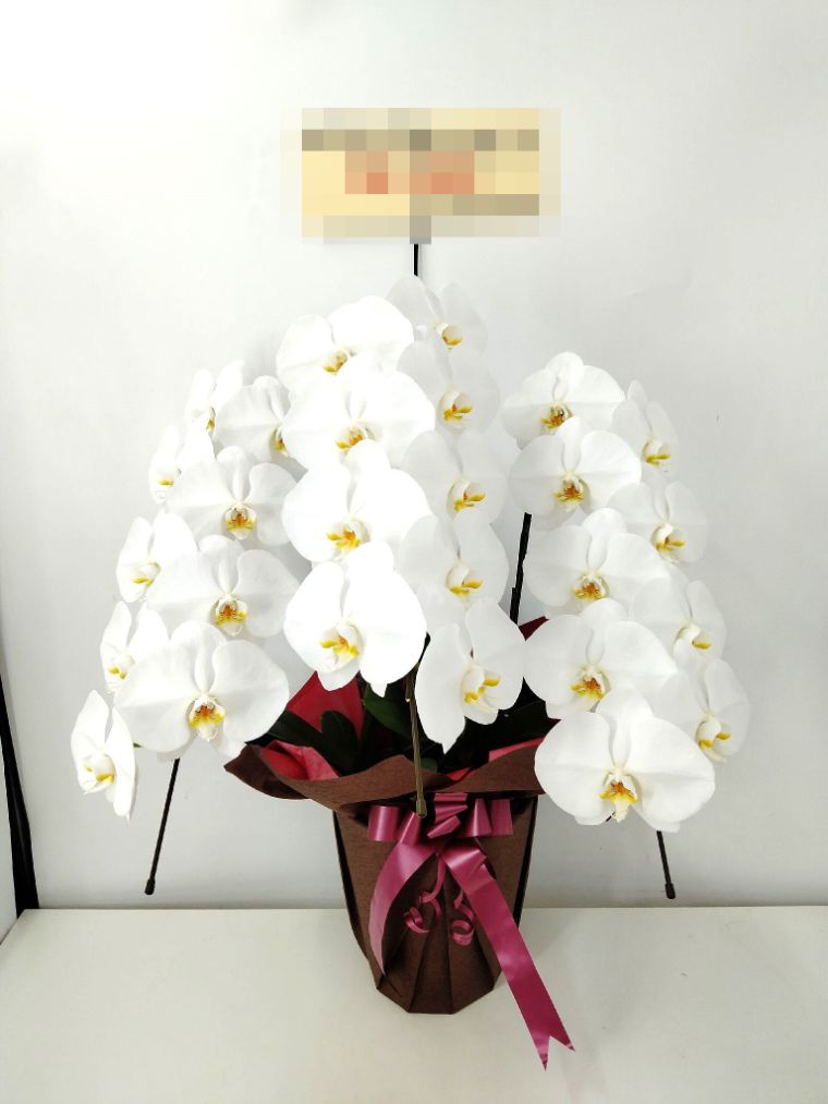 胡蝶蘭の実際にお届けした写真です。花秘書では発送前に写真をメールで送信致しますので安心して大切な顧客や取引様へのギフトにご利用頂けます。