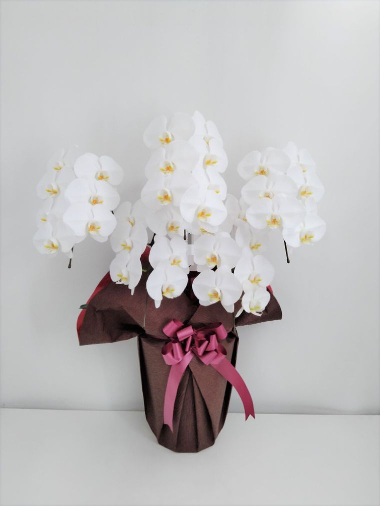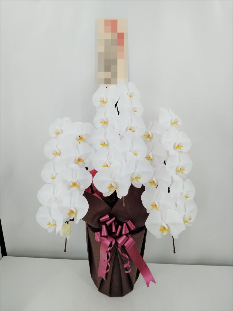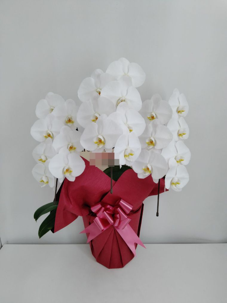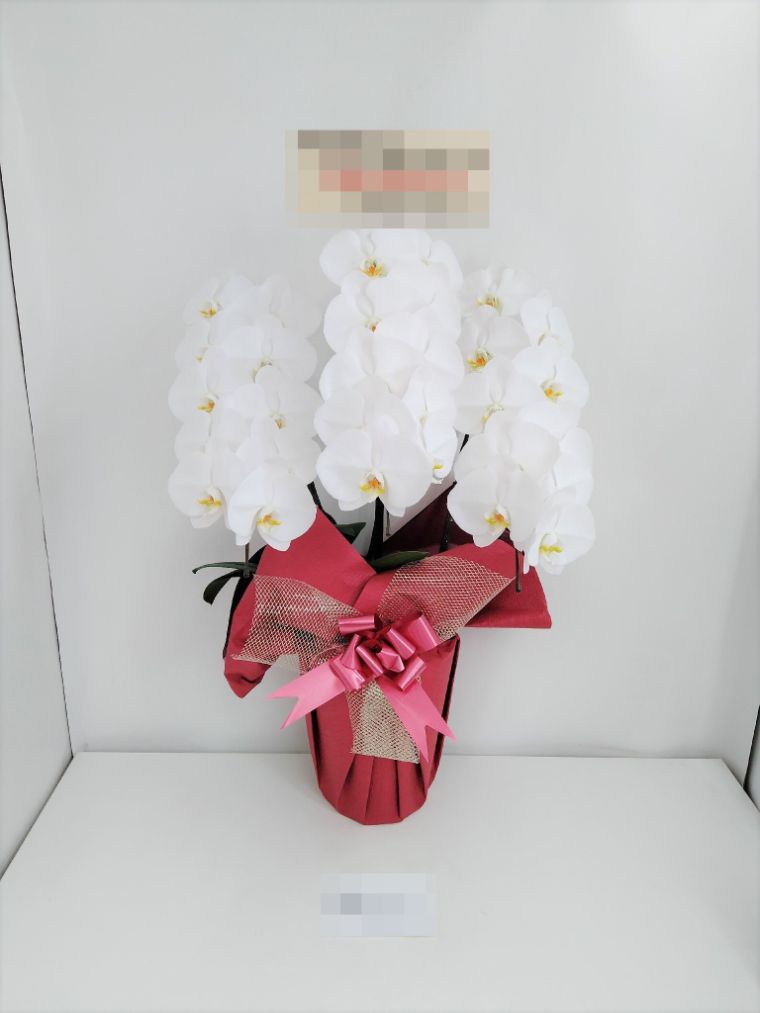 胡蝶蘭の実際にお届けした写真です。花秘書では発送前に写真をメールで送信致しますので安心して大切な顧客や取引様へのギフトにご利用頂けます。