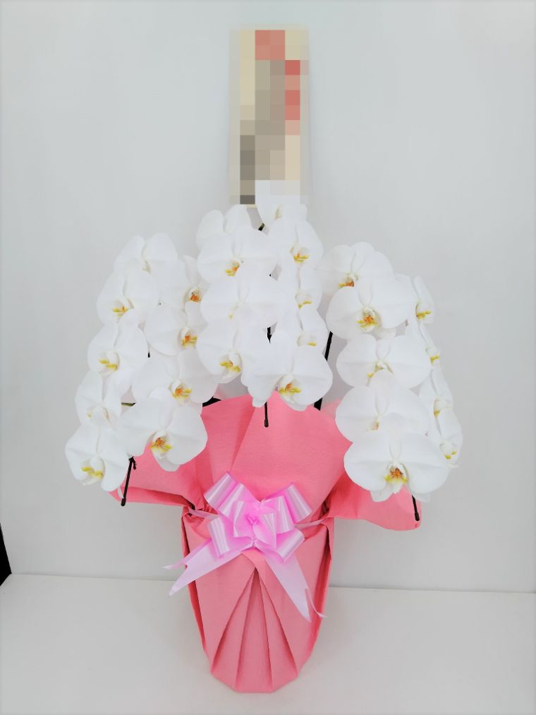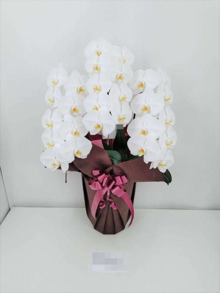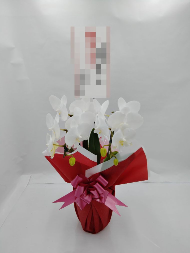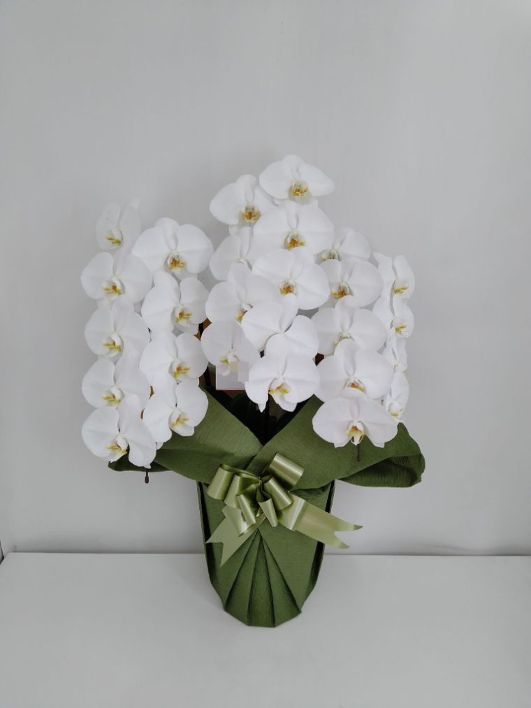胡蝶蘭の実際にお届けした写真です。花秘書では発送前に写真をメールで送信致しますので安心して大切な顧客や取引様へのギフトにご利用頂けます。