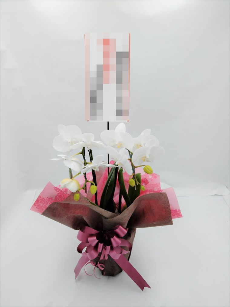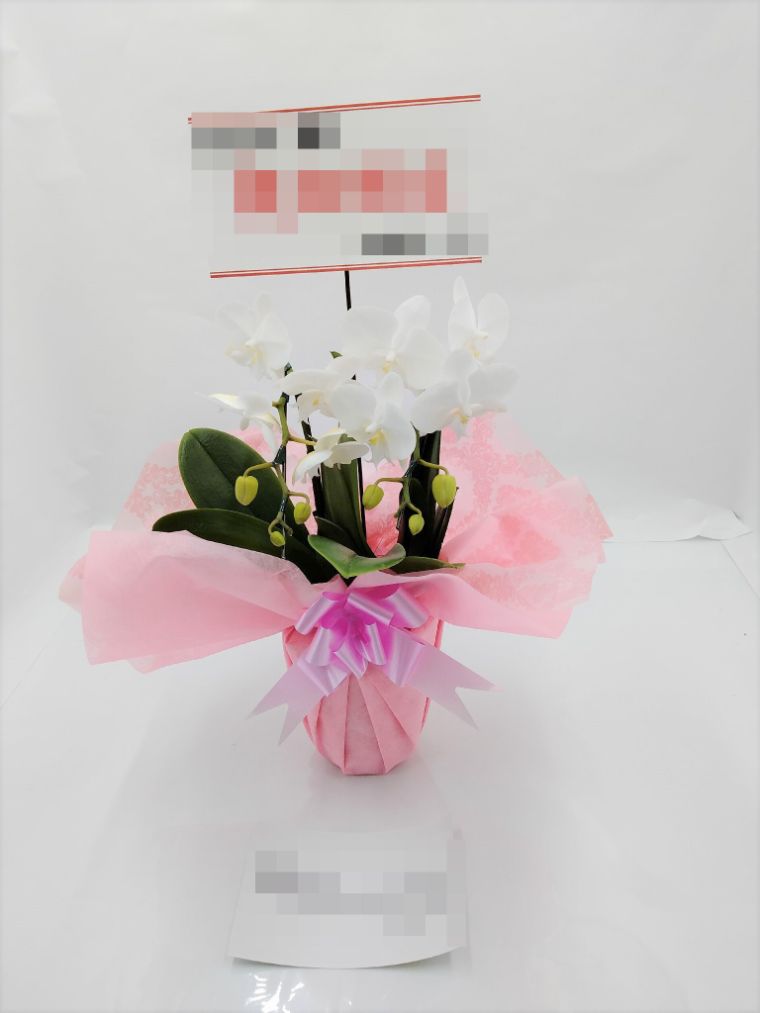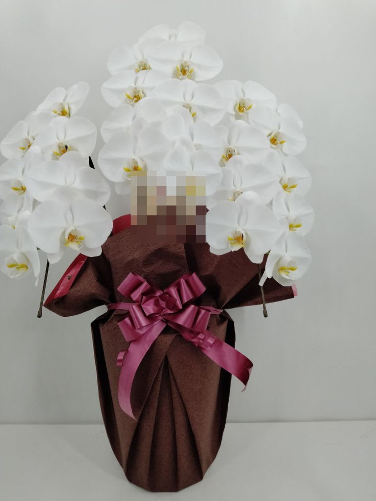 胡蝶蘭の実際にお届けした写真です。花秘書では発送前に写真をメールで送信致しますので安心して大切な顧客や取引様へのギフトにご利用頂けます。