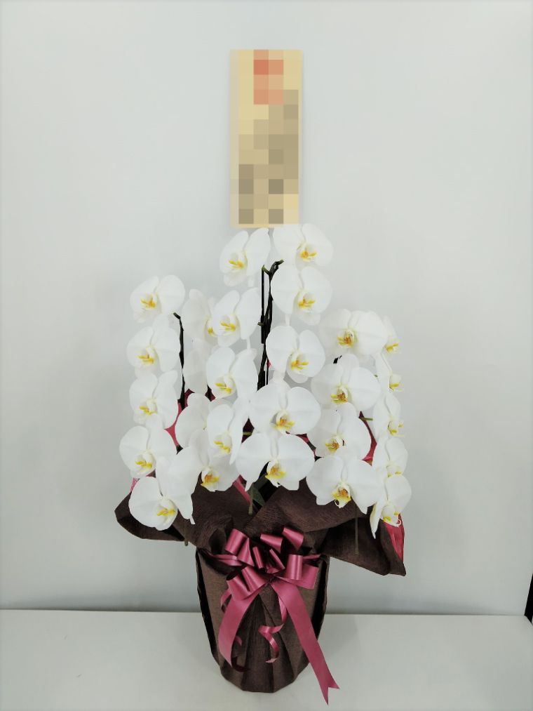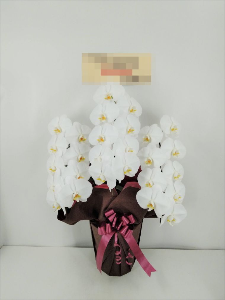胡蝶蘭の実際にお届けした写真です。花秘書では発送前に写真をメールで送信致しますので安心して大切な顧客や取引様へのギフトにご利用頂けます。