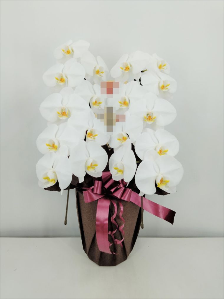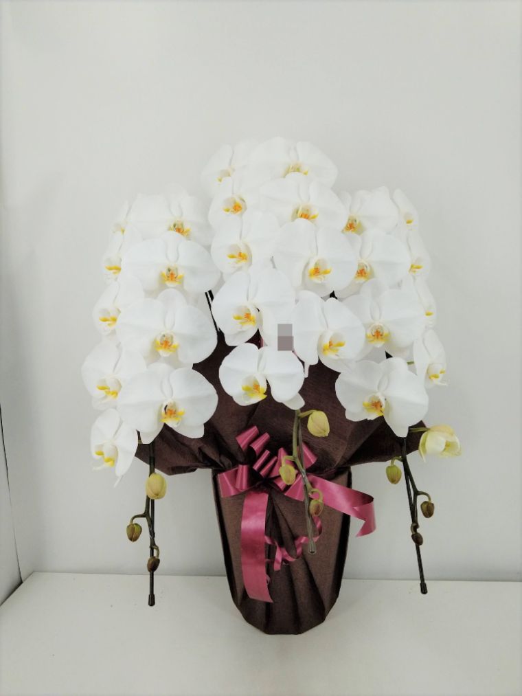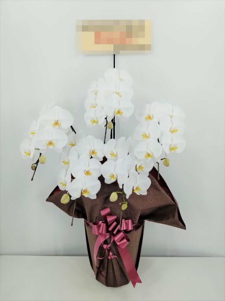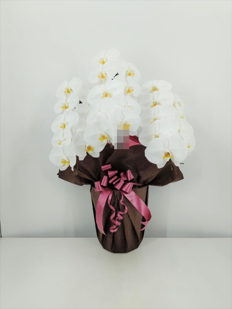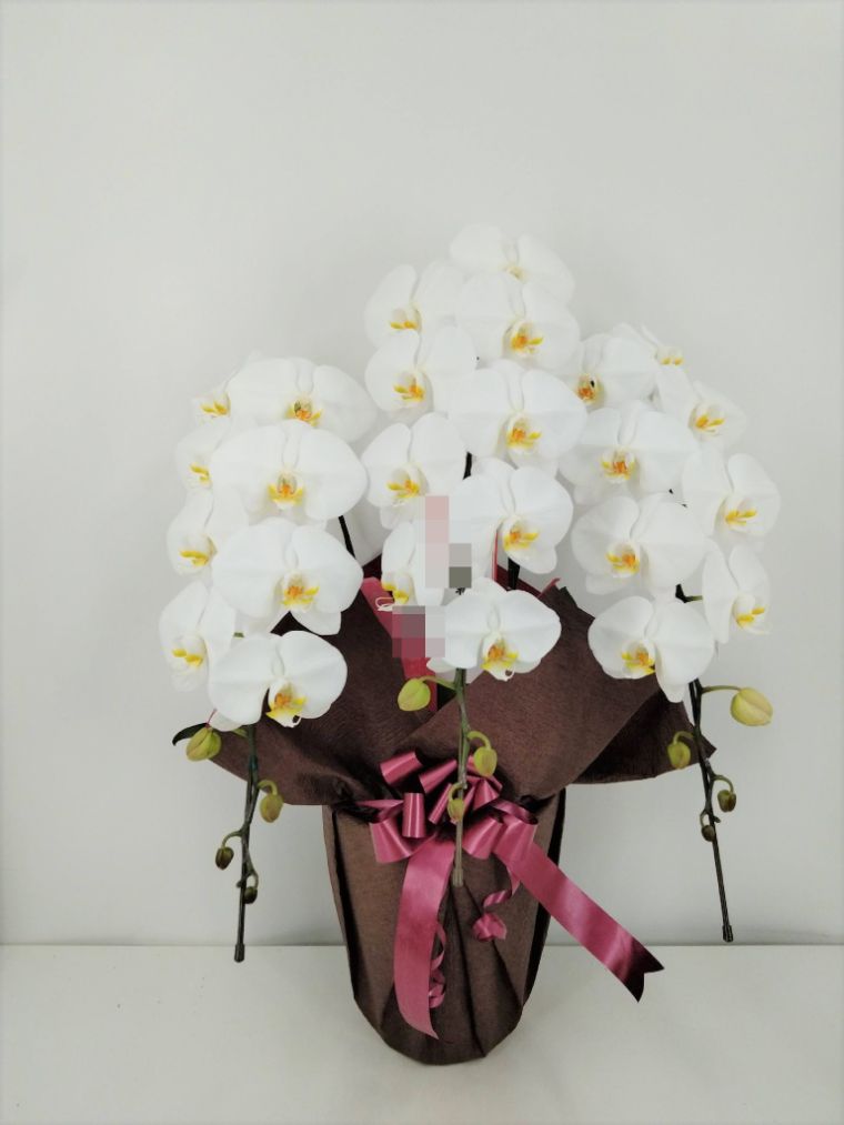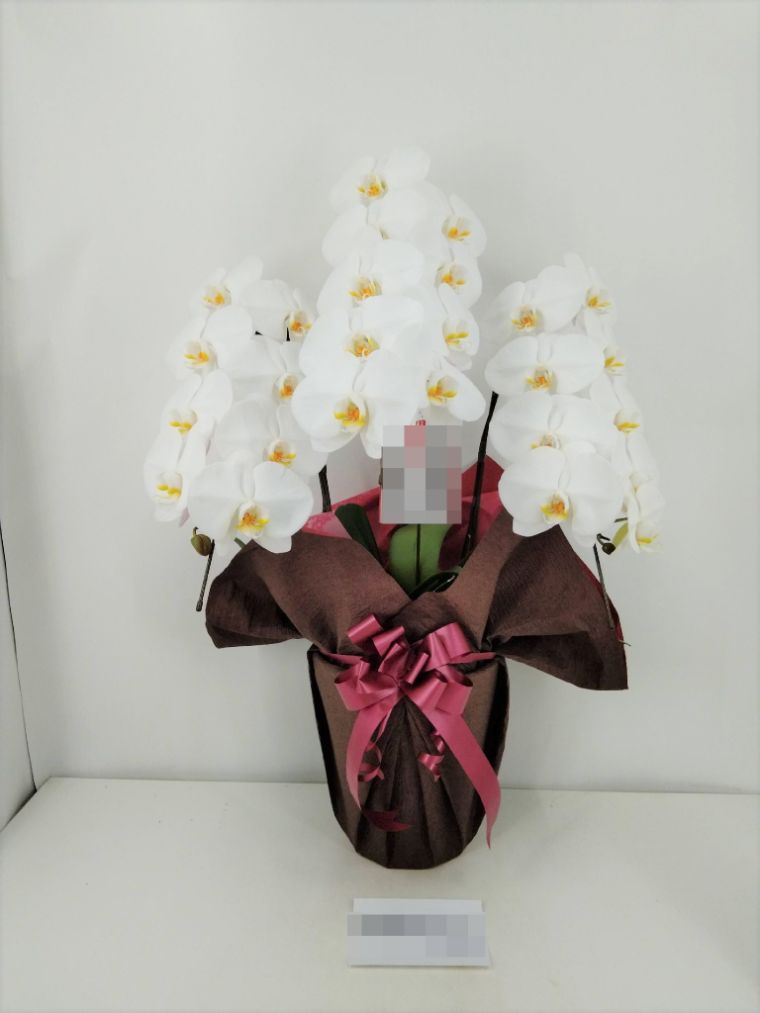 胡蝶蘭の実際にお届けした写真です。花秘書では発送前に写真をメールで送信致しますので安心して大切な顧客や取引様へのギフトにご利用頂けます。