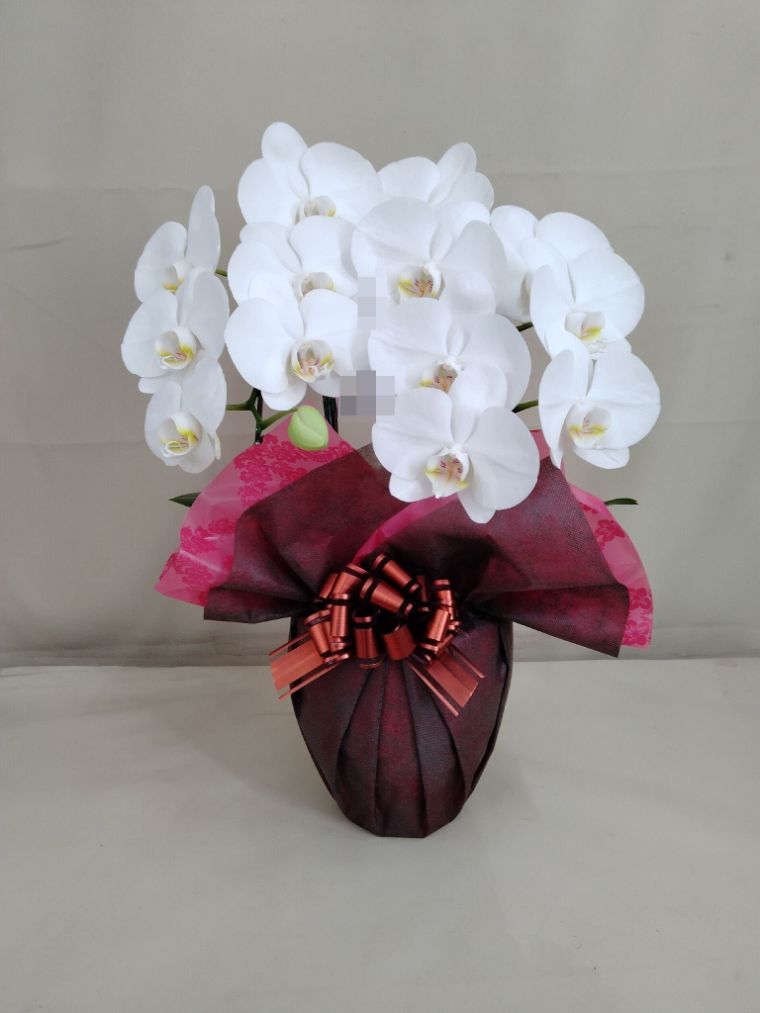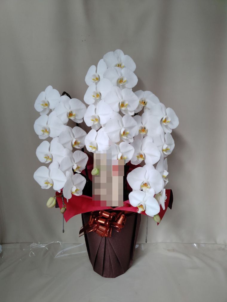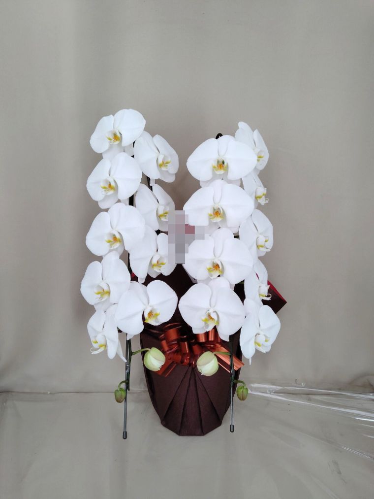 胡蝶蘭の実際にお届けした写真です。花秘書では発送前に写真をメールで送信致しますので安心して大切な顧客や取引様へのギフトにご利用頂けます。