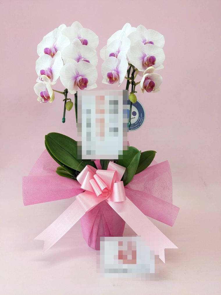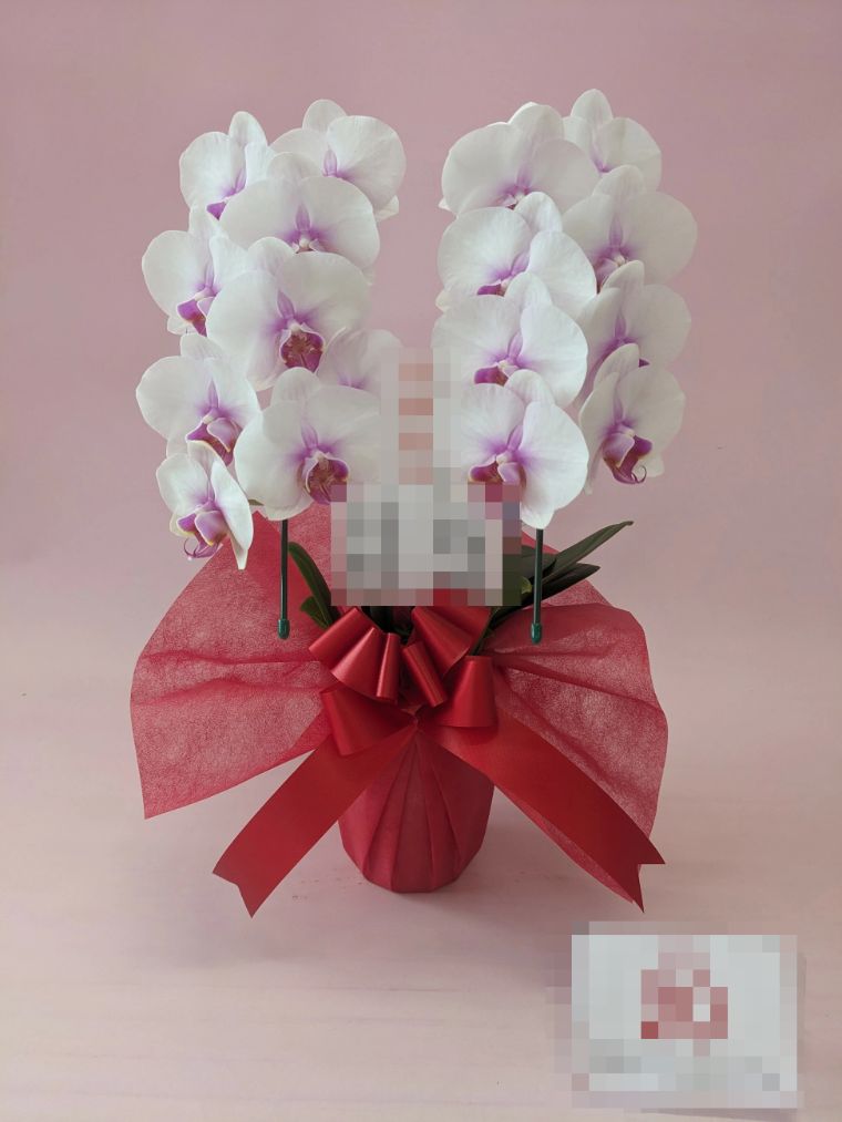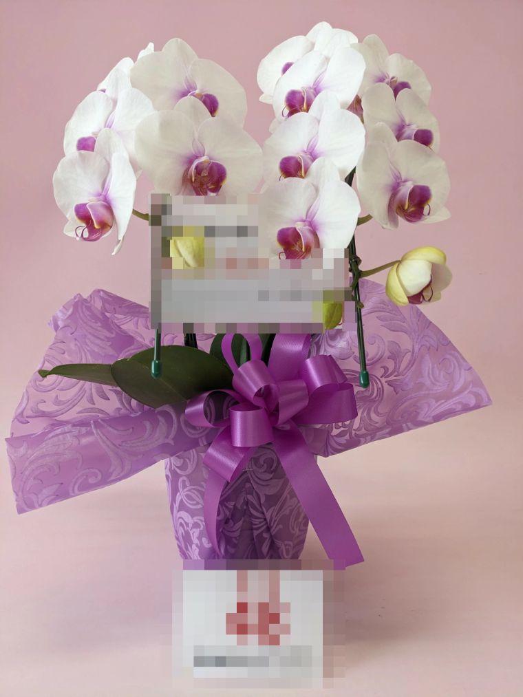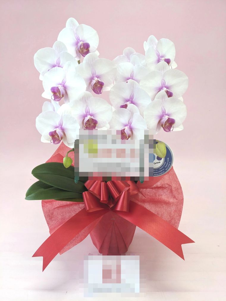 胡蝶蘭の実際にお届けした写真です。花秘書では発送前に写真をメールで送信致しますので安心して大切な顧客や取引様へのギフトにご利用頂けます。