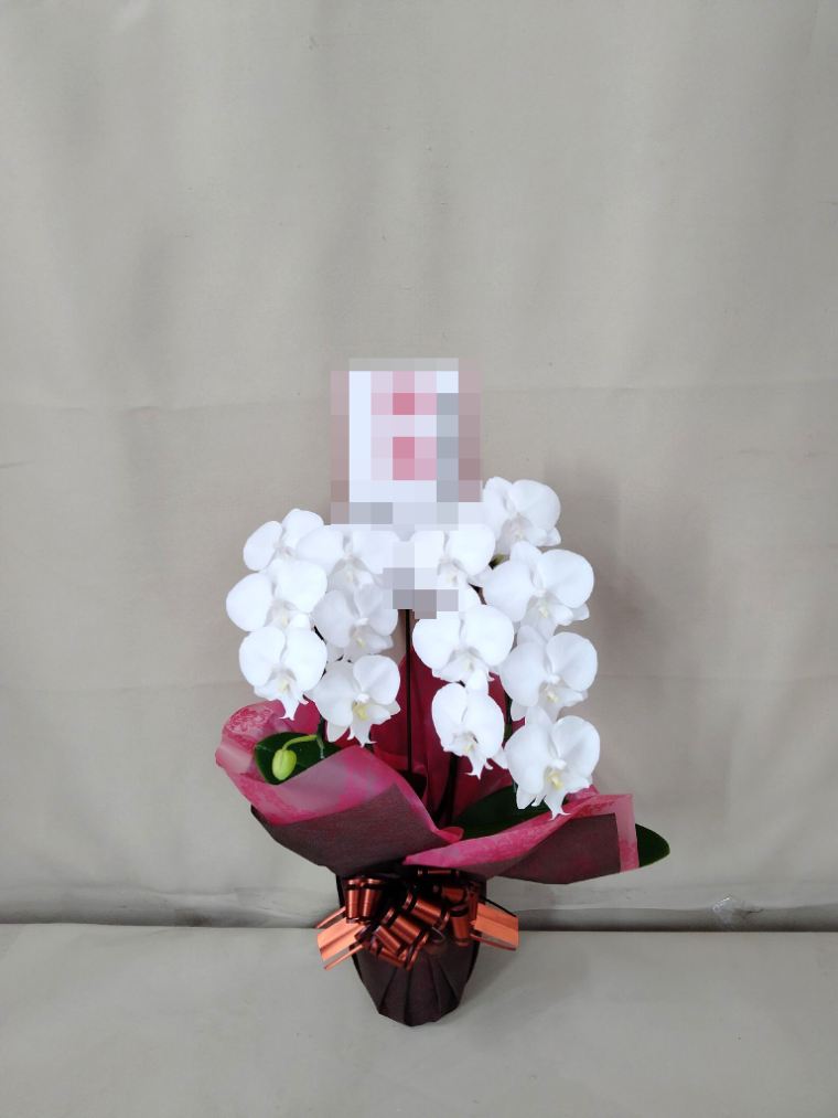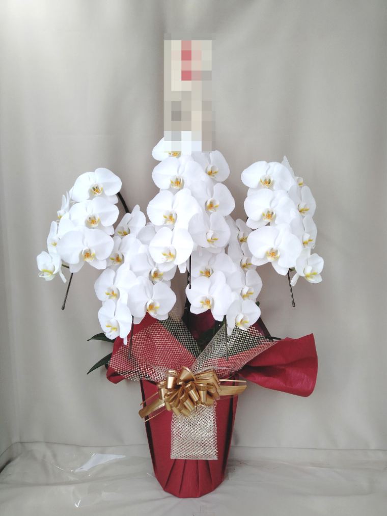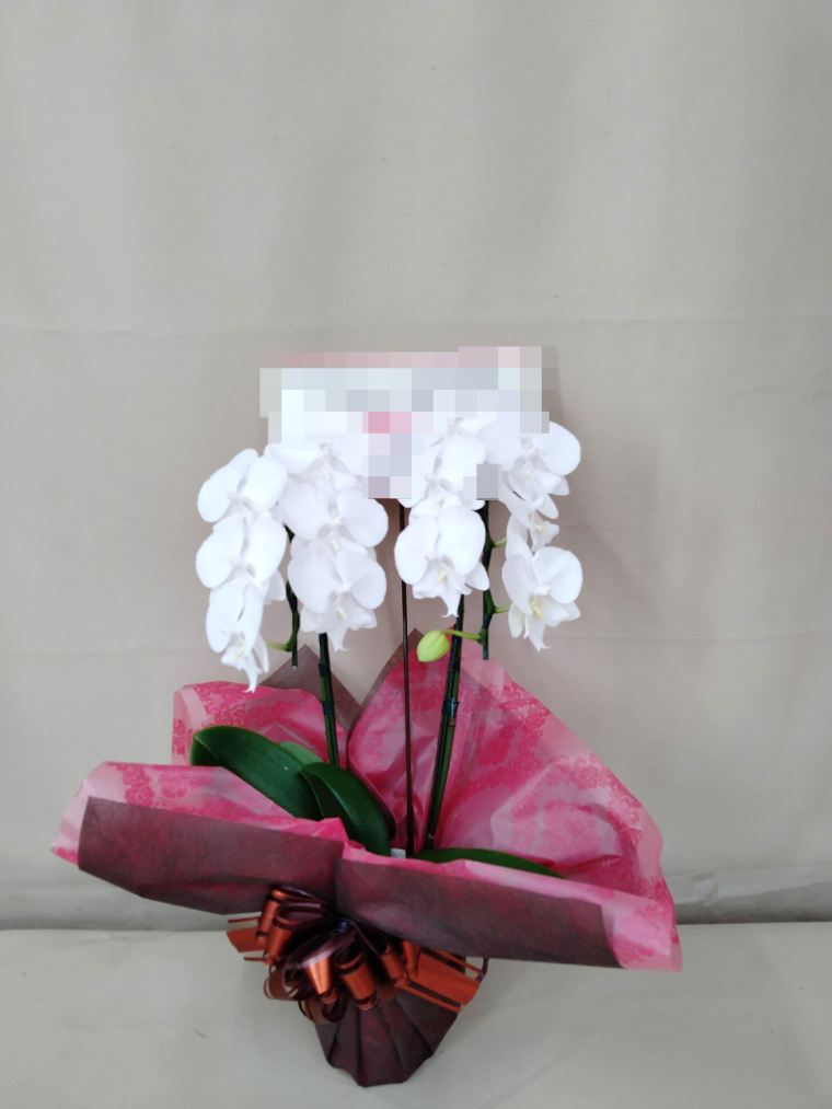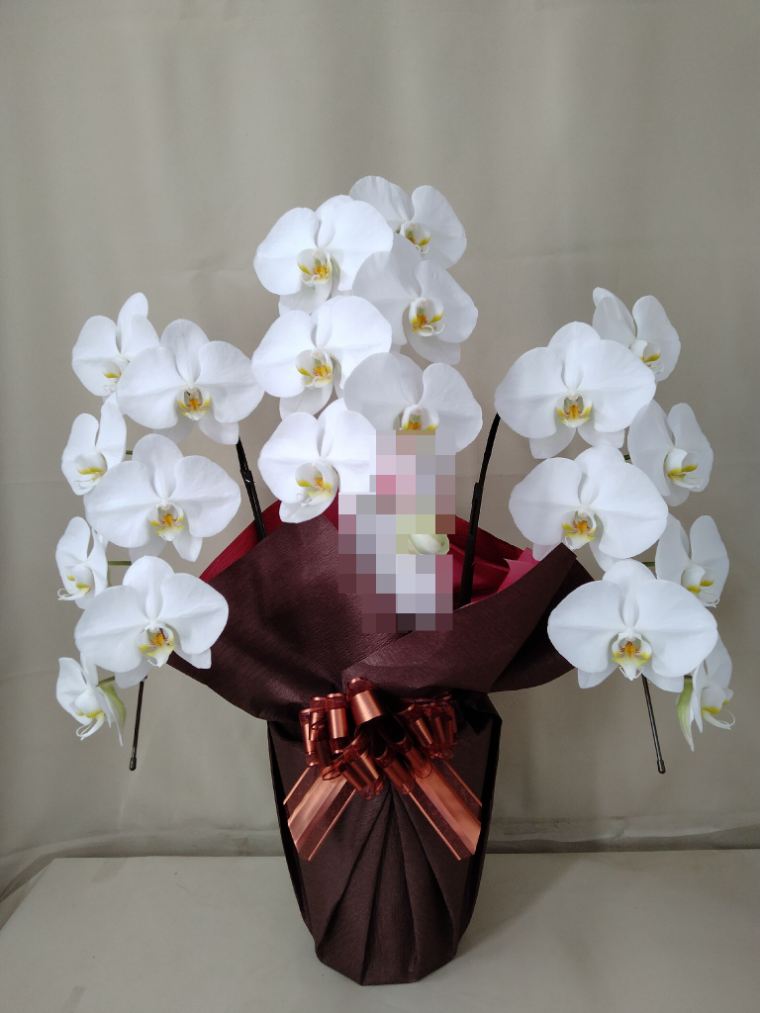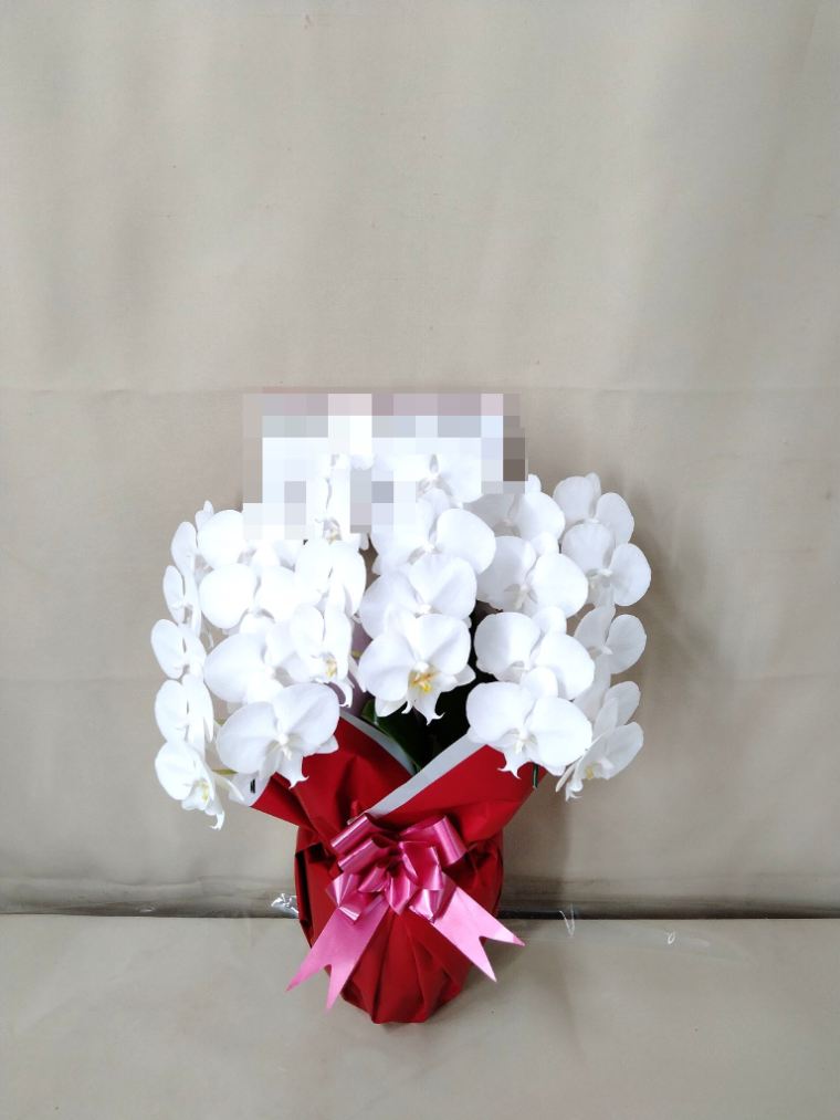 胡蝶蘭の実際にお届けした写真です。花秘書では発送前に写真をメールで送信致しますので安心して大切な顧客や取引様へのギフトにご利用頂けます。