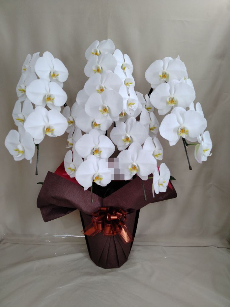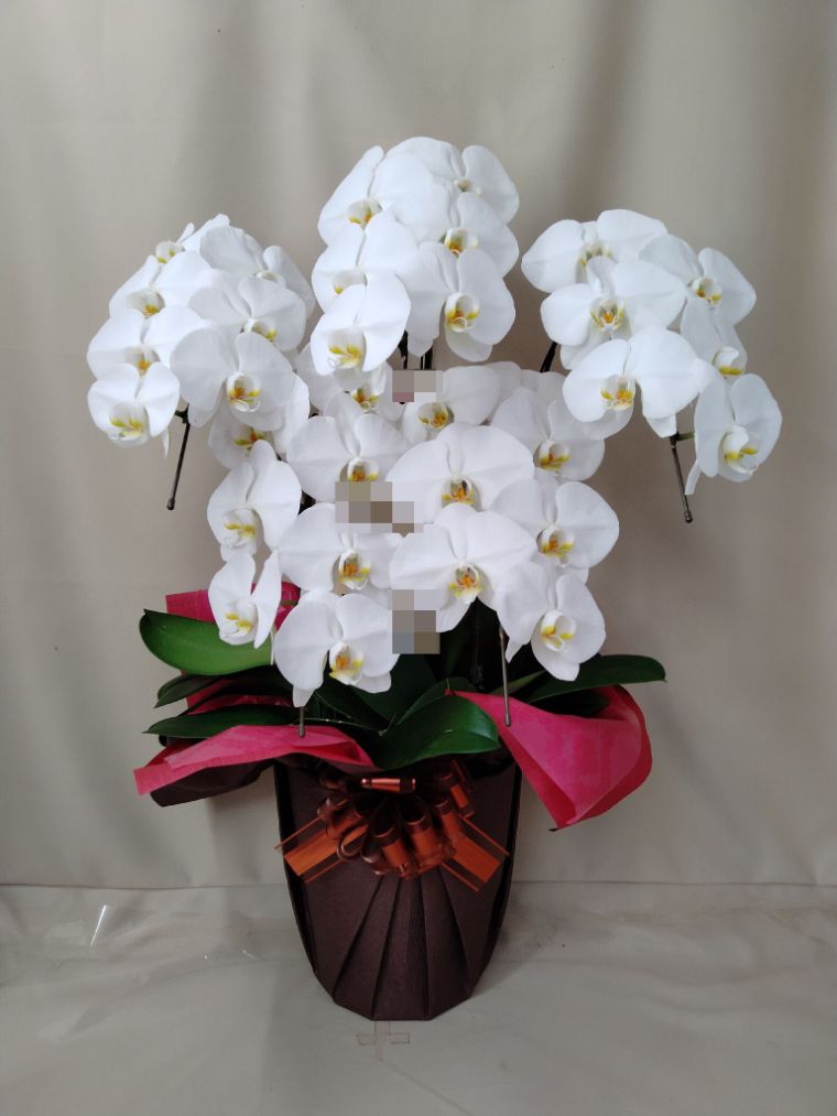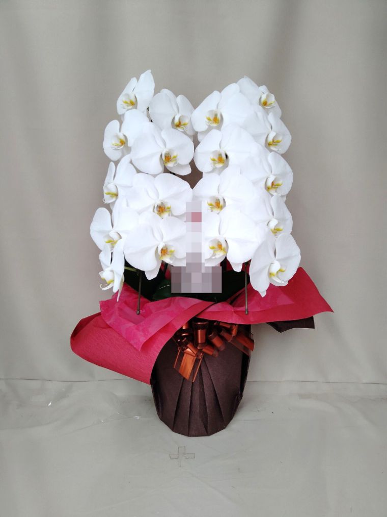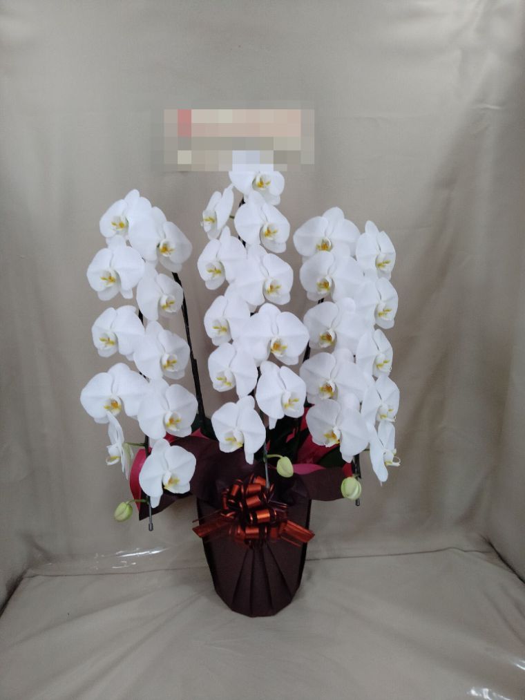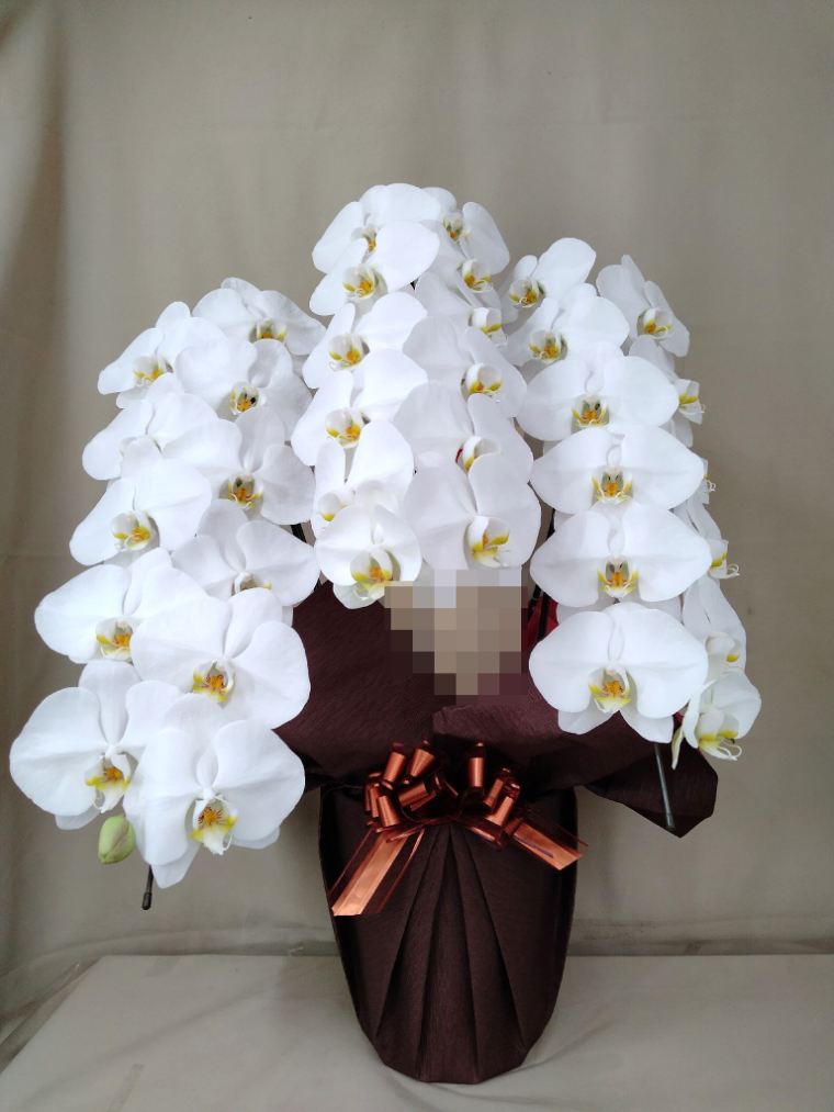 胡蝶蘭の実際にお届けした写真です。花秘書では発送前に写真をメールで送信致しますので安心して大切な顧客や取引様へのギフトにご利用頂けます。