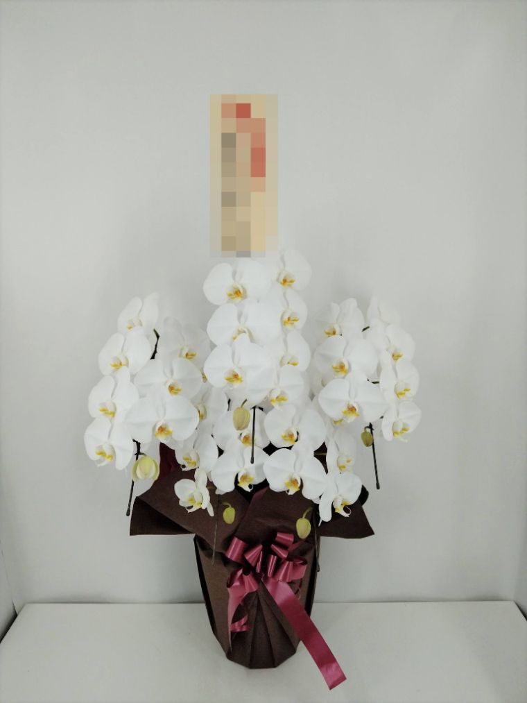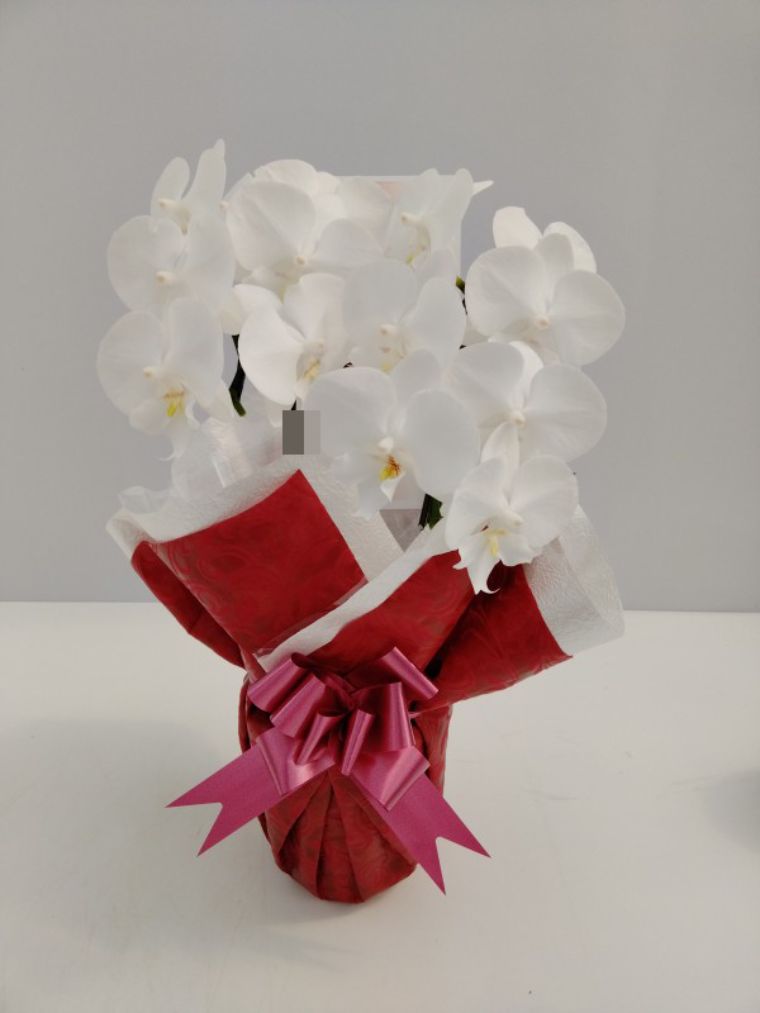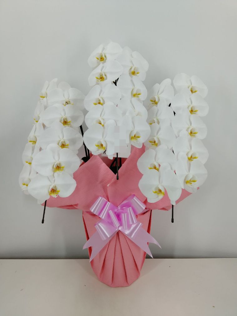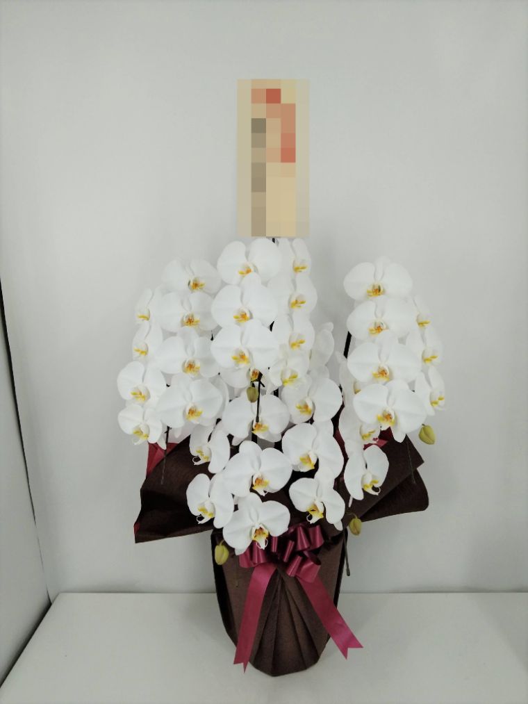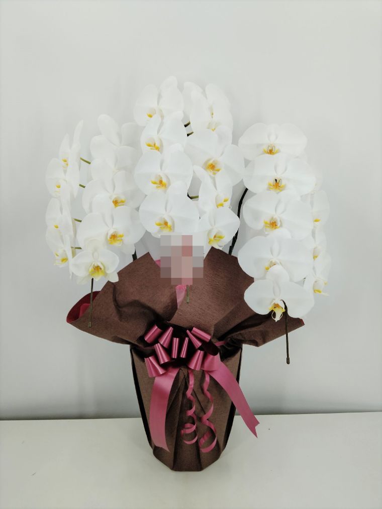 胡蝶蘭の実際にお届けした写真です。花秘書では発送前に写真をメールで送信致しますので安心して大切な顧客や取引様へのギフトにご利用頂けます。