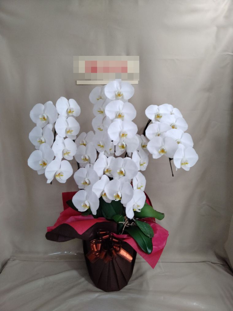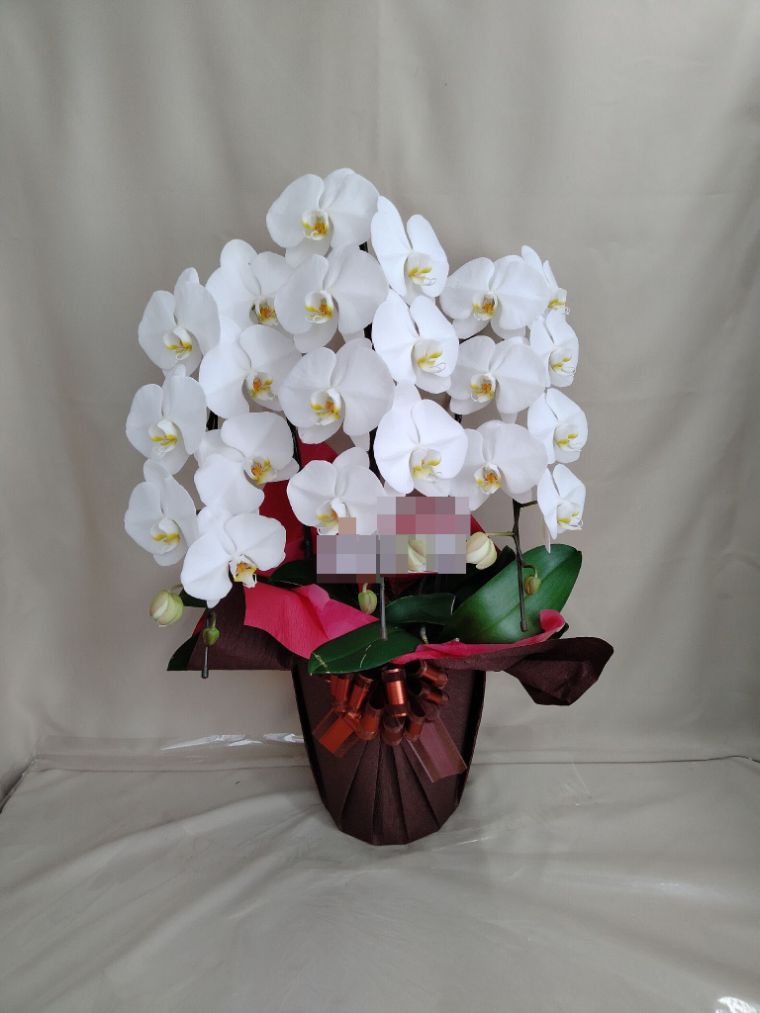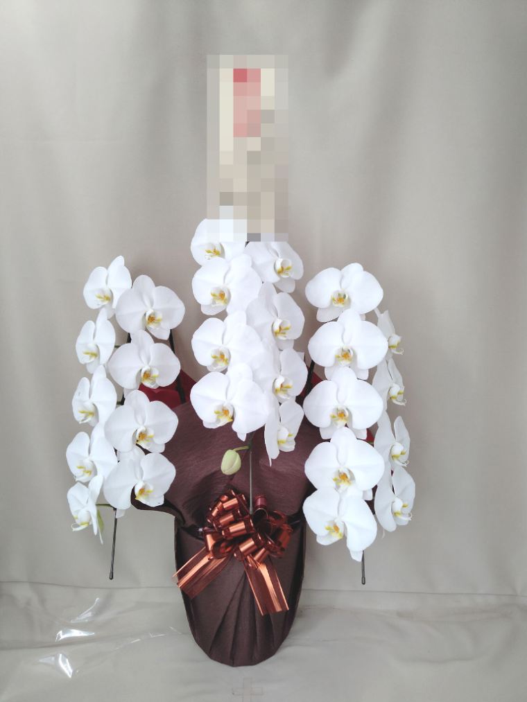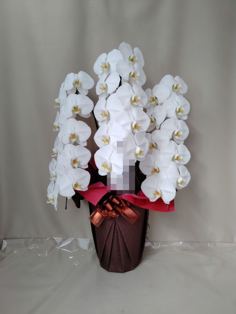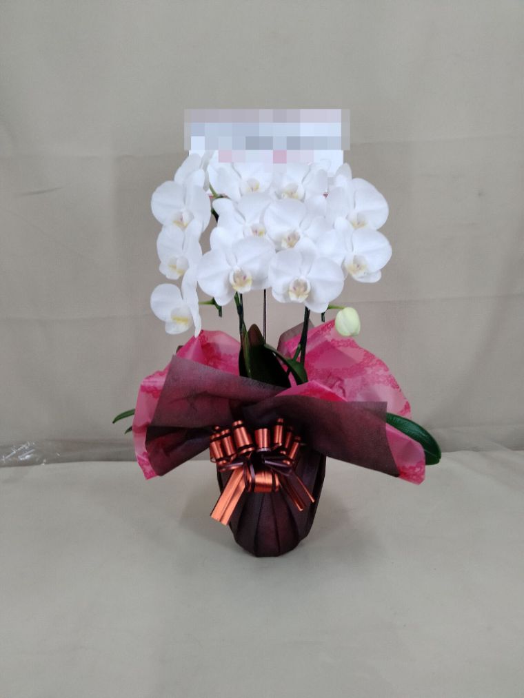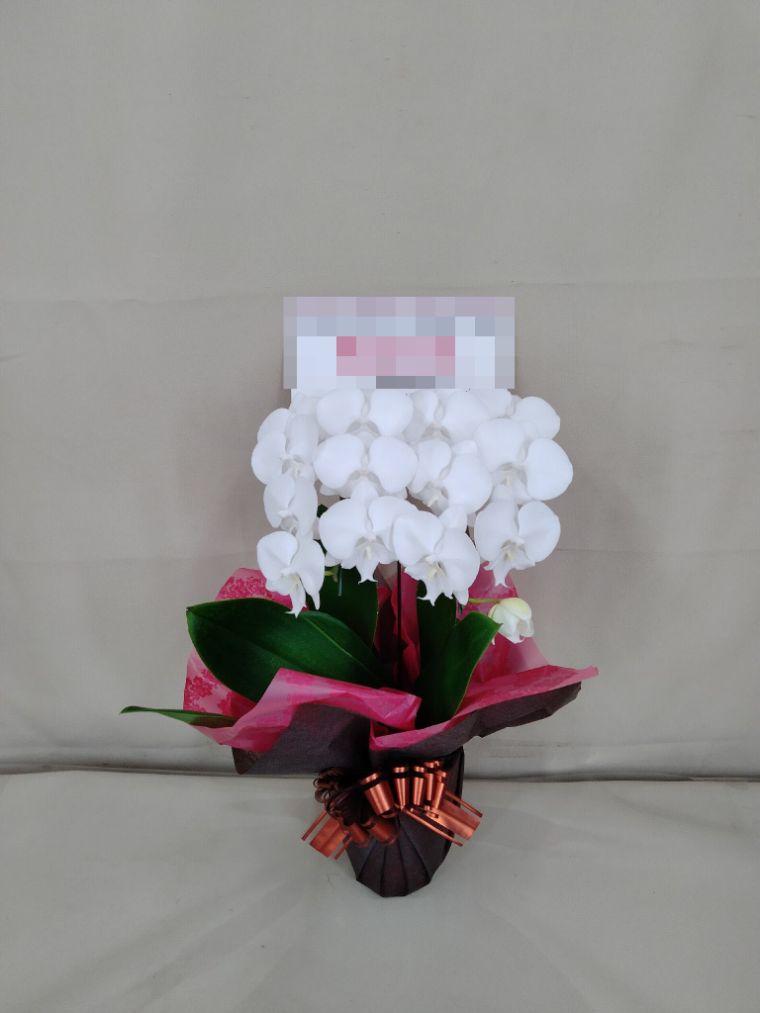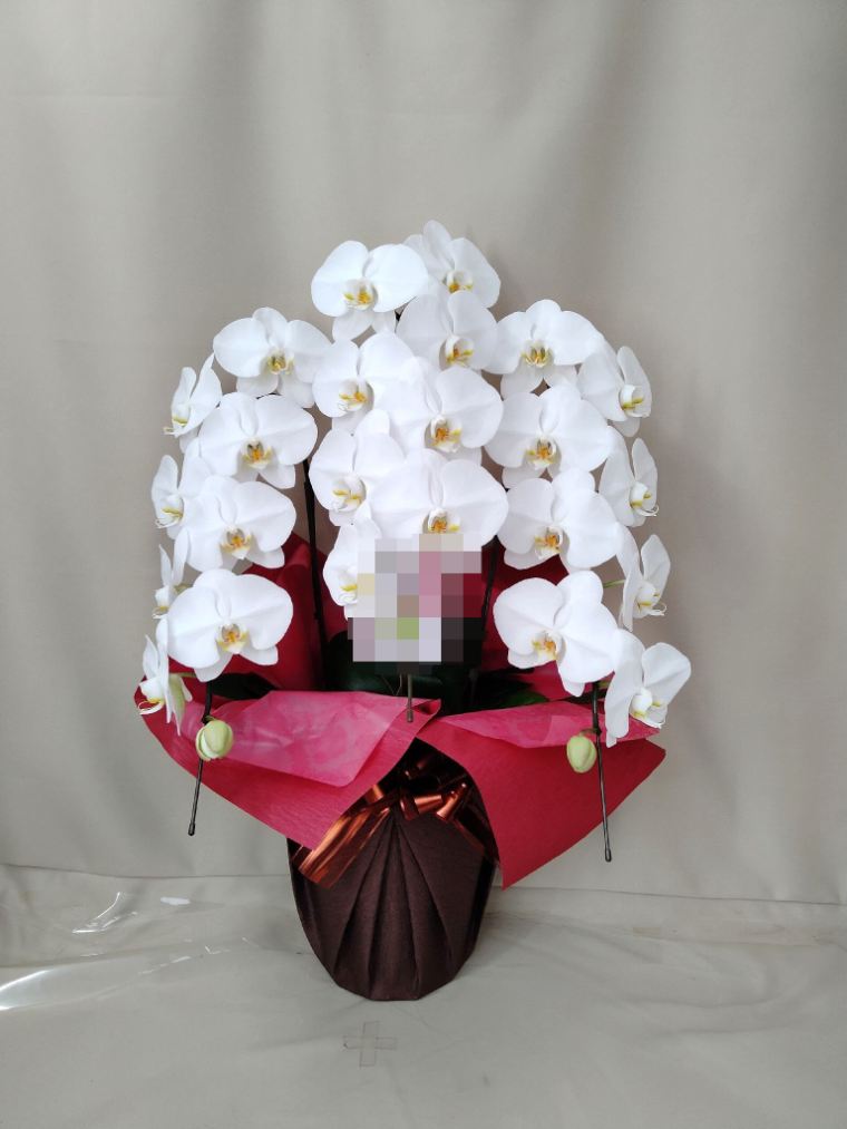 胡蝶蘭の実際にお届けした写真です。花秘書では発送前に写真をメールで送信致しますので安心して大切な顧客や取引様へのギフトにご利用頂けます。