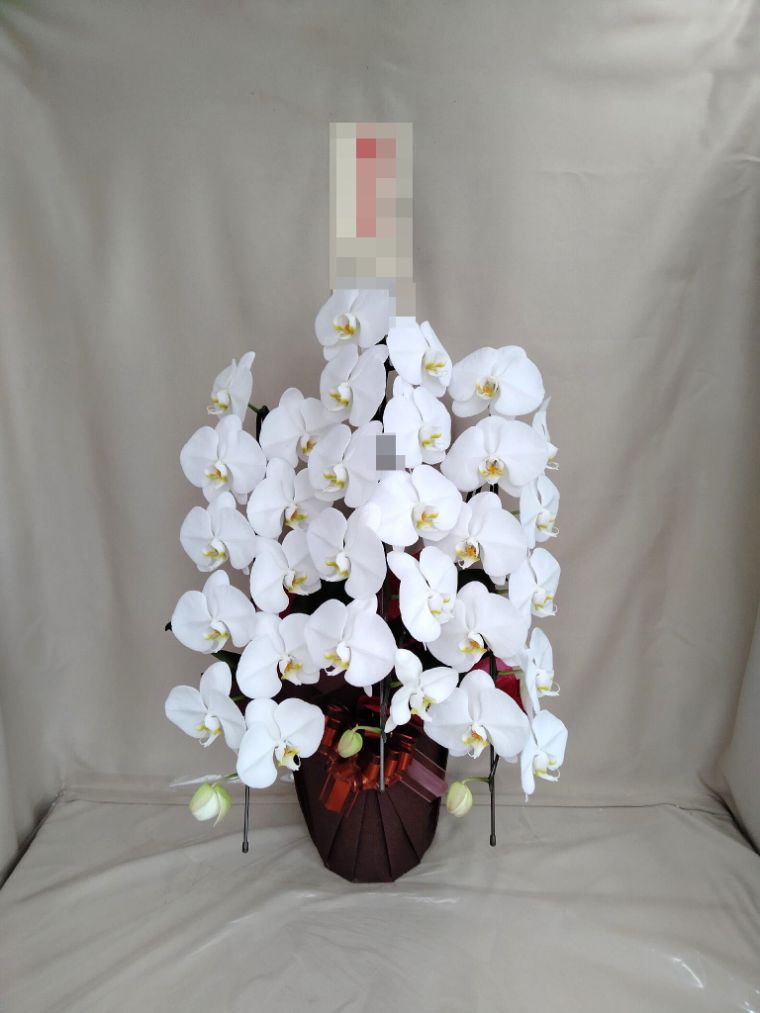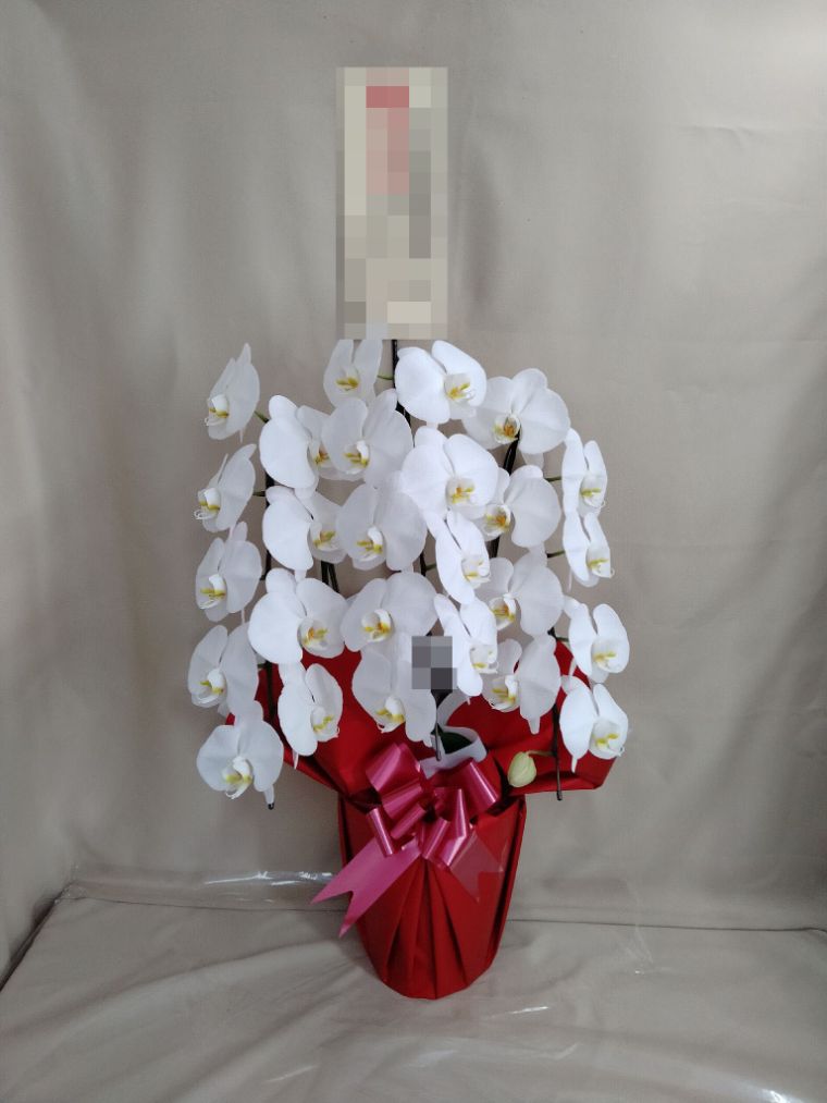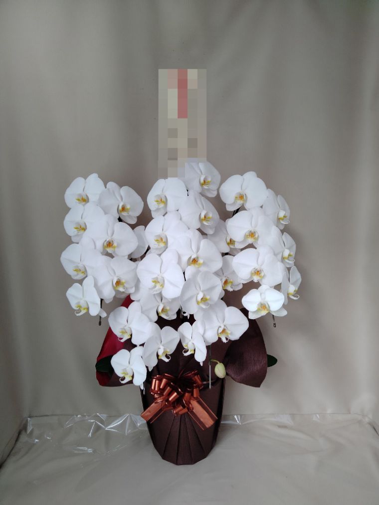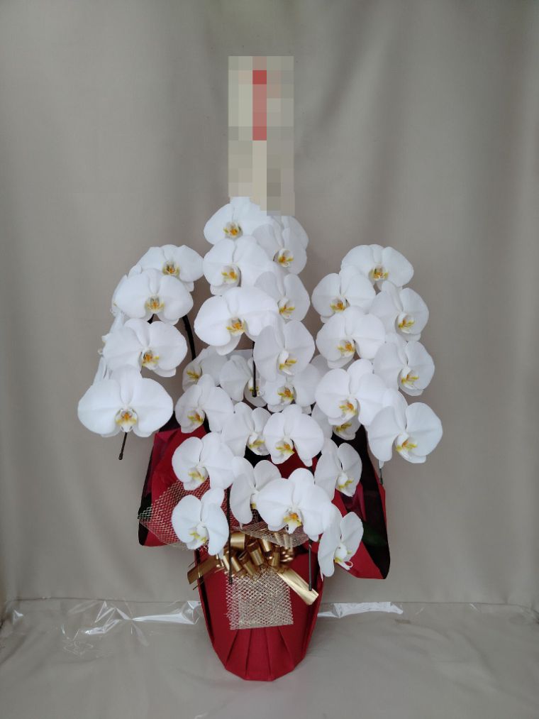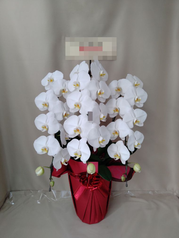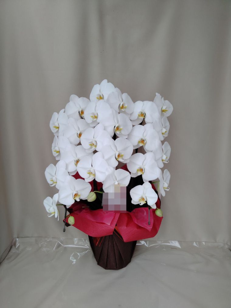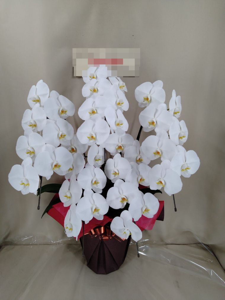 胡蝶蘭の実際にお届けした写真です。花秘書では発送前に写真をメールで送信致しますので安心して大切な顧客や取引様へのギフトにご利用頂けます。