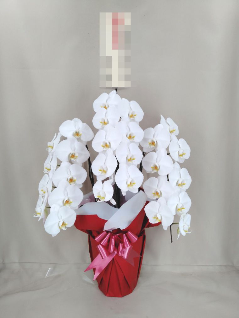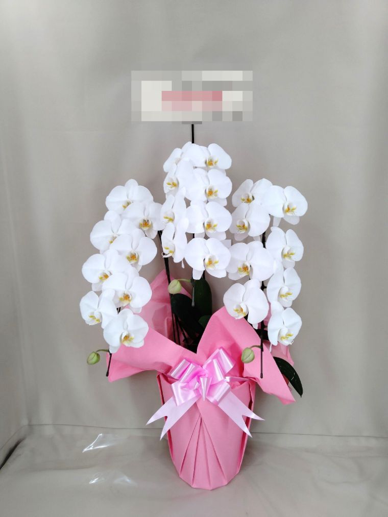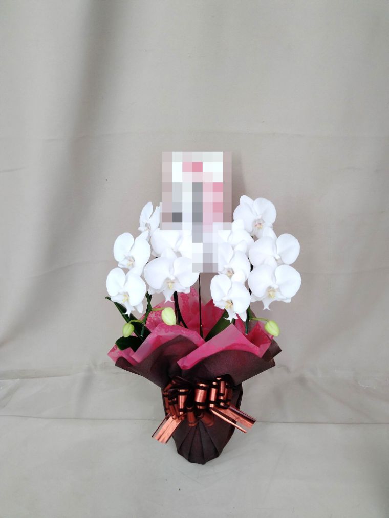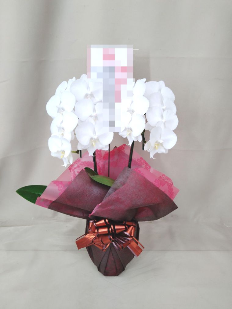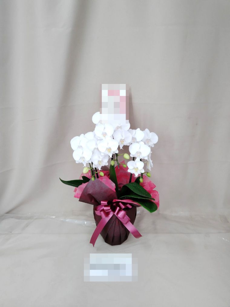 胡蝶蘭の実際にお届けした写真です。花秘書では発送前に写真をメールで送信致しますので安心して大切な顧客や取引様へのギフトにご利用頂けます。