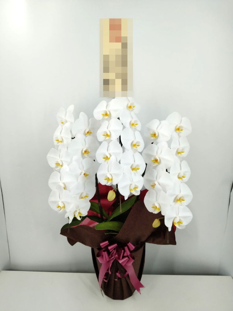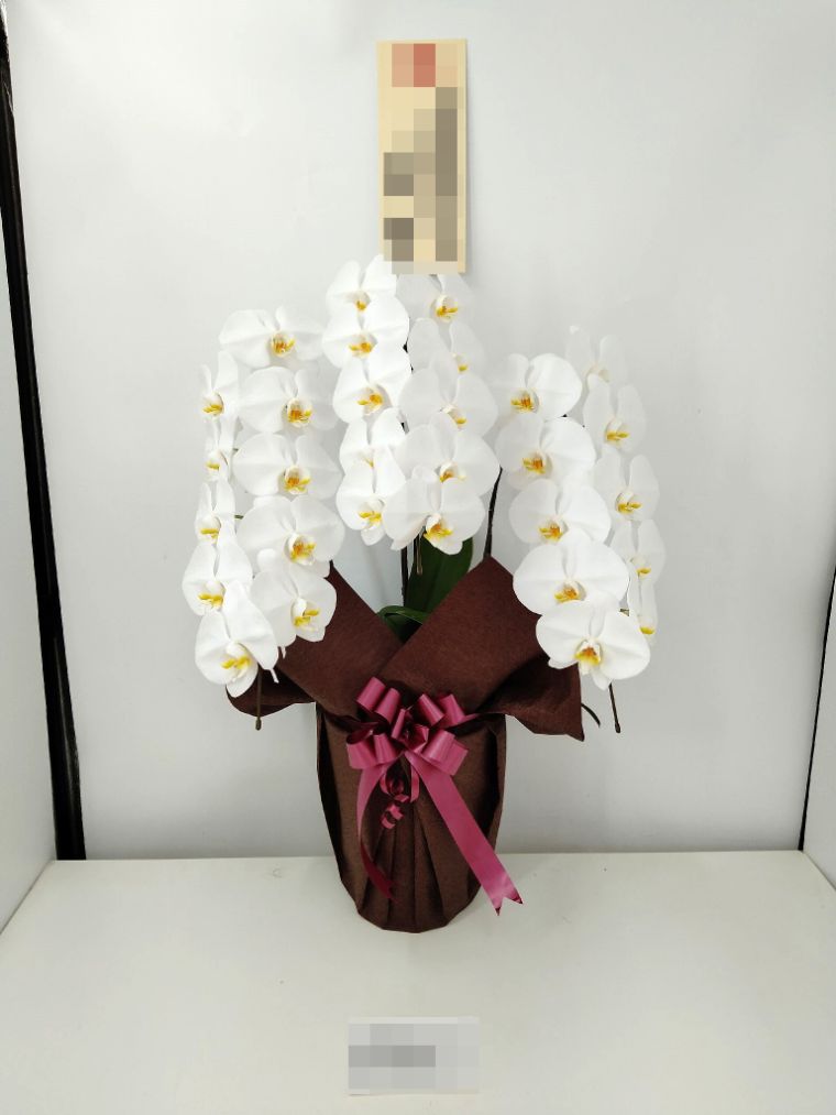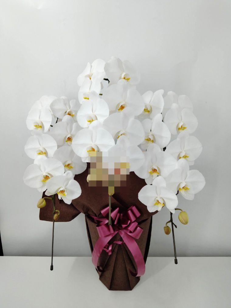胡蝶蘭の実際にお届けした写真です。花秘書では発送前に写真をメールで送信致しますので安心して大切な顧客や取引様へのギフトにご利用頂けます。