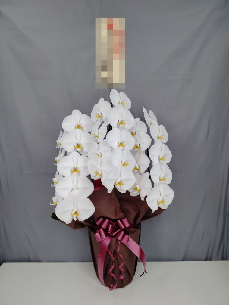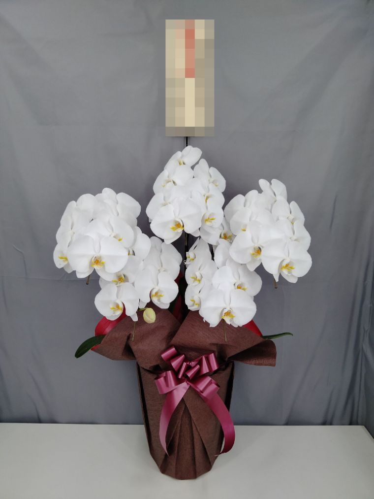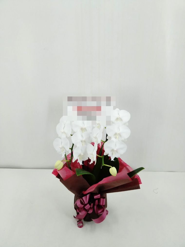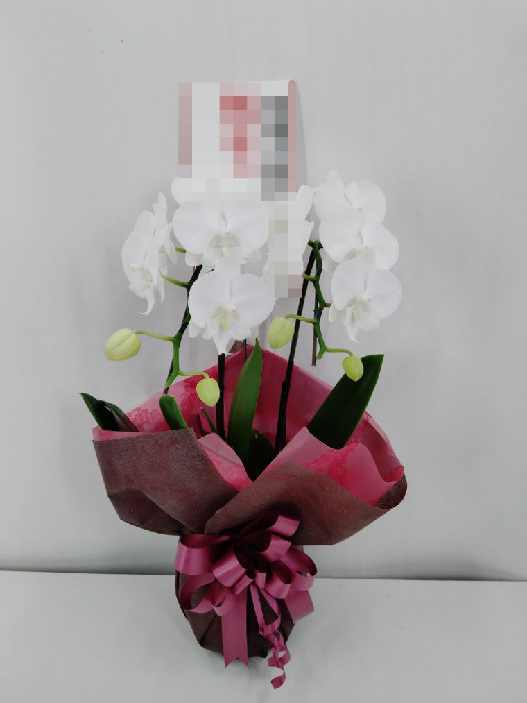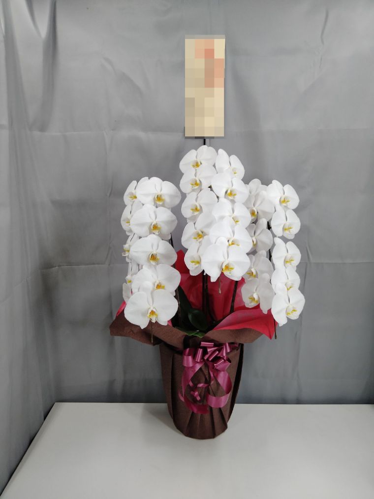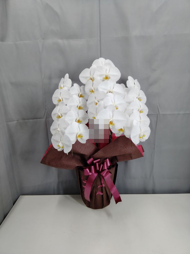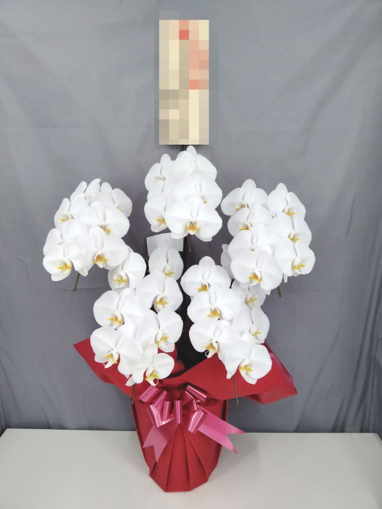 胡蝶蘭の実際にお届けした写真です。花秘書では発送前に写真をメールで送信致しますので安心して大切な顧客や取引様へのギフトにご利用頂けます。
