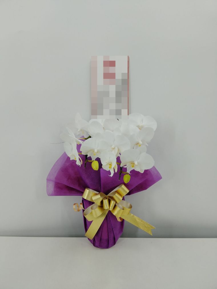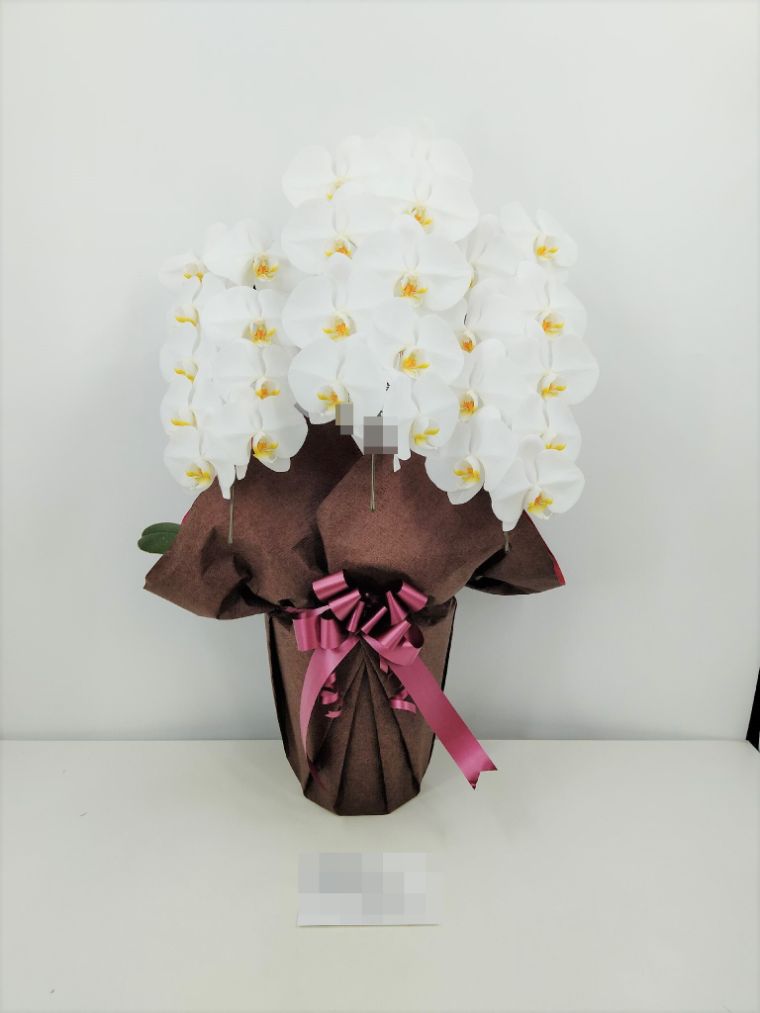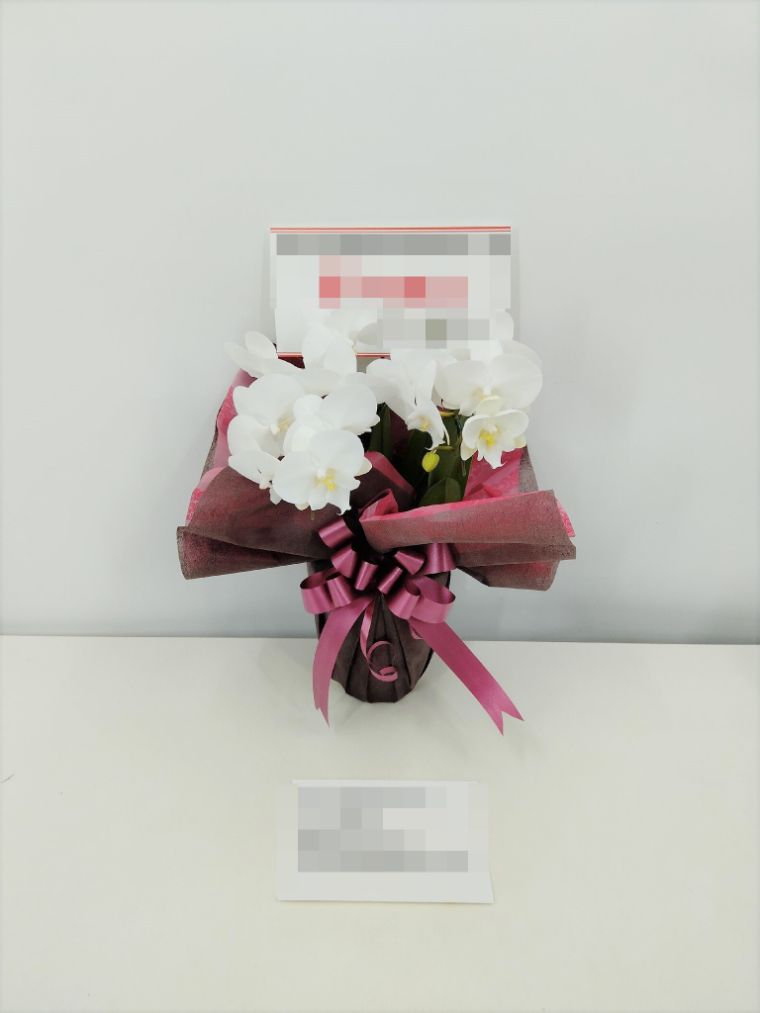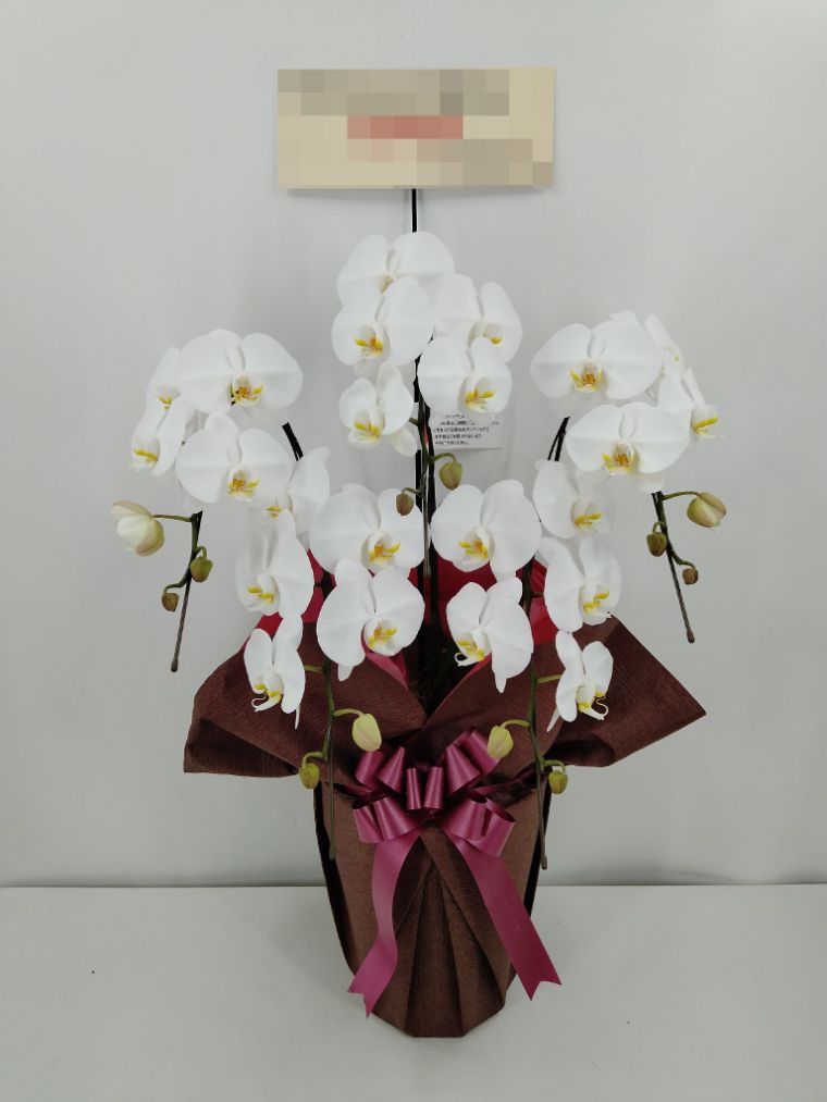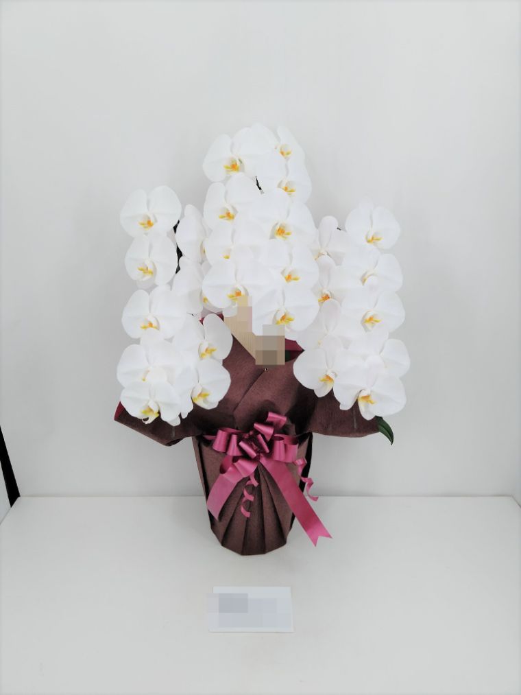 胡蝶蘭の実際にお届けした写真です。花秘書では発送前に写真をメールで送信致しますので安心して大切な顧客や取引様へのギフトにご利用頂けます。