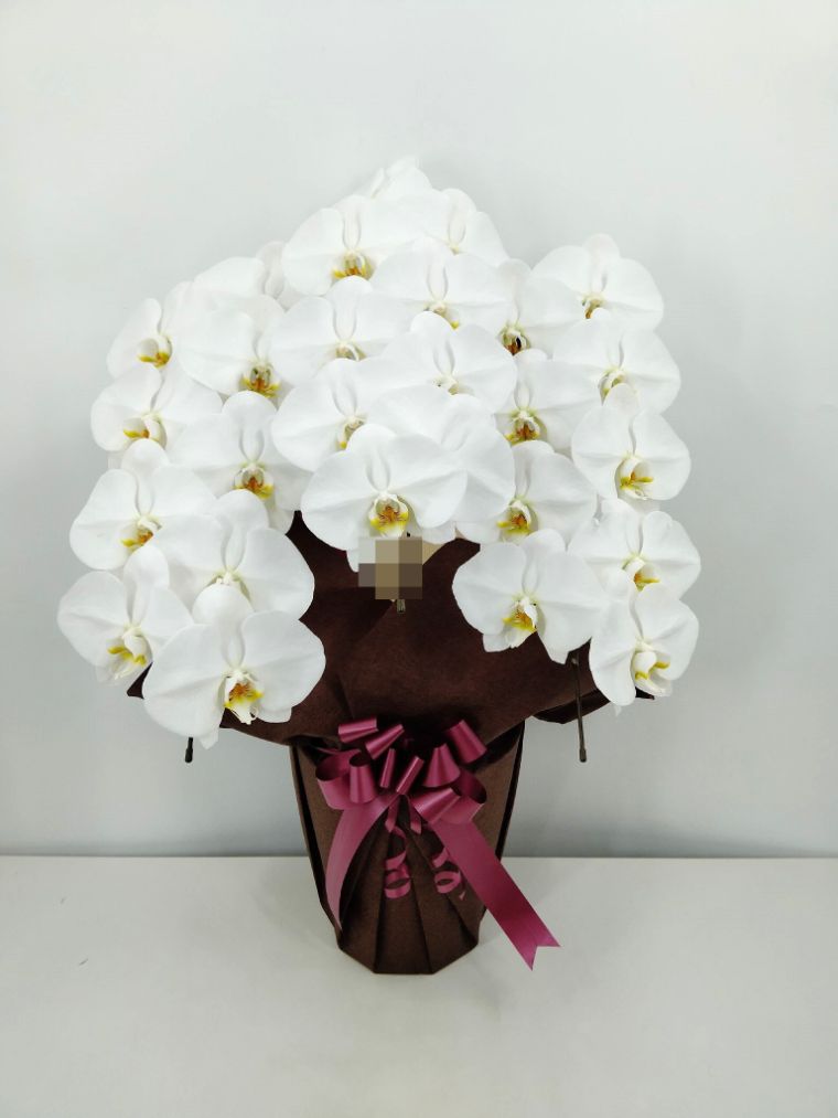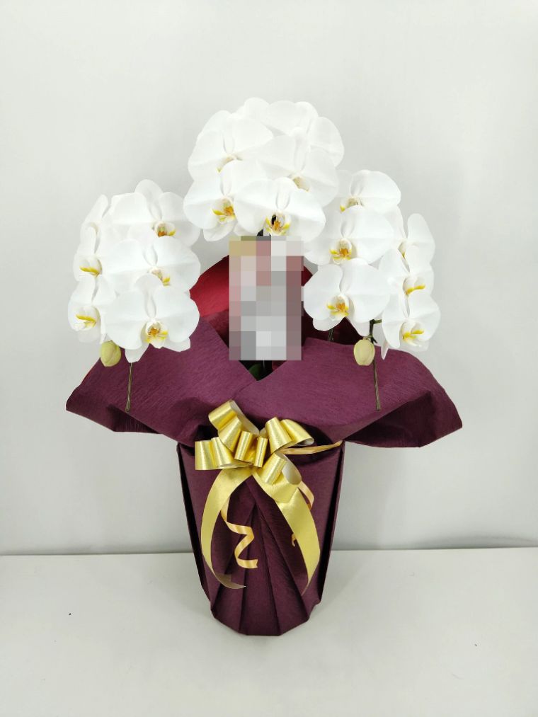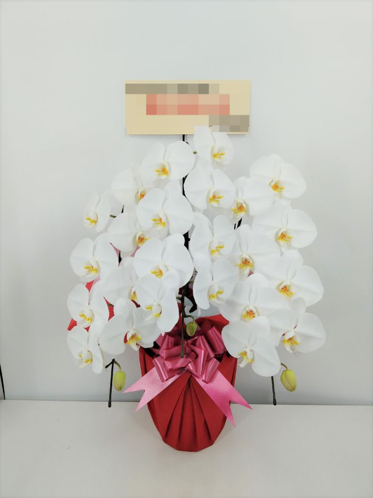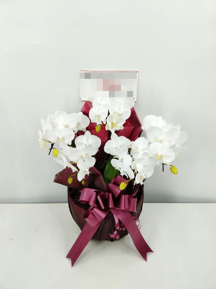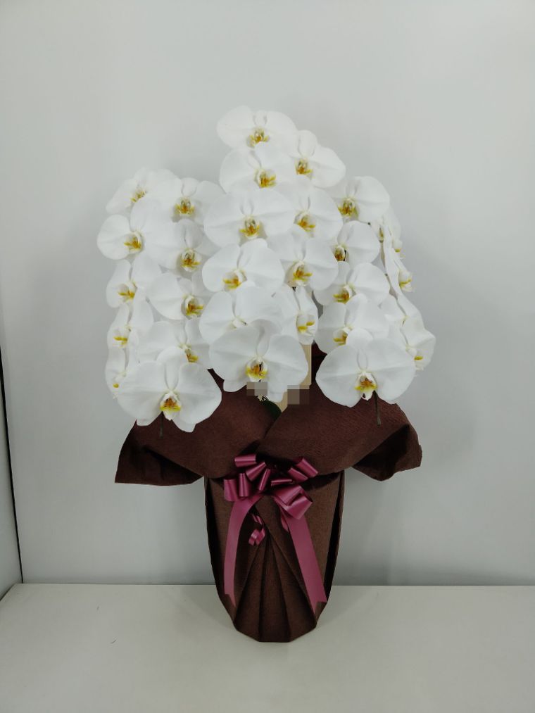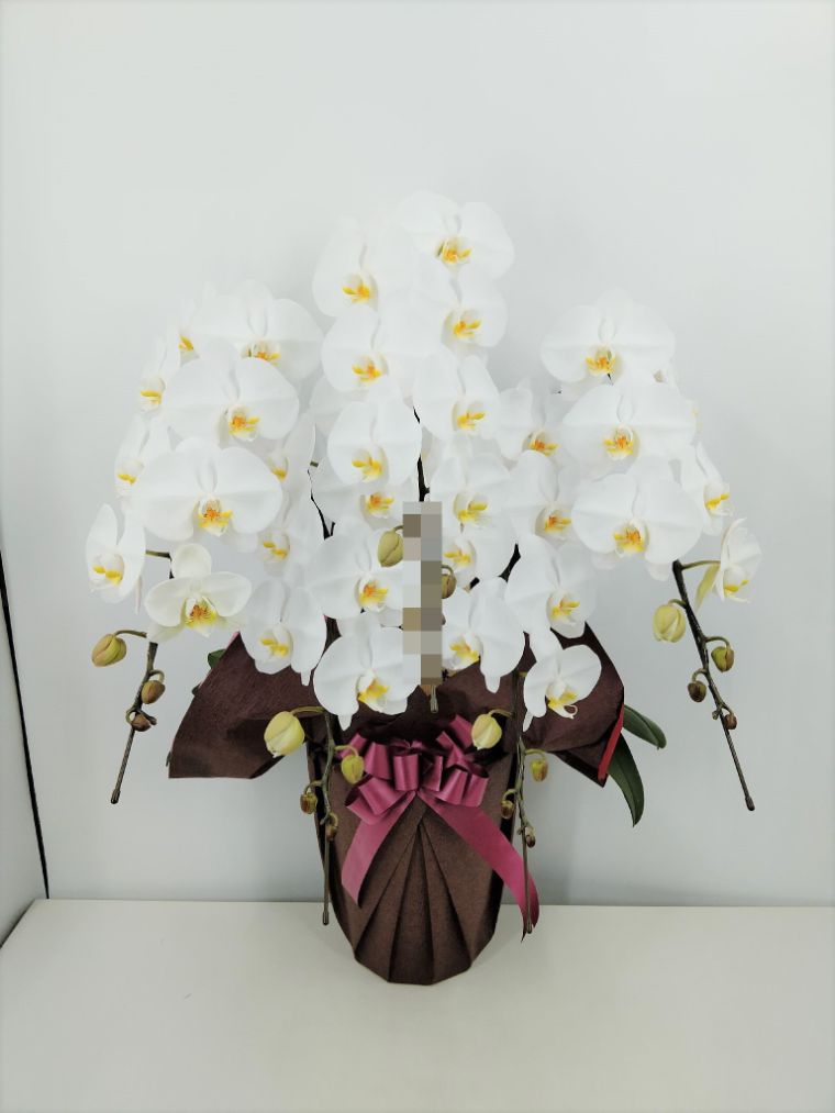 胡蝶蘭の実際にお届けした写真です。花秘書では発送前に写真をメールで送信致しますので安心して大切な顧客や取引様へのギフトにご利用頂けます。