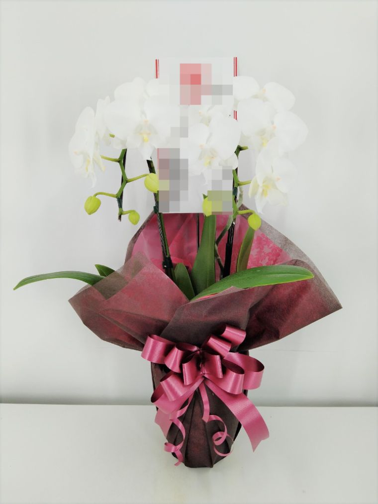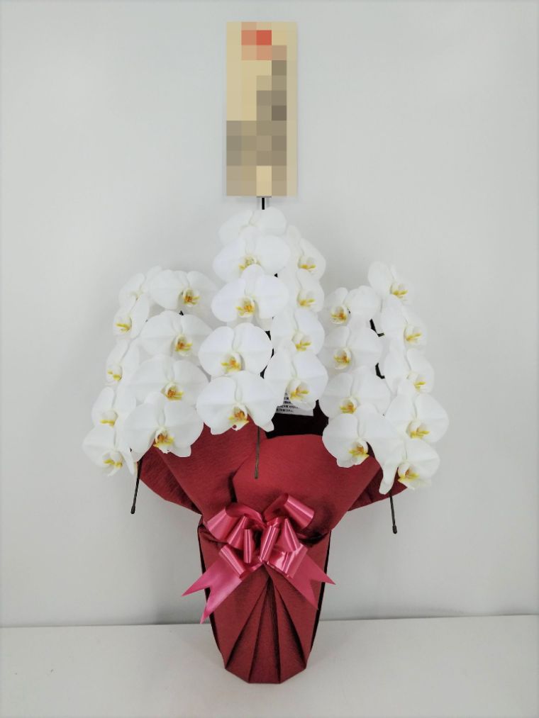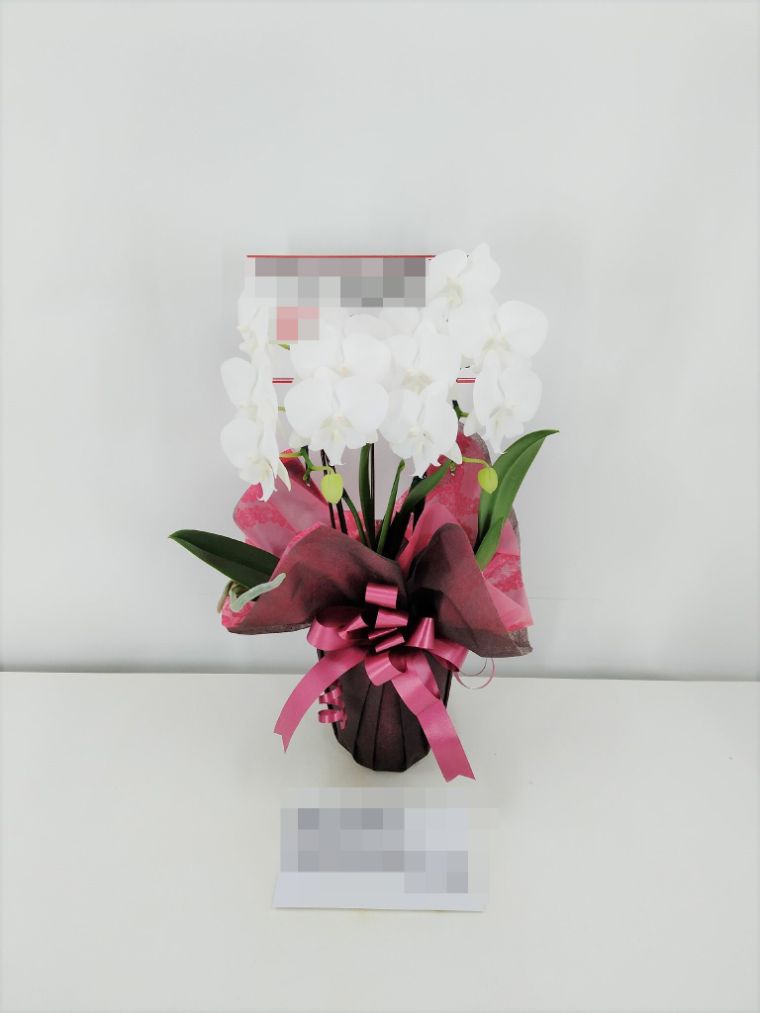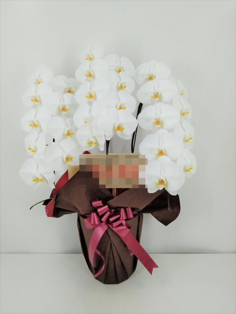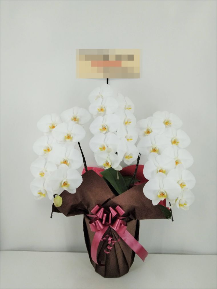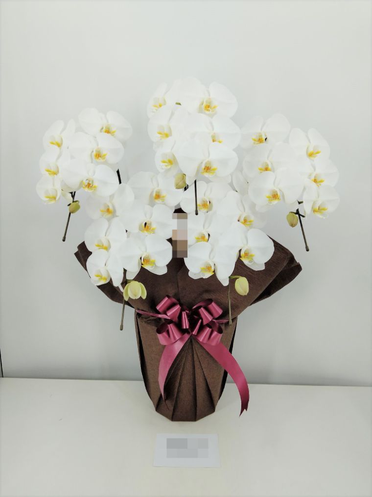 胡蝶蘭の実際にお届けした写真です。花秘書では発送前に写真をメールで送信致しますので安心して大切な顧客や取引様へのギフトにご利用頂けます。