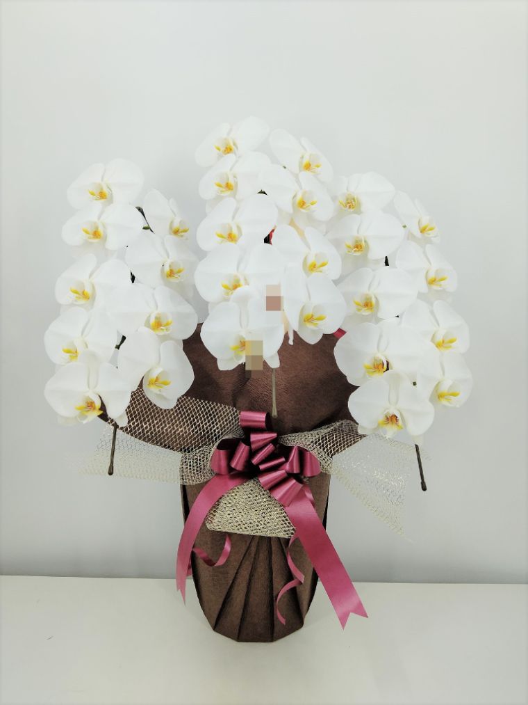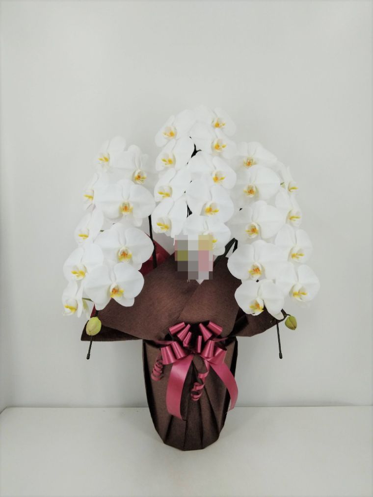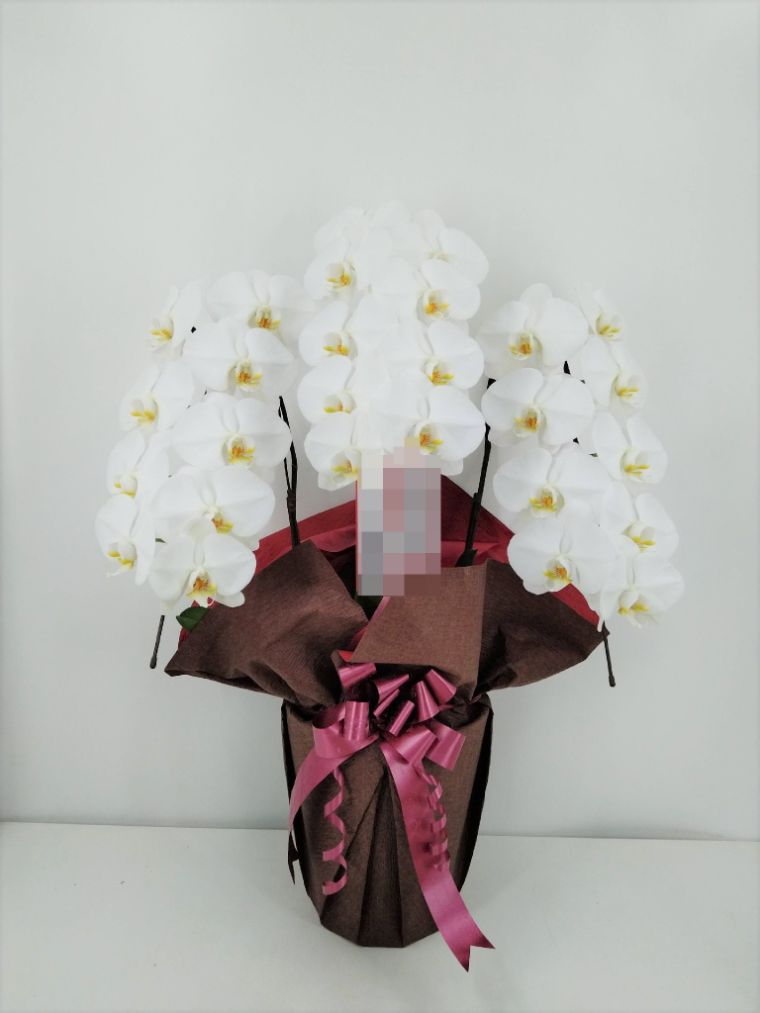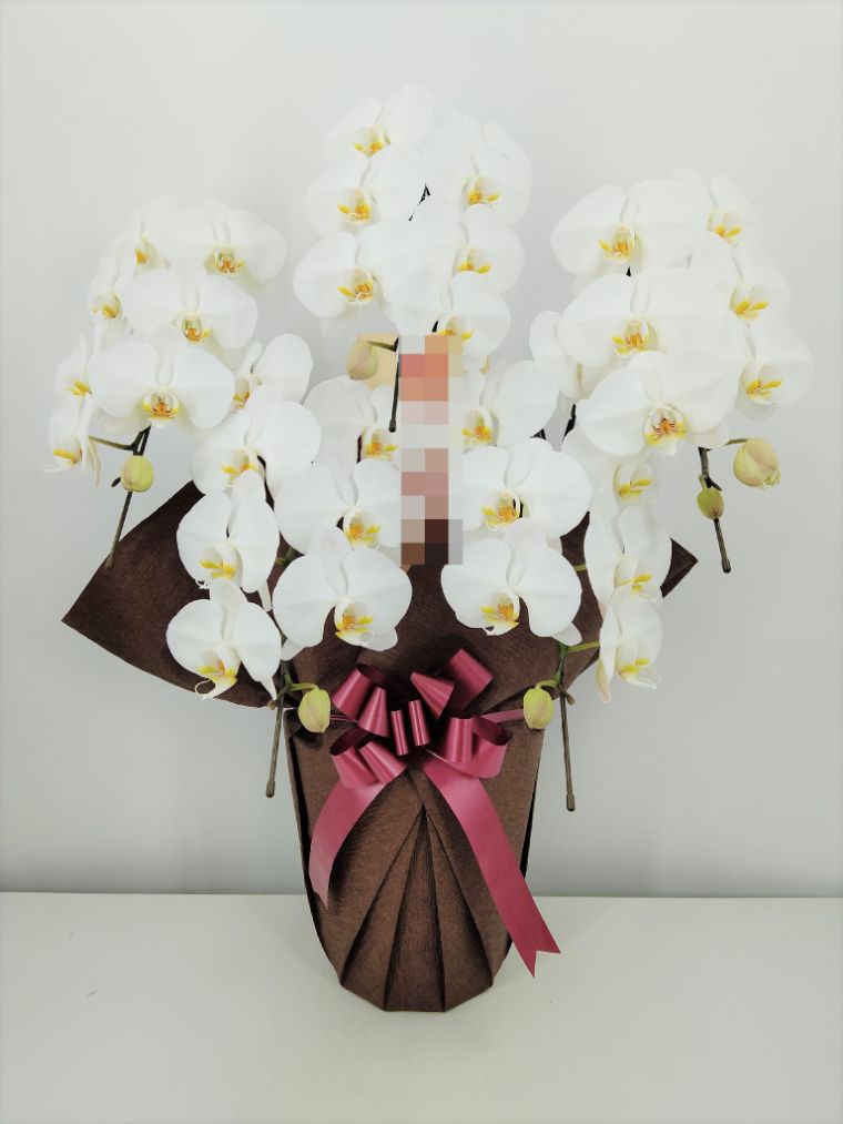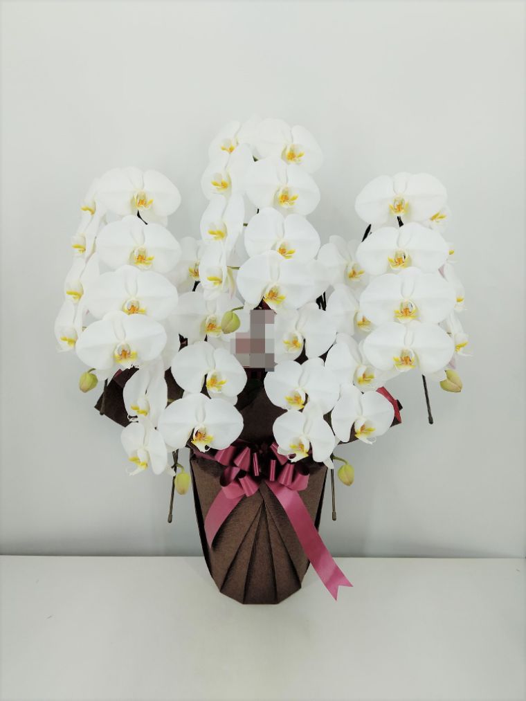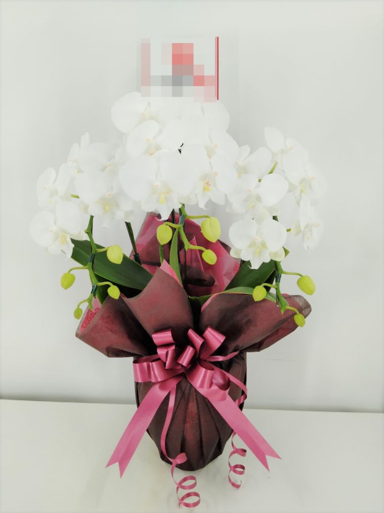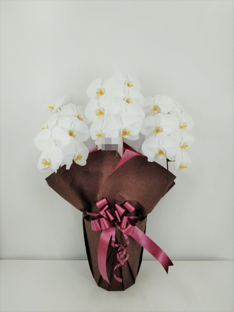 胡蝶蘭の実際にお届けした写真です。花秘書では発送前に写真をメールで送信致しますので安心して大切な顧客や取引様へのギフトにご利用頂けます。