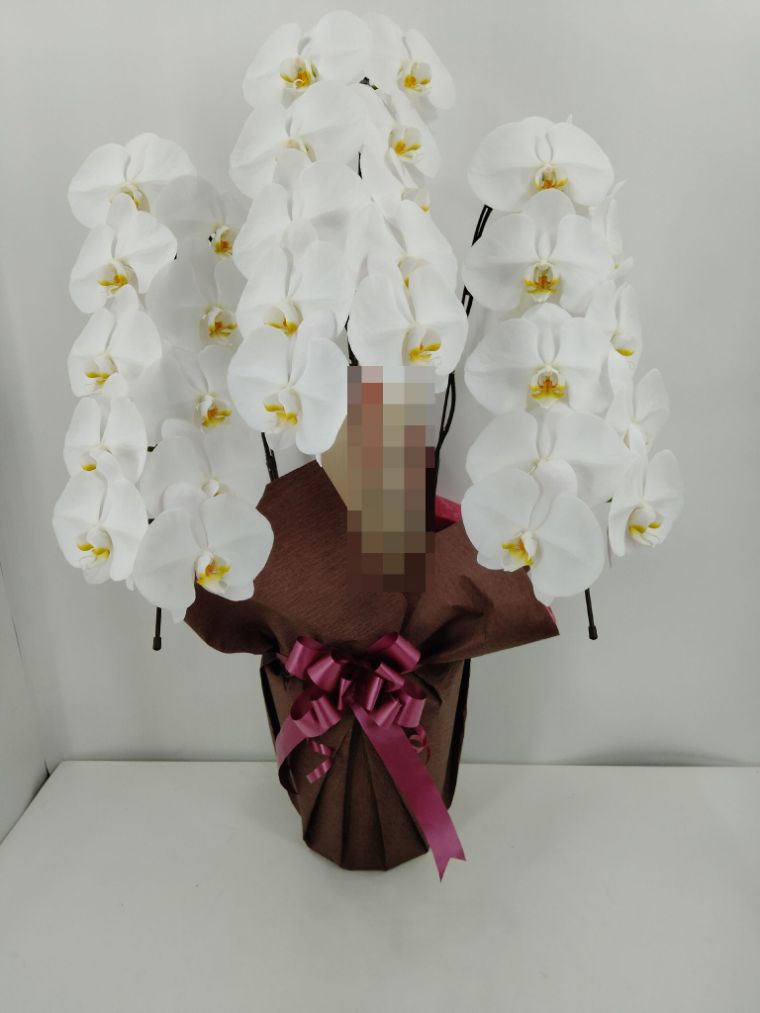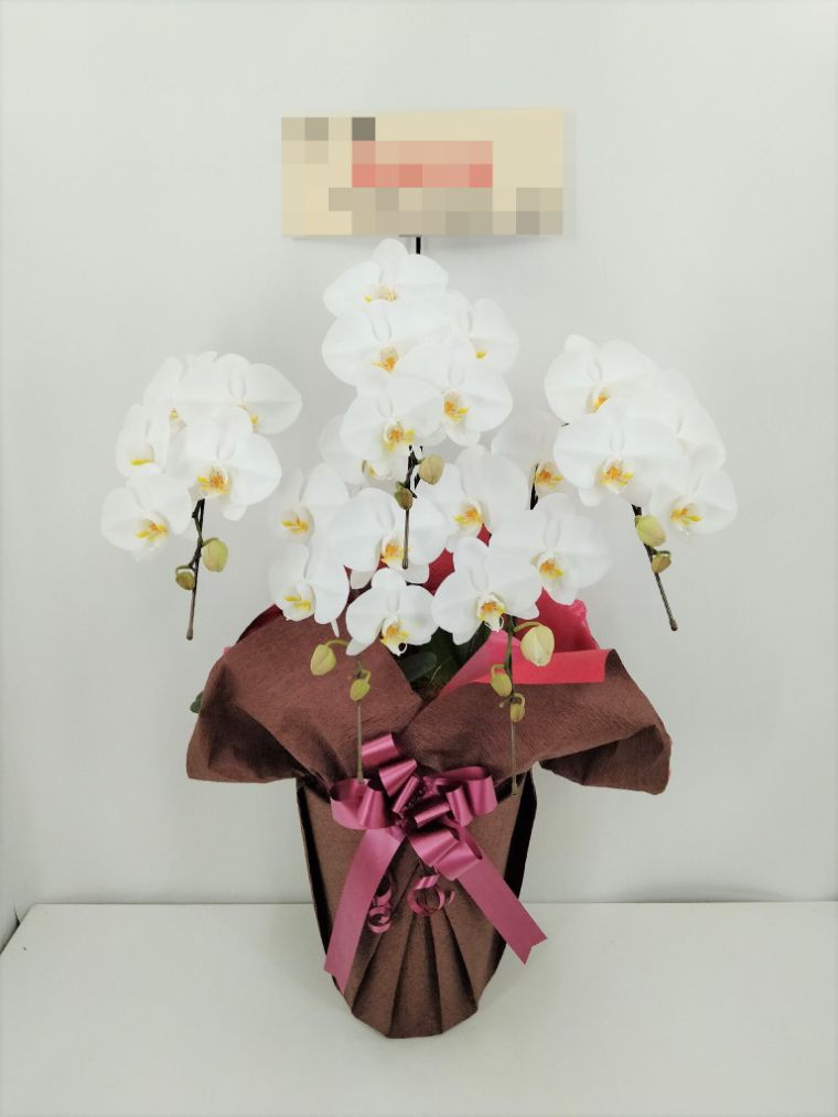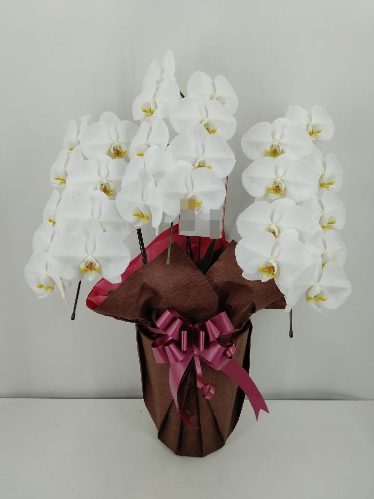 胡蝶蘭の実際にお届けした写真です。花秘書では発送前に写真をメールで送信致しますので安心して大切な顧客や取引様へのギフトにご利用頂けます。