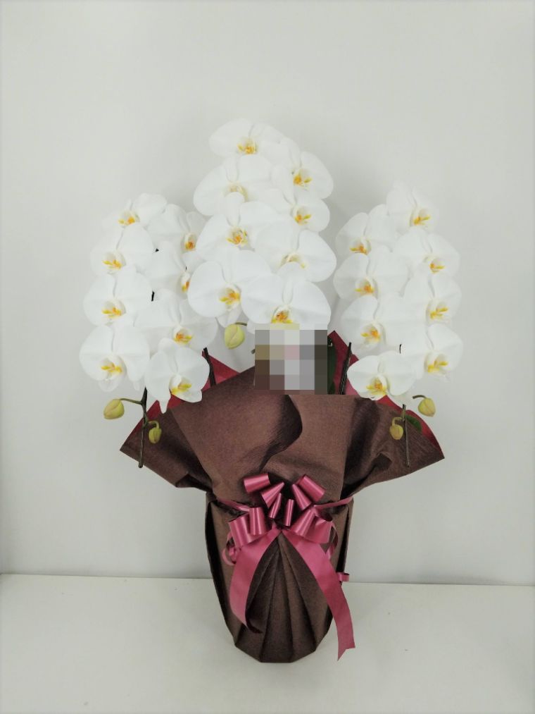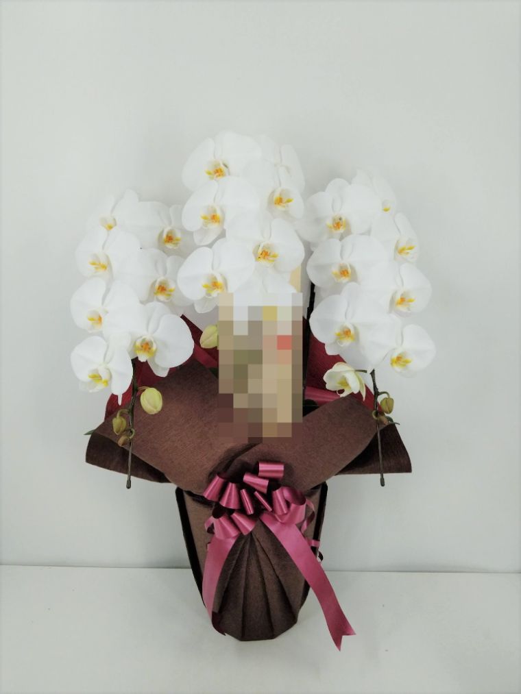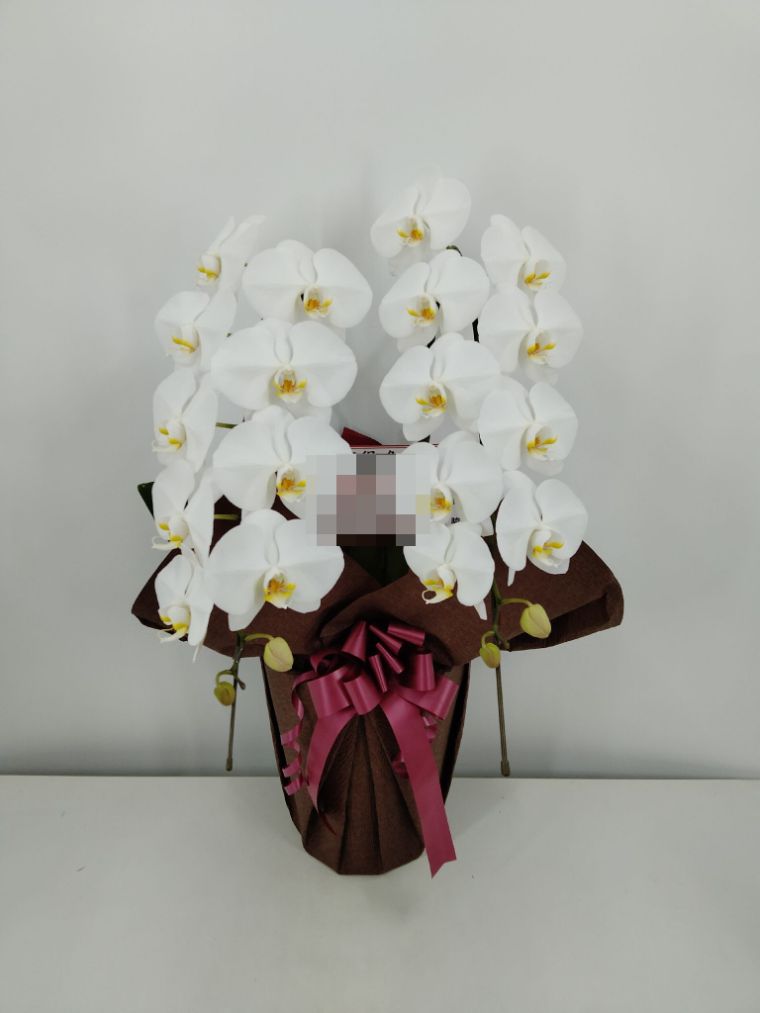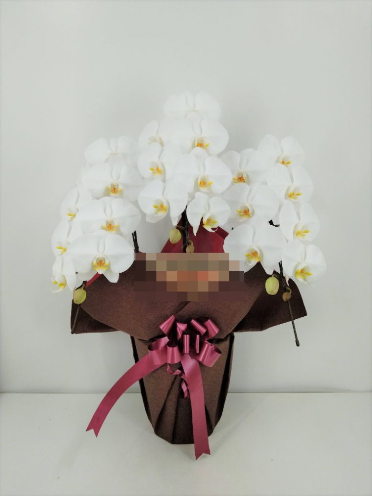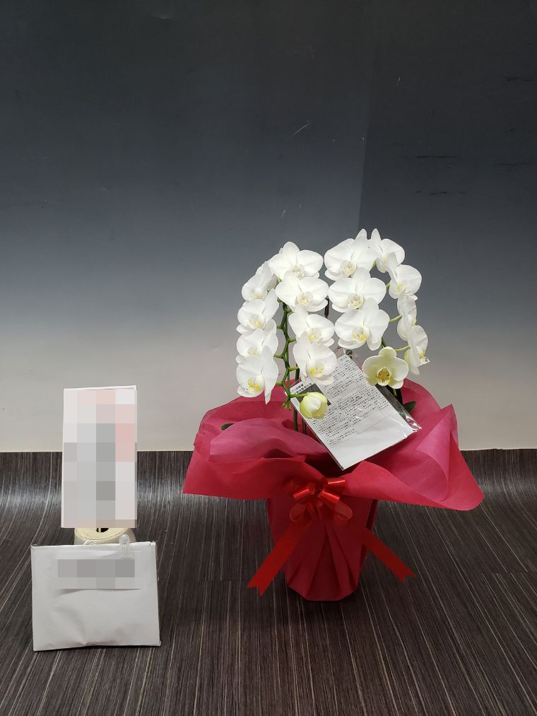 胡蝶蘭の実際にお届けした写真です。花秘書では発送前に写真をメールで送信致しますので安心して大切な顧客や取引様へのギフトにご利用頂けます。