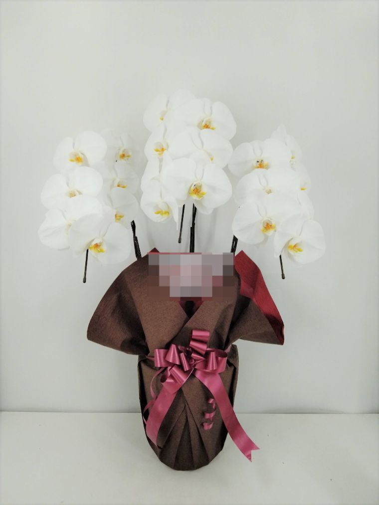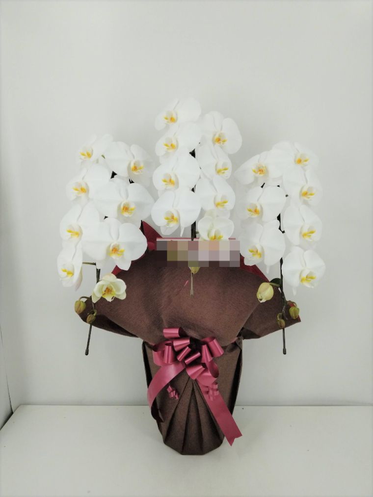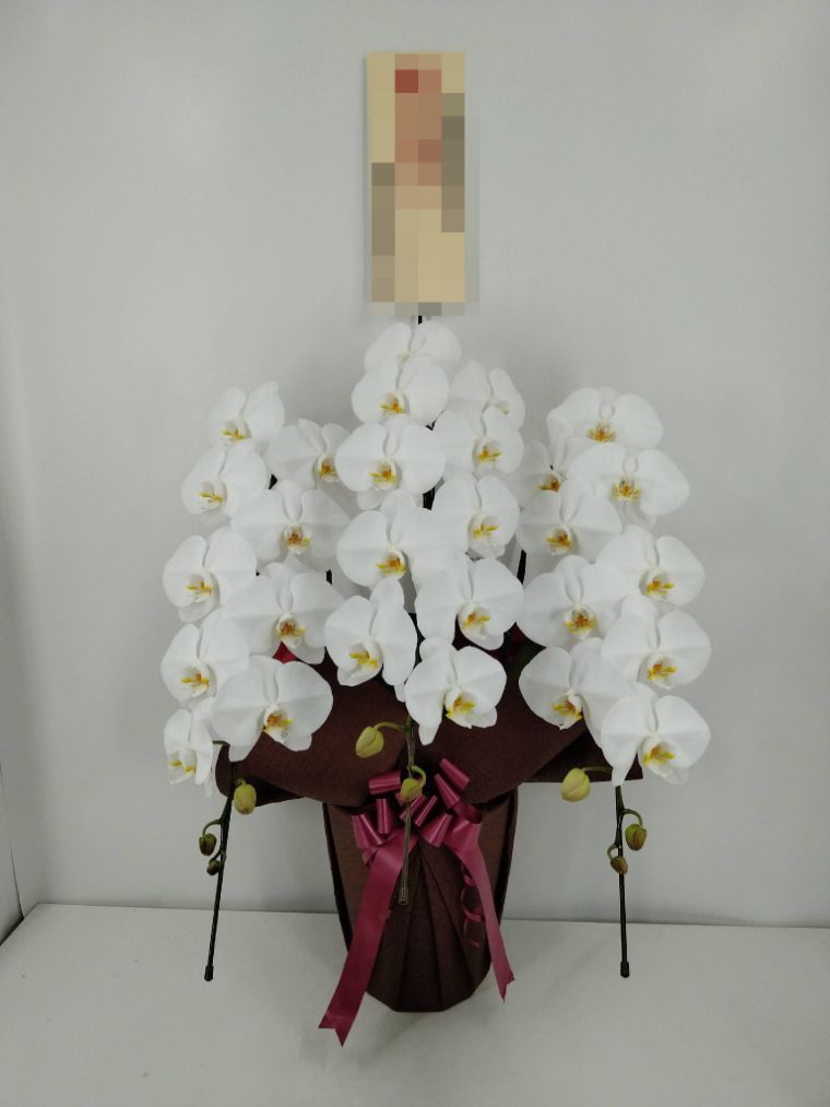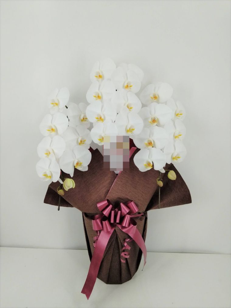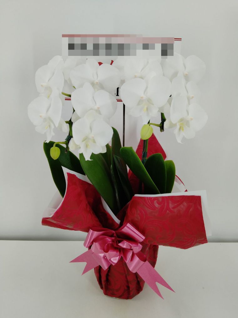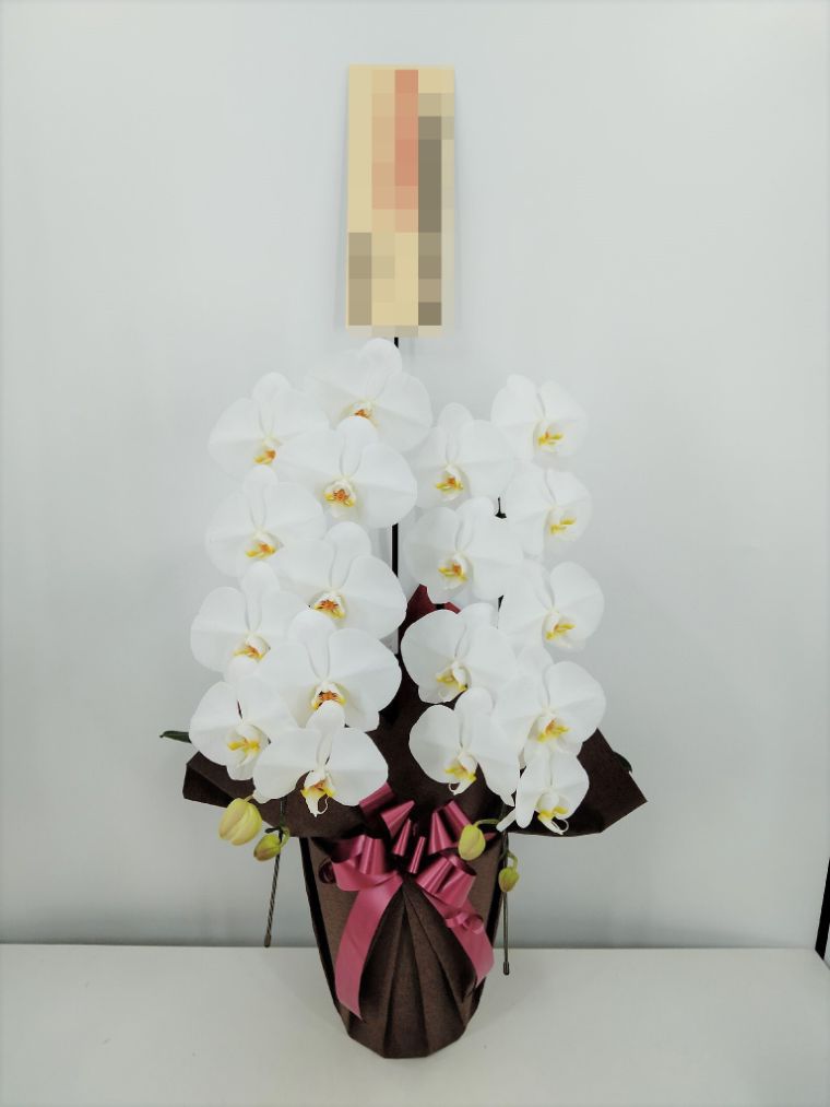 胡蝶蘭の実際にお届けした写真です。花秘書では発送前に写真をメールで送信致しますので安心して大切な顧客や取引様へのギフトにご利用頂けます。