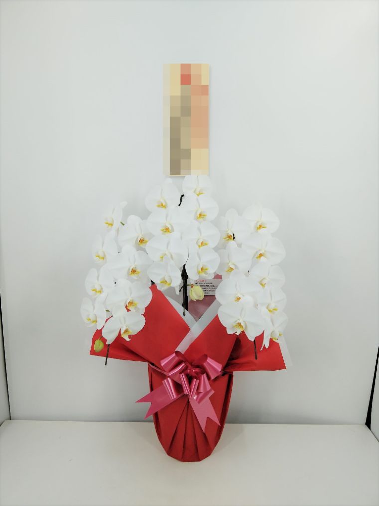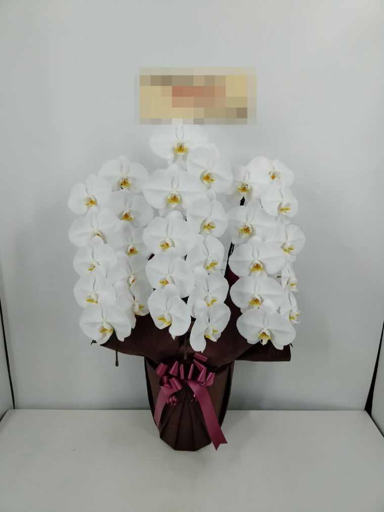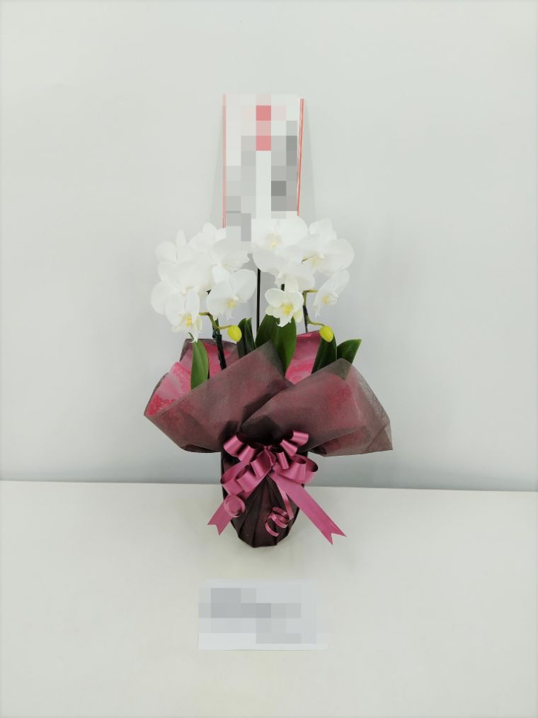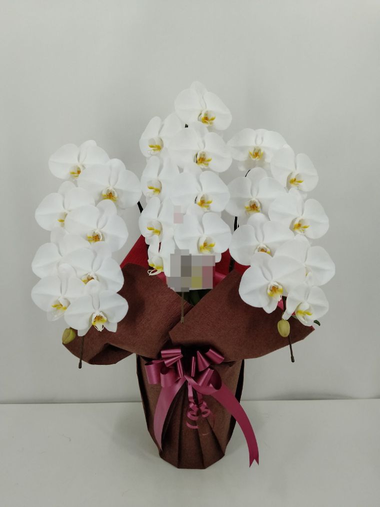 胡蝶蘭の実際にお届けした写真です。花秘書では発送前に写真をメールで送信致しますので安心して大切な顧客や取引様へのギフトにご利用頂けます。