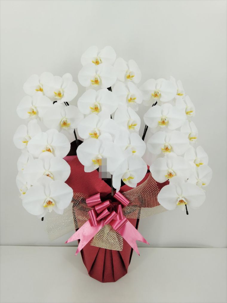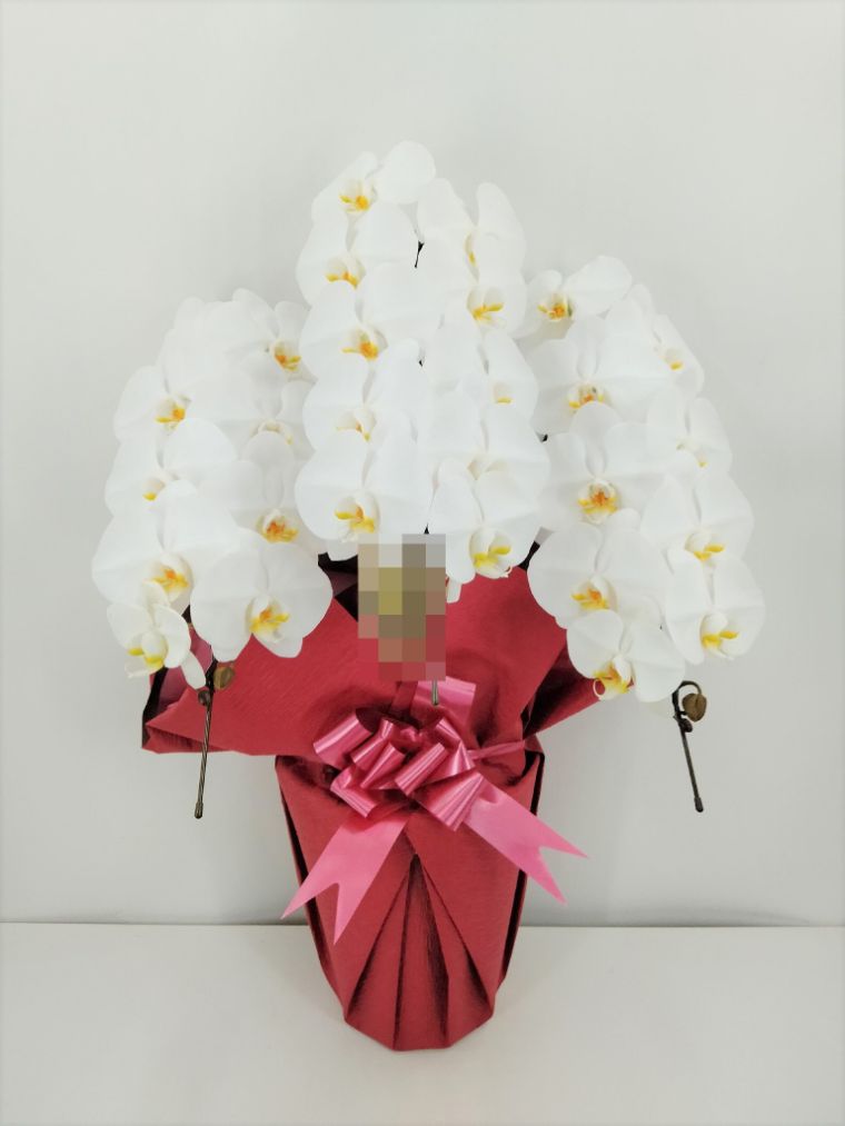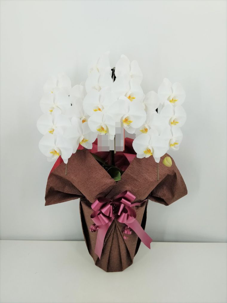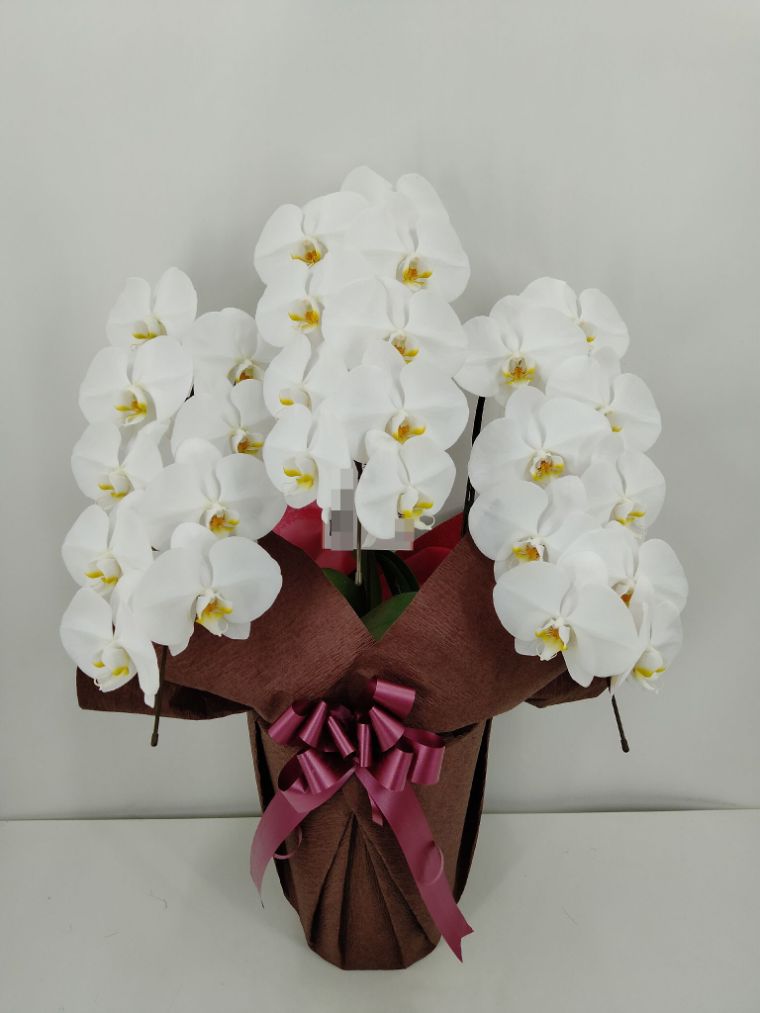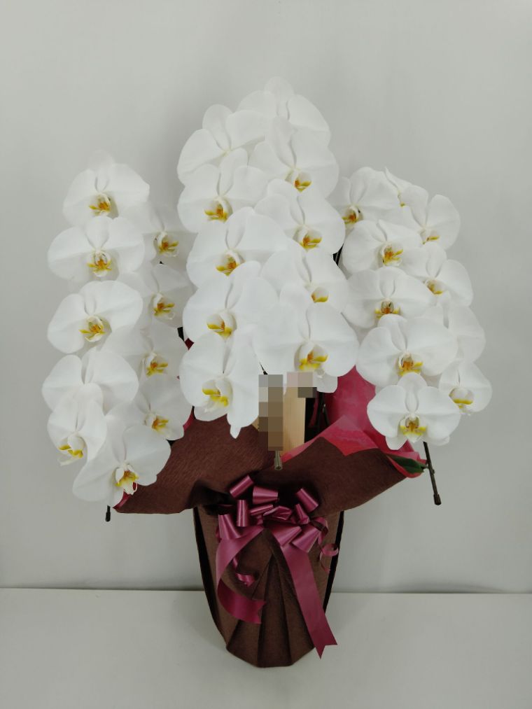 胡蝶蘭の実際にお届けした写真です。花秘書では発送前に写真をメールで送信致しますので安心して大切な顧客や取引様へのギフトにご利用頂けます。