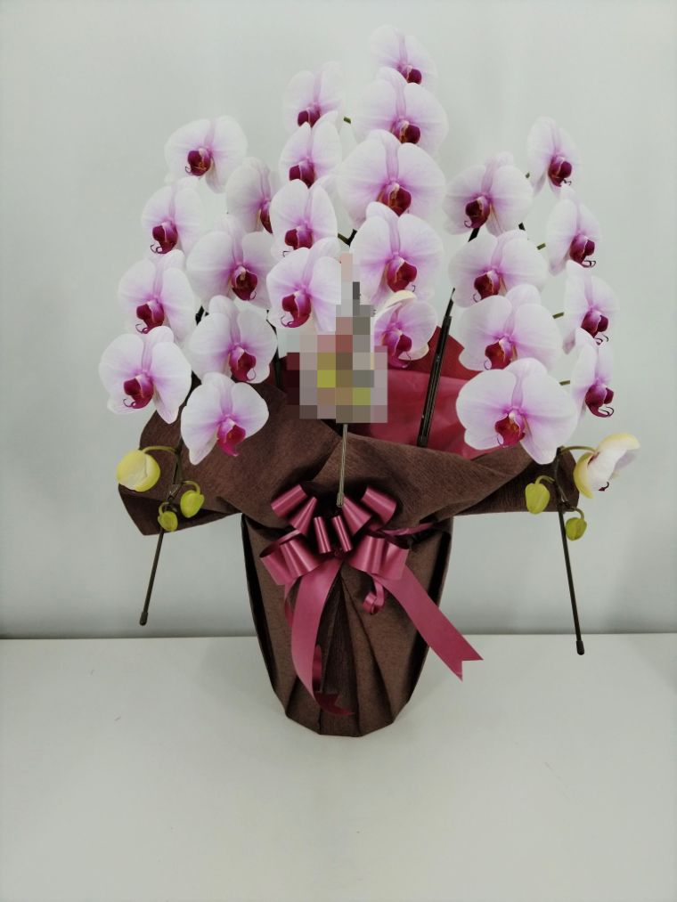 胡蝶蘭の実際にお届けした写真です。花秘書では発送前に写真をメールで送信致しますので安心して大切な顧客や取引様へのギフトにご利用頂けます。