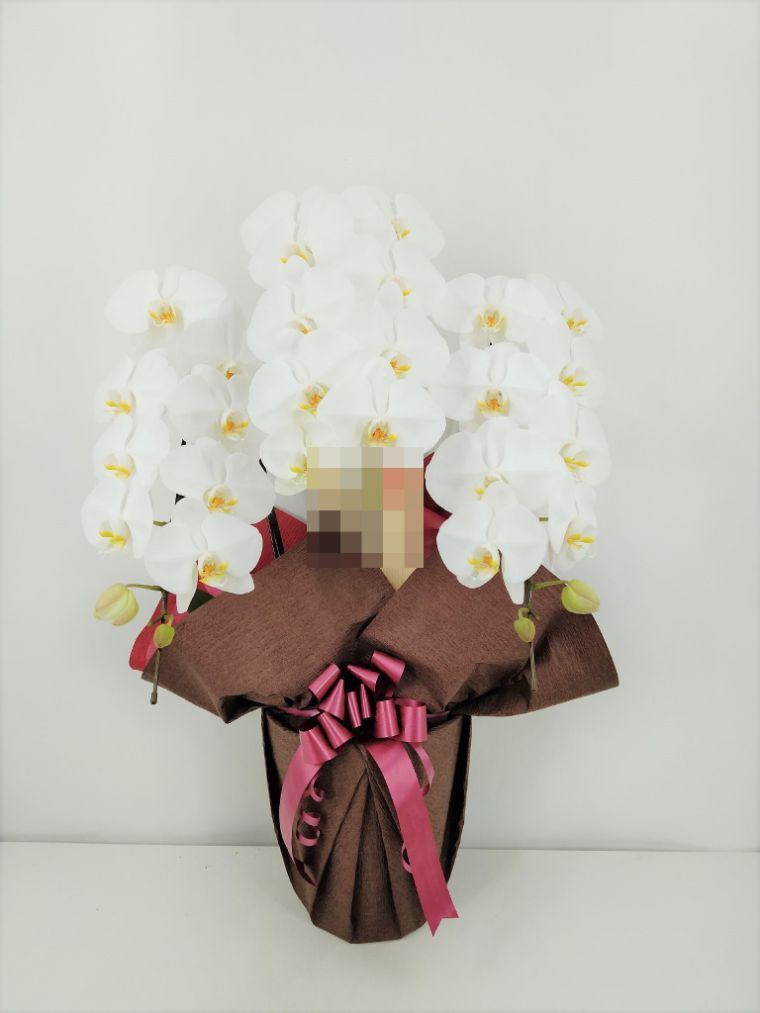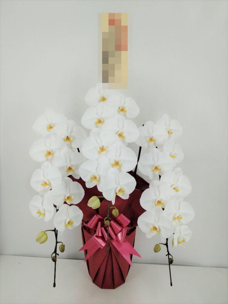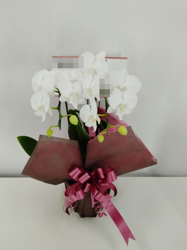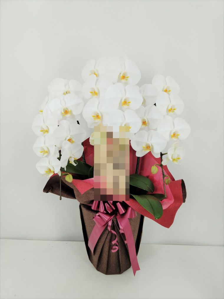 胡蝶蘭の実際にお届けした写真です。花秘書では発送前に写真をメールで送信致しますので安心して大切な顧客や取引様へのギフトにご利用頂けます。