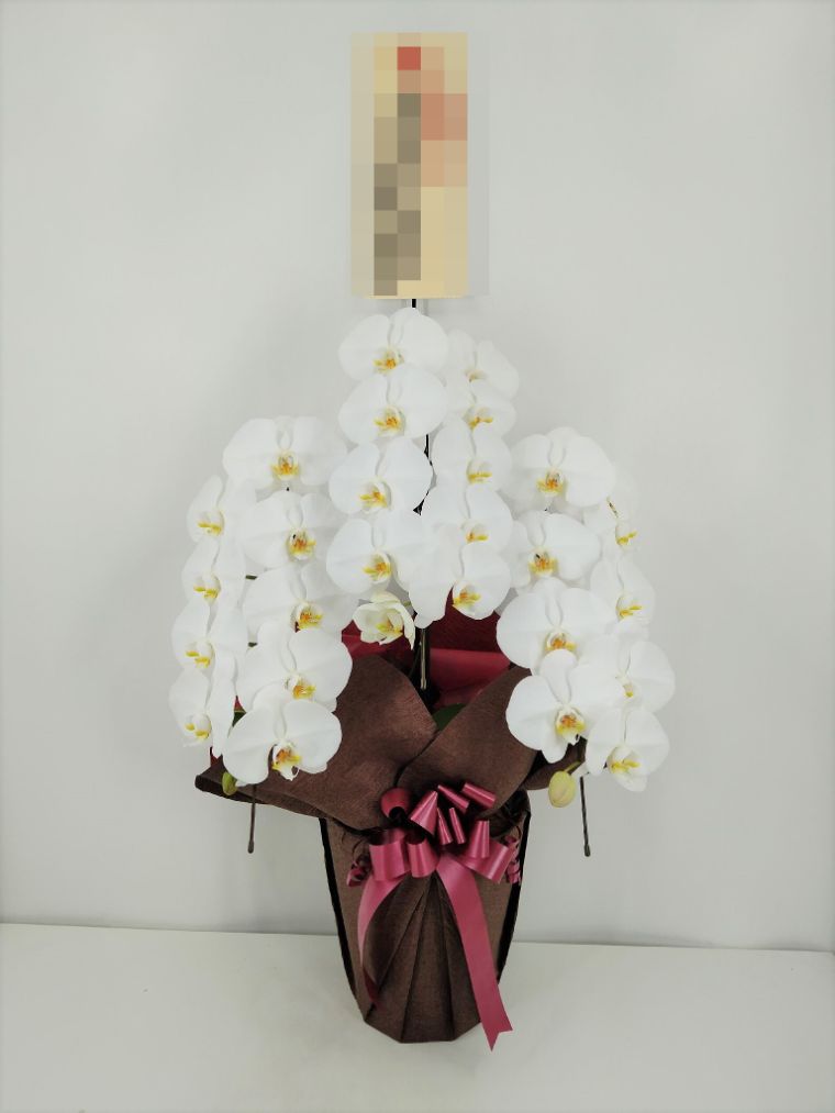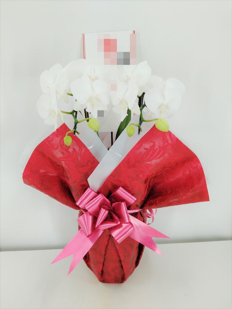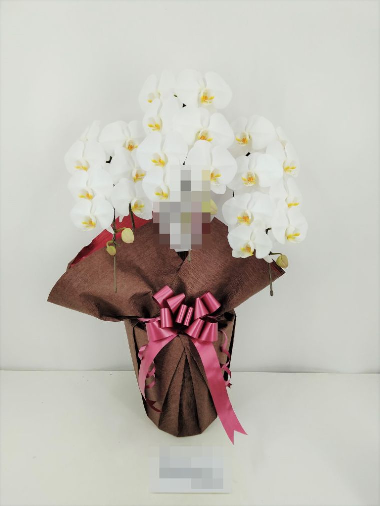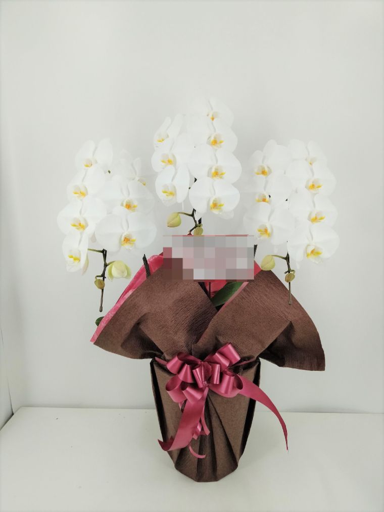 胡蝶蘭の実際にお届けした写真です。花秘書では発送前に写真をメールで送信致しますので安心して大切な顧客や取引様へのギフトにご利用頂けます。