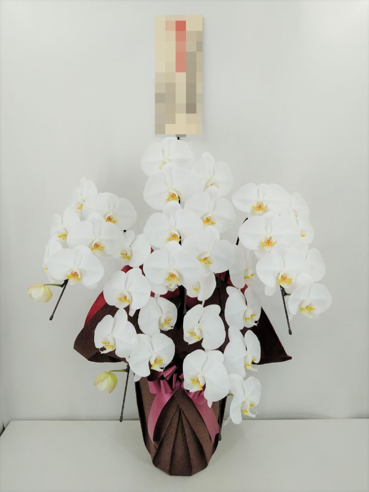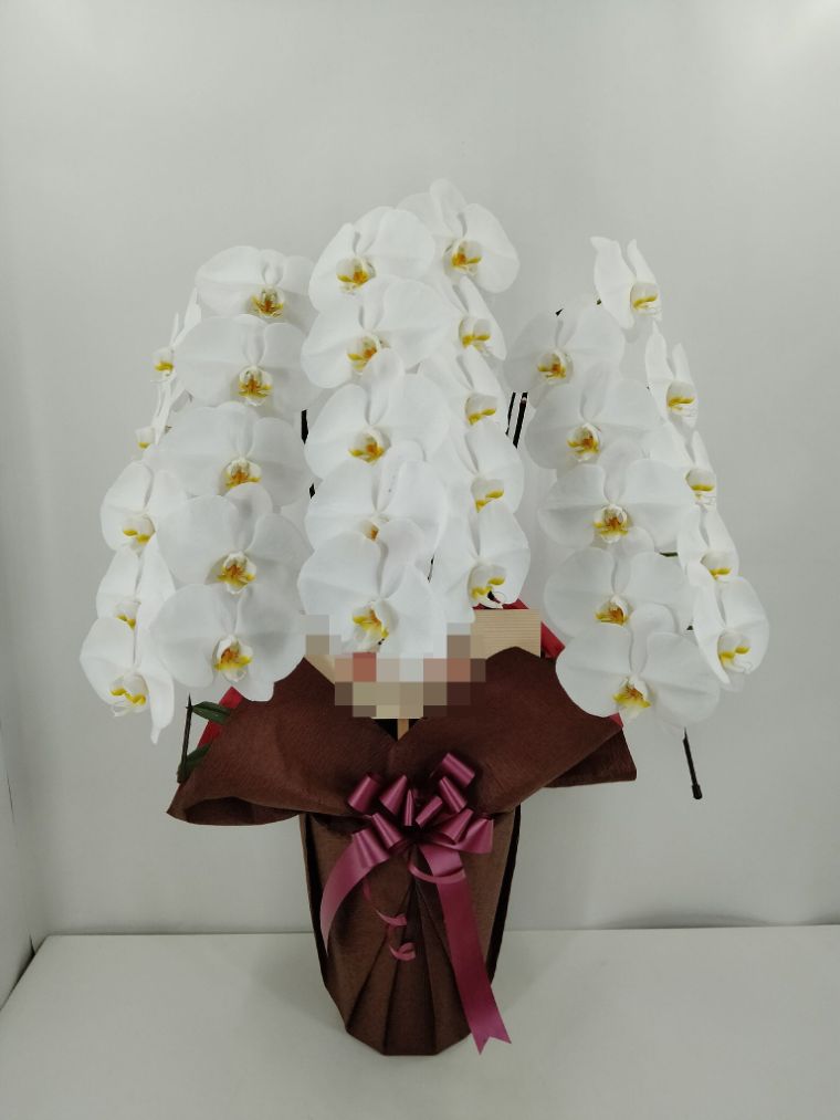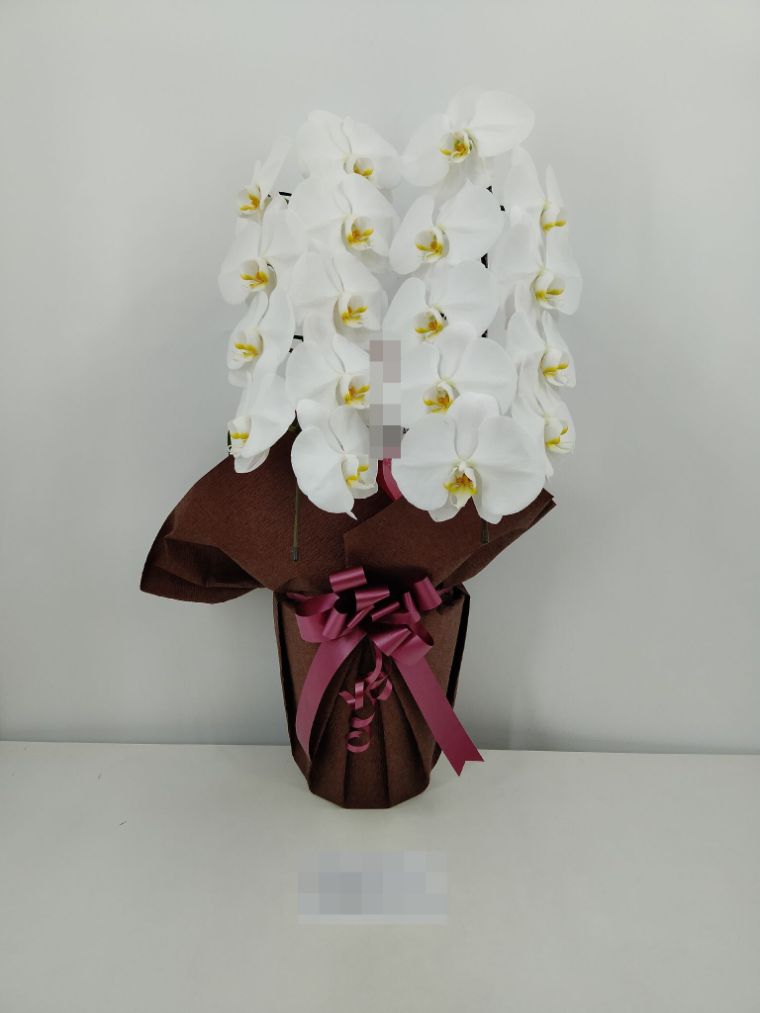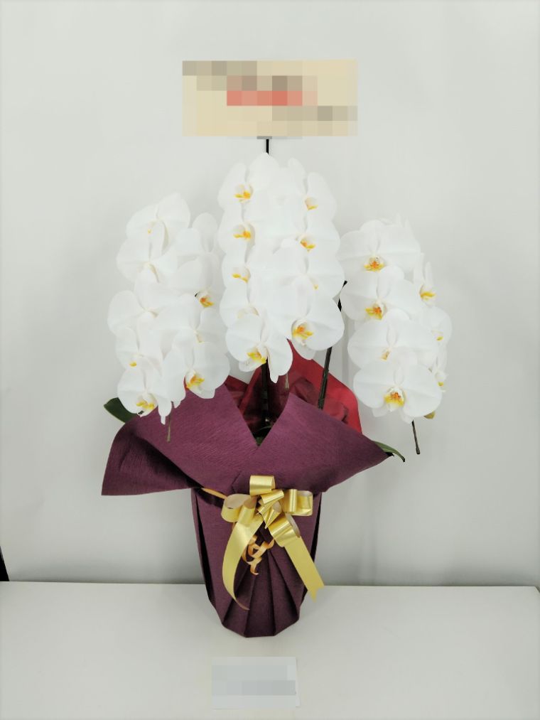 胡蝶蘭の実際にお届けした写真です。花秘書では発送前に写真をメールで送信致しますので安心して大切な顧客や取引様へのギフトにご利用頂けます。